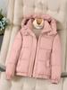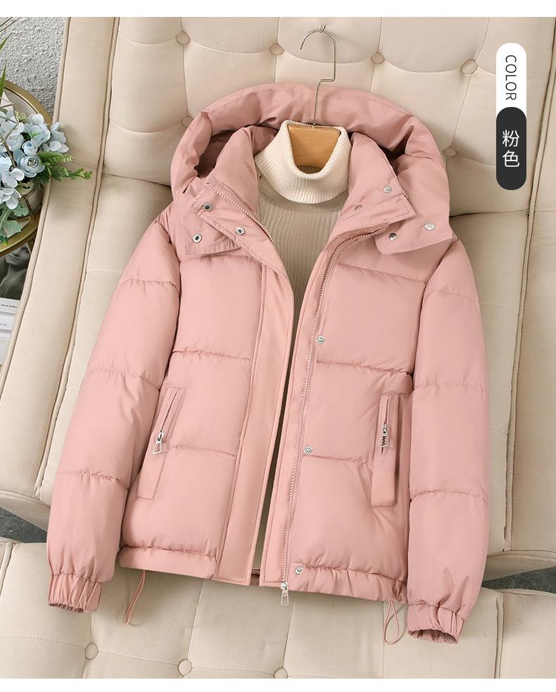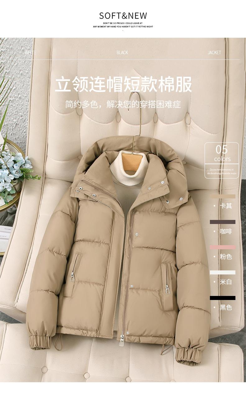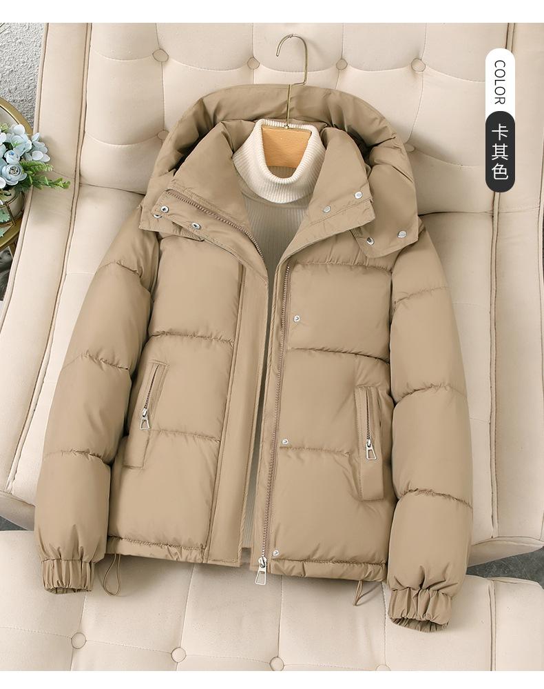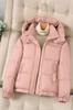 Abrigo de Algodón Acolchado Estilo Coreano Nuevo 2025 para Mujer Otoño Invierno Corto Suelto Chaqueta de Algodón Petite con Capucha Cálido Casual Abrigo