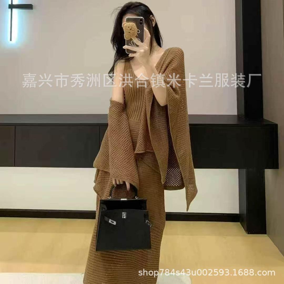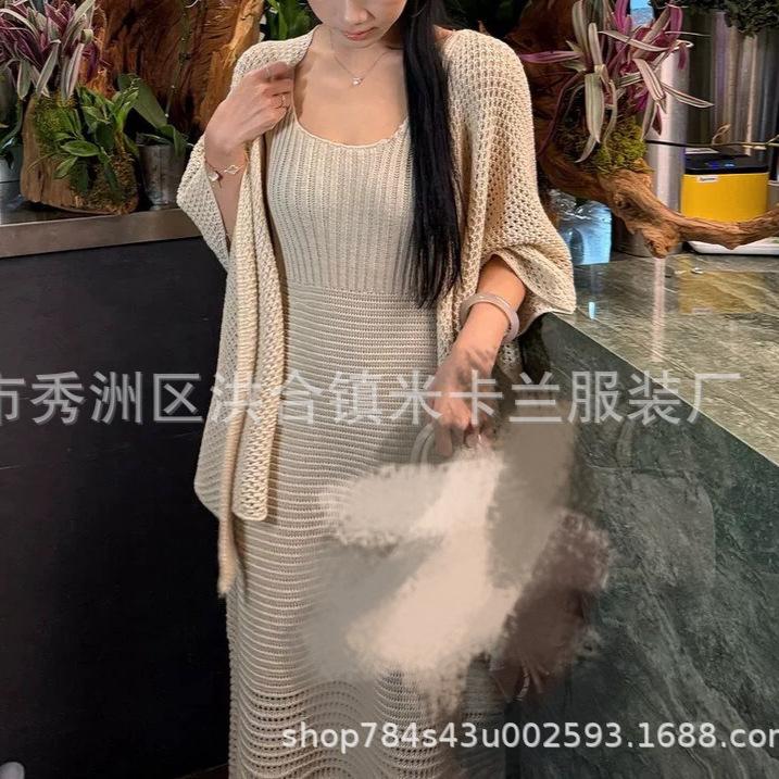 Conjunto de dos piezas exquisito súper hermoso 2025 nueva moda temperamento versátil cárdigan de punto vestido estilo bonito frío