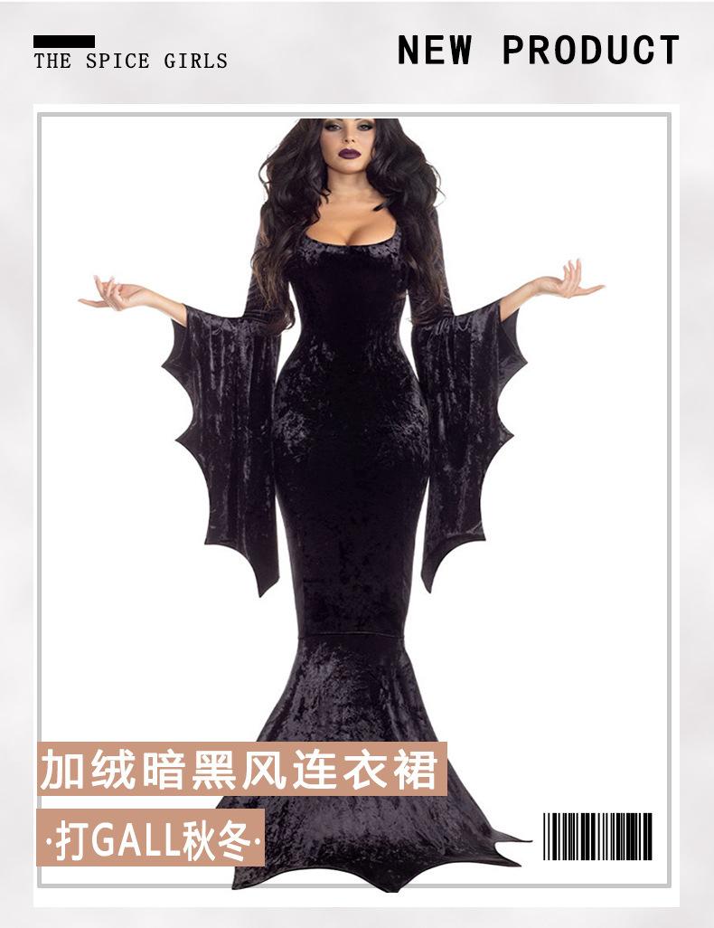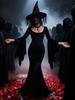 Disfraz de Bruja Murciélago Fantasma Novia Gótica Europea y Americana para Halloween Vestido de Baile de Mascarada Vampiro Disfraz de Actuación
