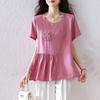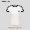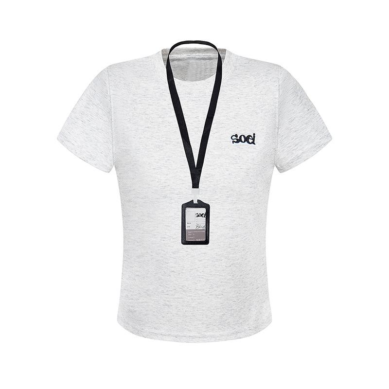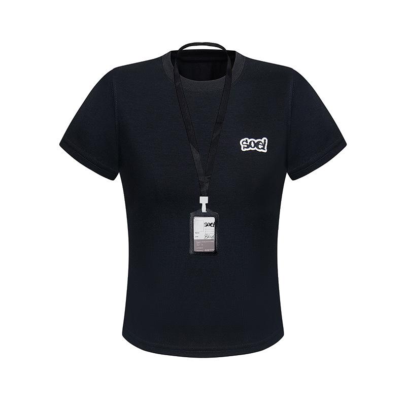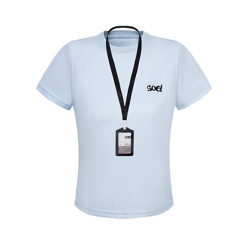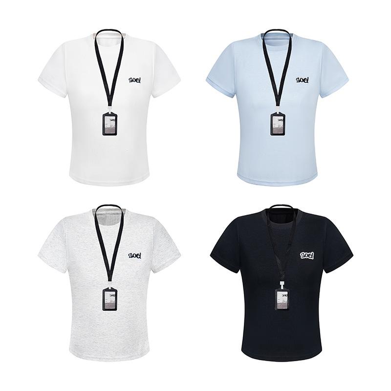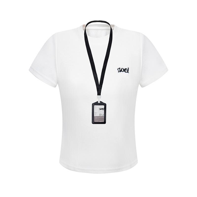 2025 Nuevo Estilo Americano Casual Color Sólido Hombro Spice Girl Camiseta de Manga Corta para Mujer Verano Bordada Corta Adelgazante Sensación Fresca