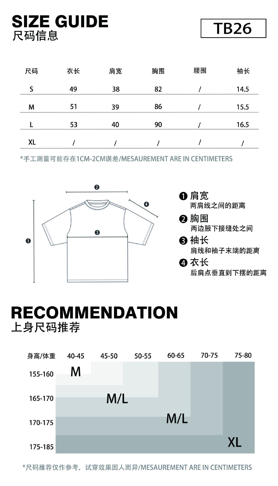 S, M, L