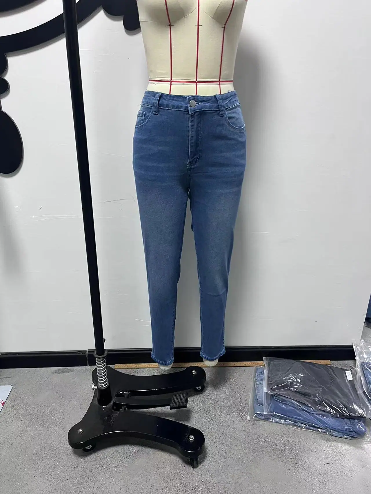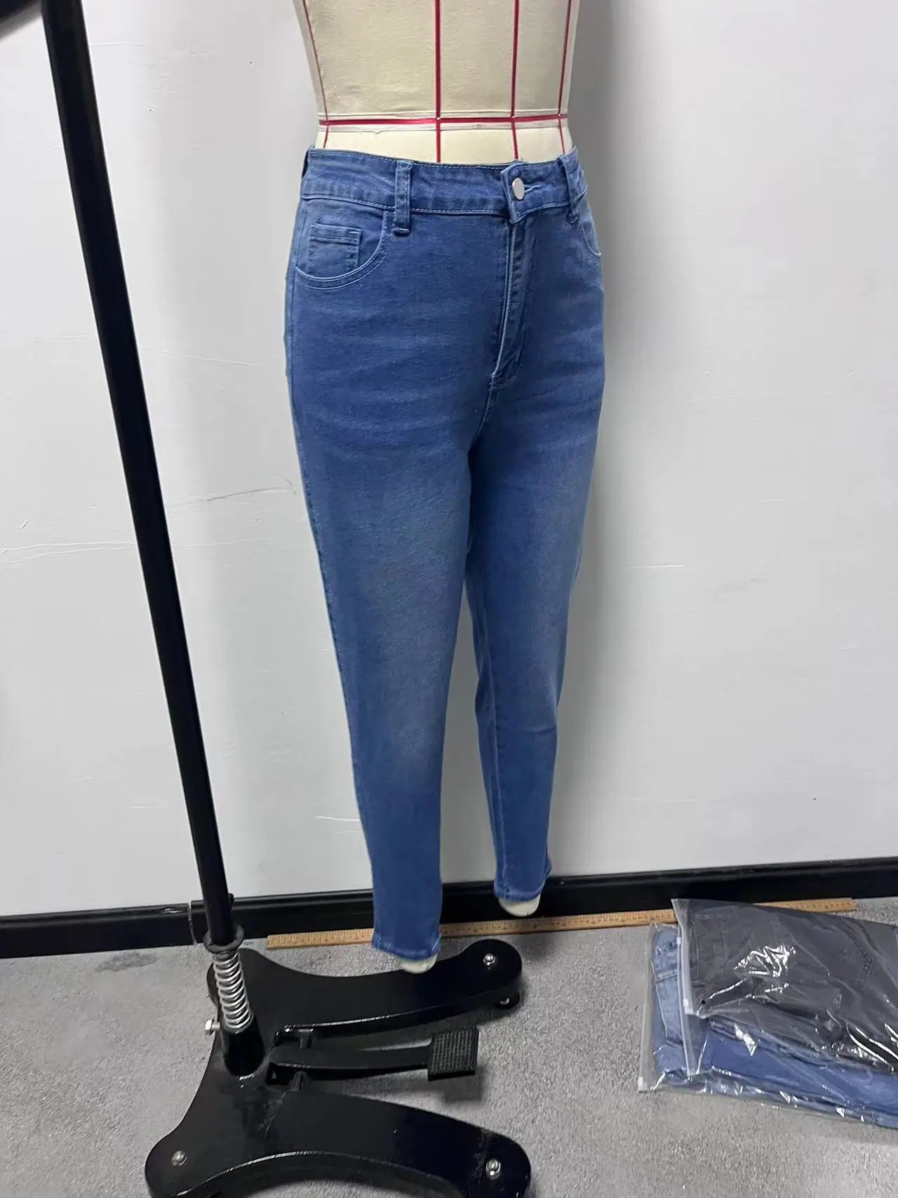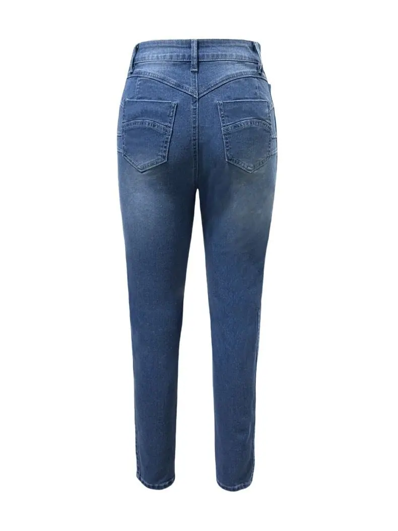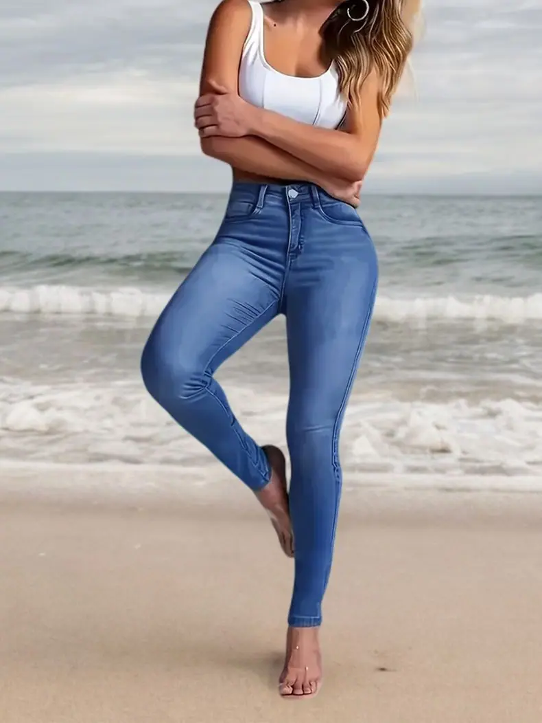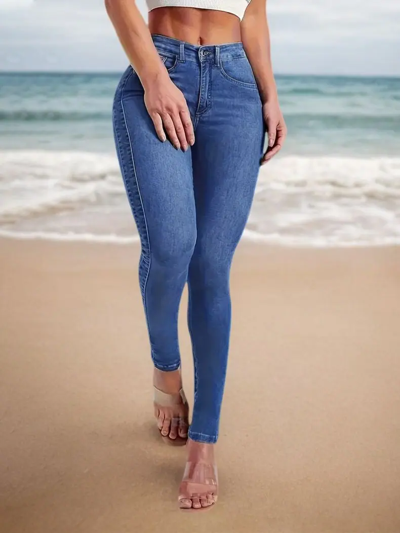 Transfronterizo AliExpress Europa y Estados Unidos 2025 Verano Nuevo Comercio Exterior Ajustado Pantalones Pitillo Elásticos Jeans de Cintura Alta Pantalones de Mujer