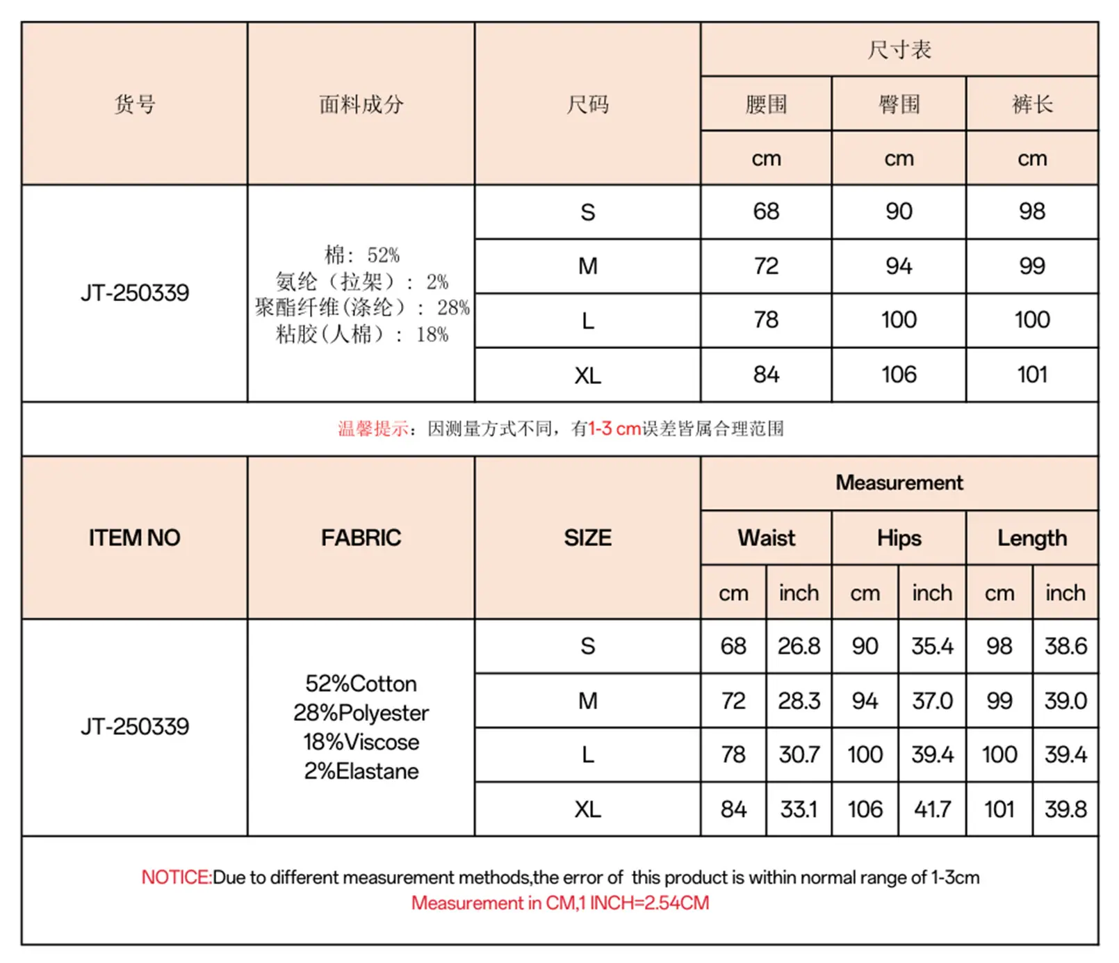 S, M, L, XL