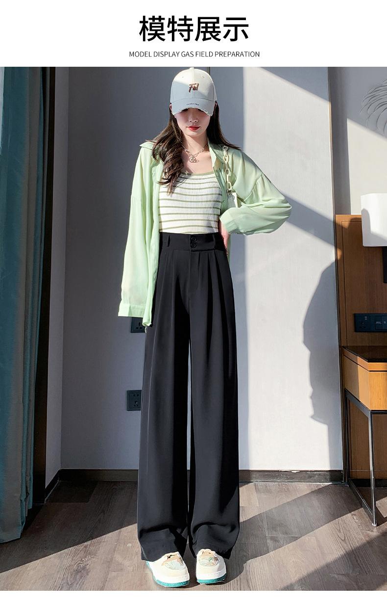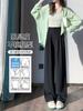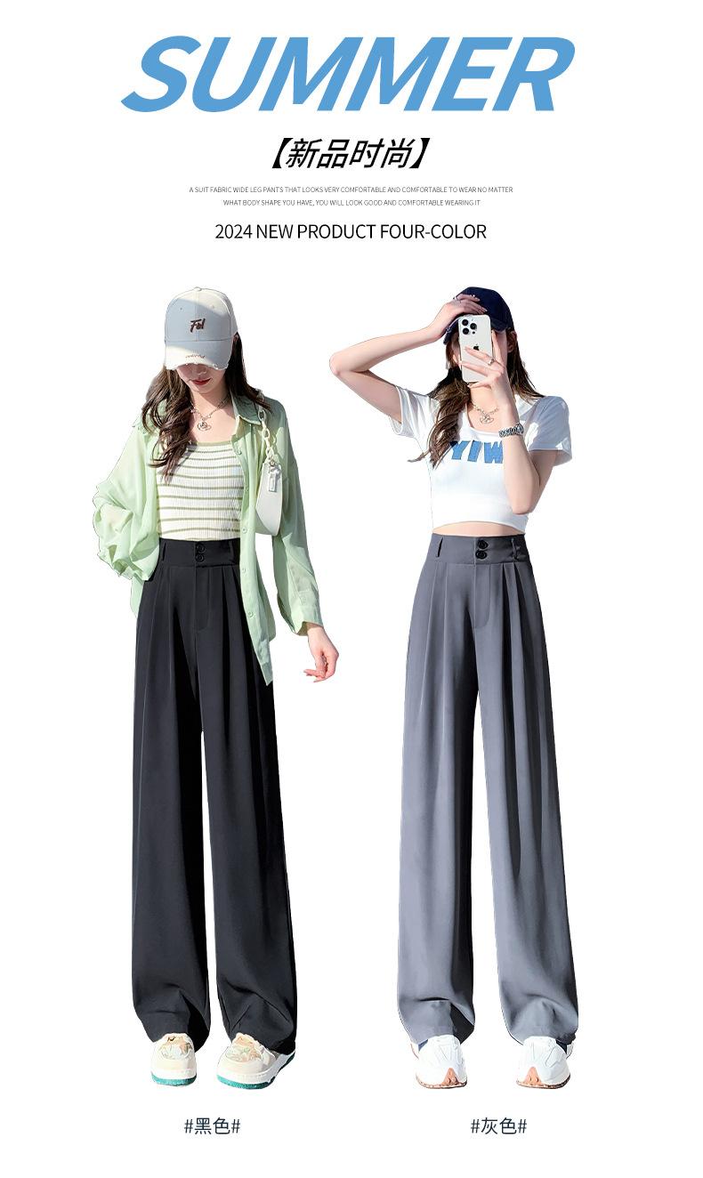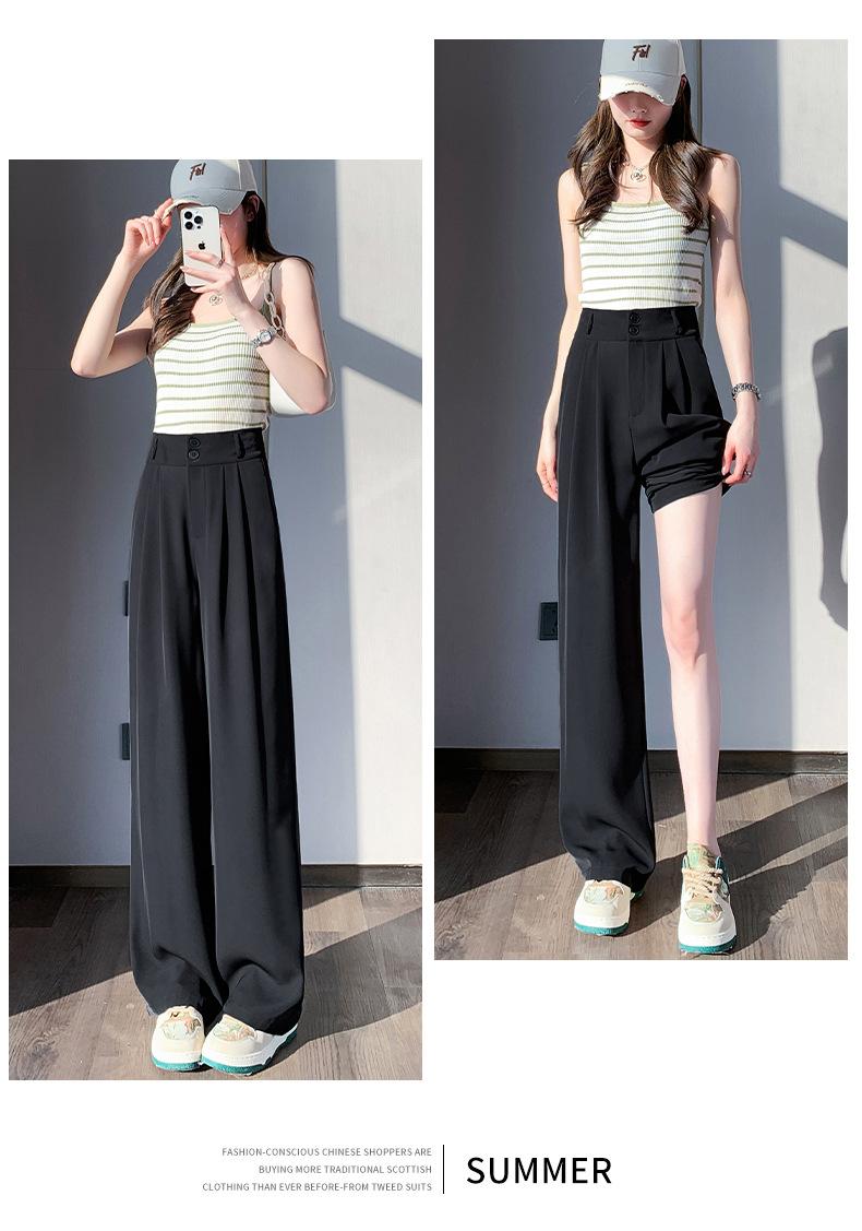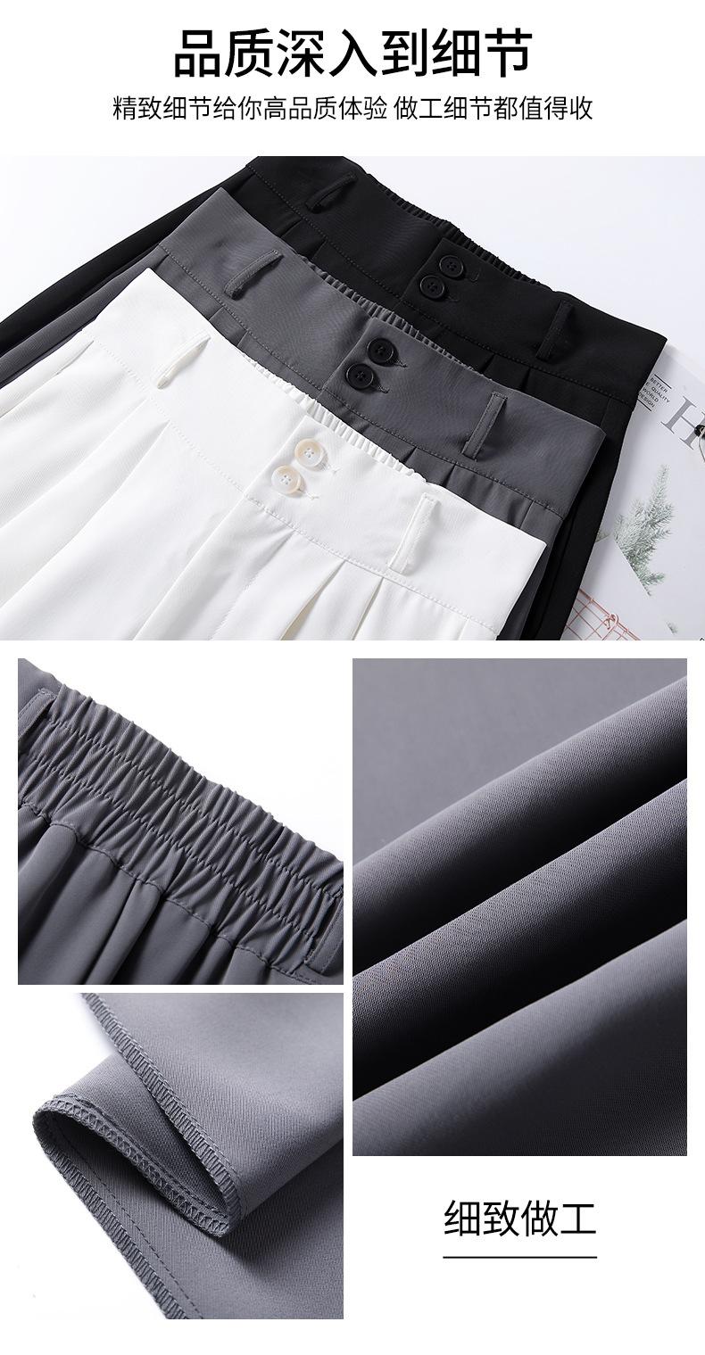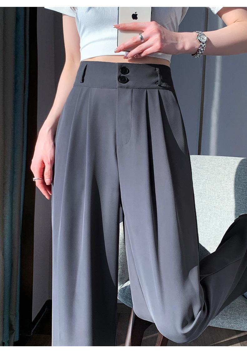 Traje Negro Pantalones de Pierna Ancha para Mujer Dosing Seda Helada Verano Cintura Alta Diseño de Doble Hebilla Ligeramente Gordo Estrecho Dosing Pantalones Rectos