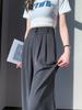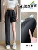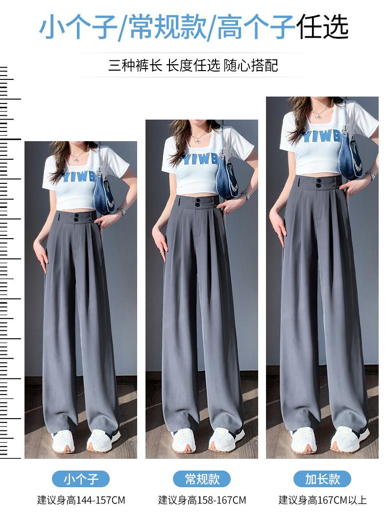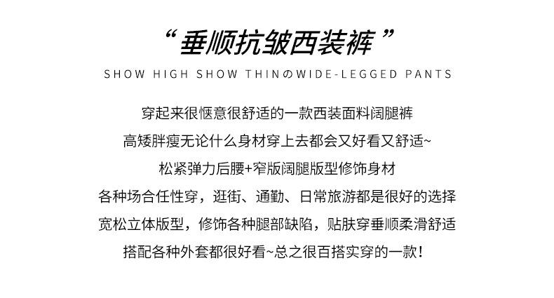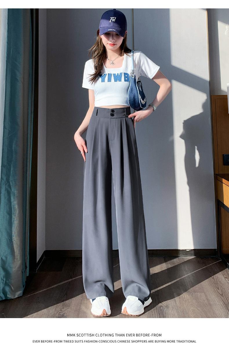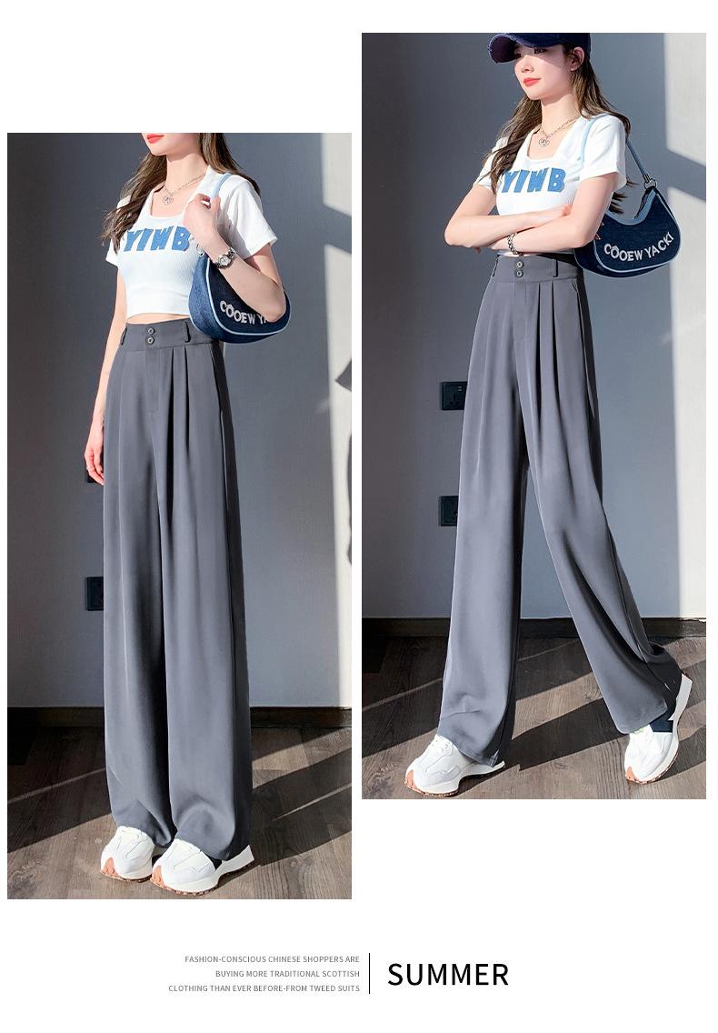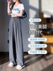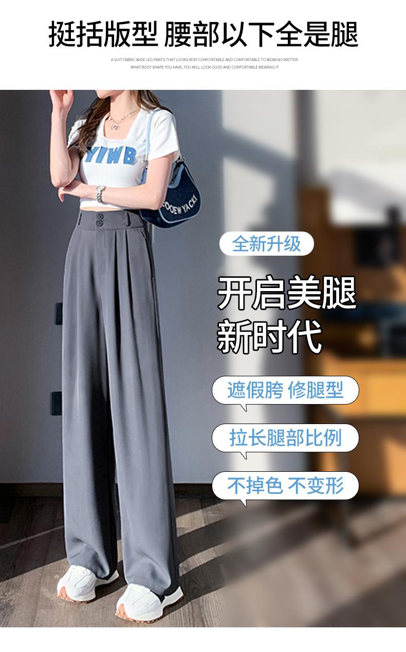 Traje Negro Pantalones de Pierna Ancha para Mujer Dosing Seda Helada Verano Cintura Alta Diseño de Doble Hebilla Ligeramente Gordo Estrecho Dosing Pantalones Rectos