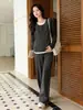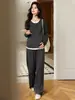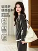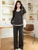 Traje de Maternidad Jingqi Invierno Nuevo Holgado Falso de Dos Piezas Top Pantalones Forrado de Vellón Ropa de Otoño Ropa de Invierno Moderna de Alta Gama