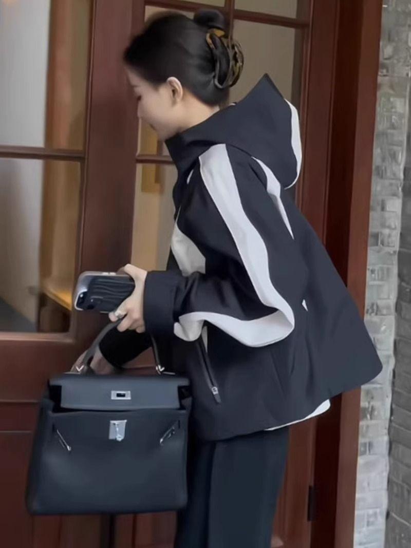 2025 Primavera y Otoño Nuevo Cortavientos Estilo Deportivo para Senderismo al Aire Libre con Bloques de Color Chaqueta Corta Talla Grande con Capucha Chaqueta de Béisbol Cortavientos
