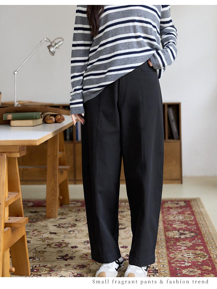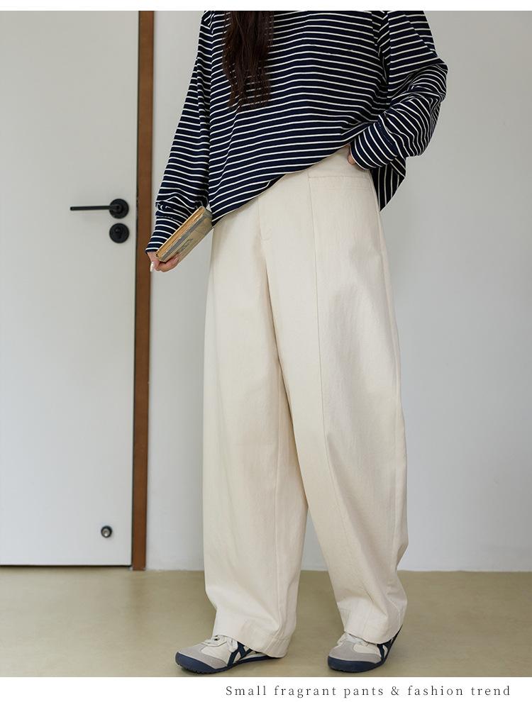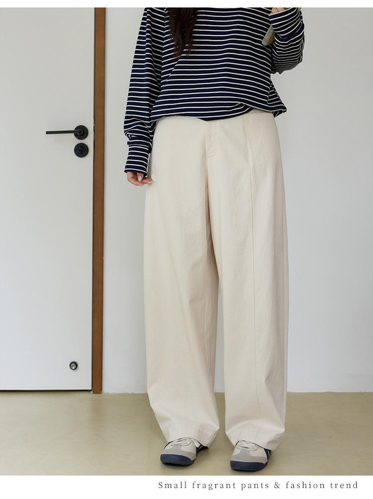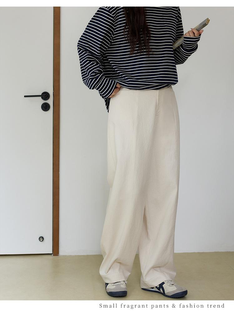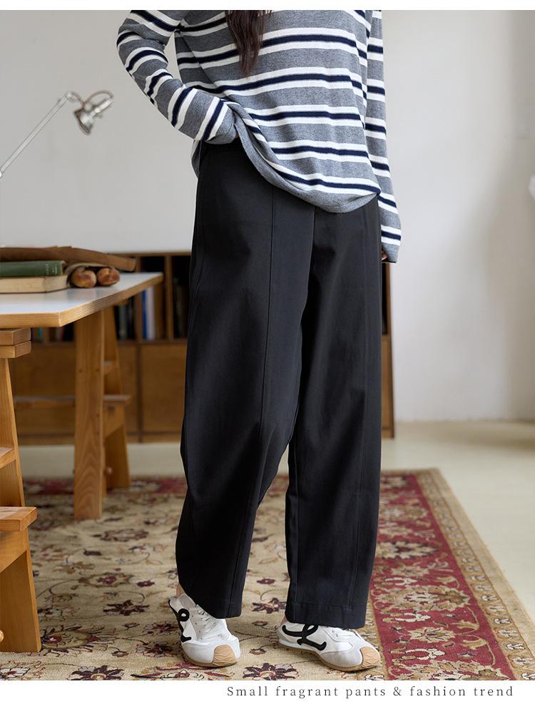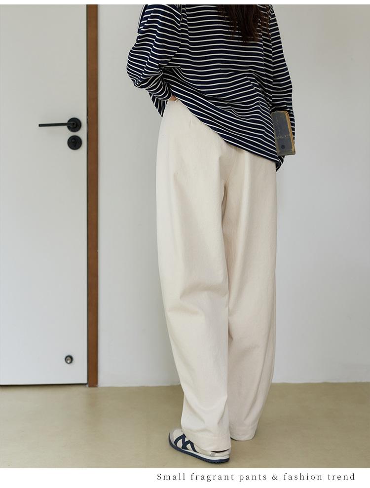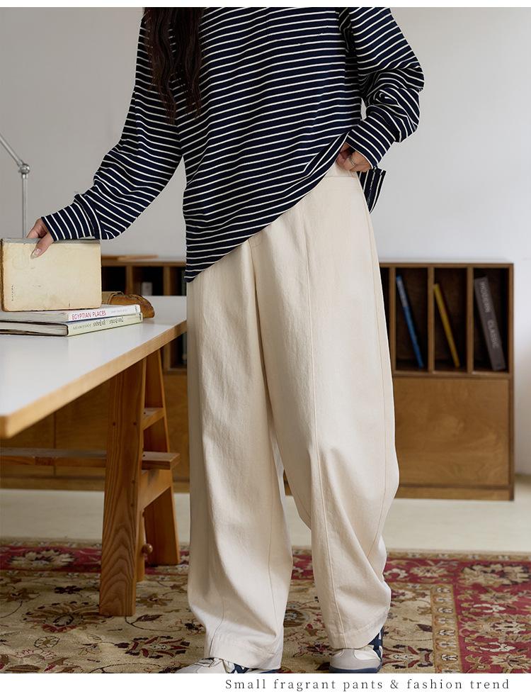 Pantalones de Pierna Ancha de Algodón Puro de Cintura Alta Sueltos para Principios de Otoño para Mujer Talla Grande Mujer Drapeado Perezoso Adelgazante Bicolor Pierna Recta Pantalones Casuales