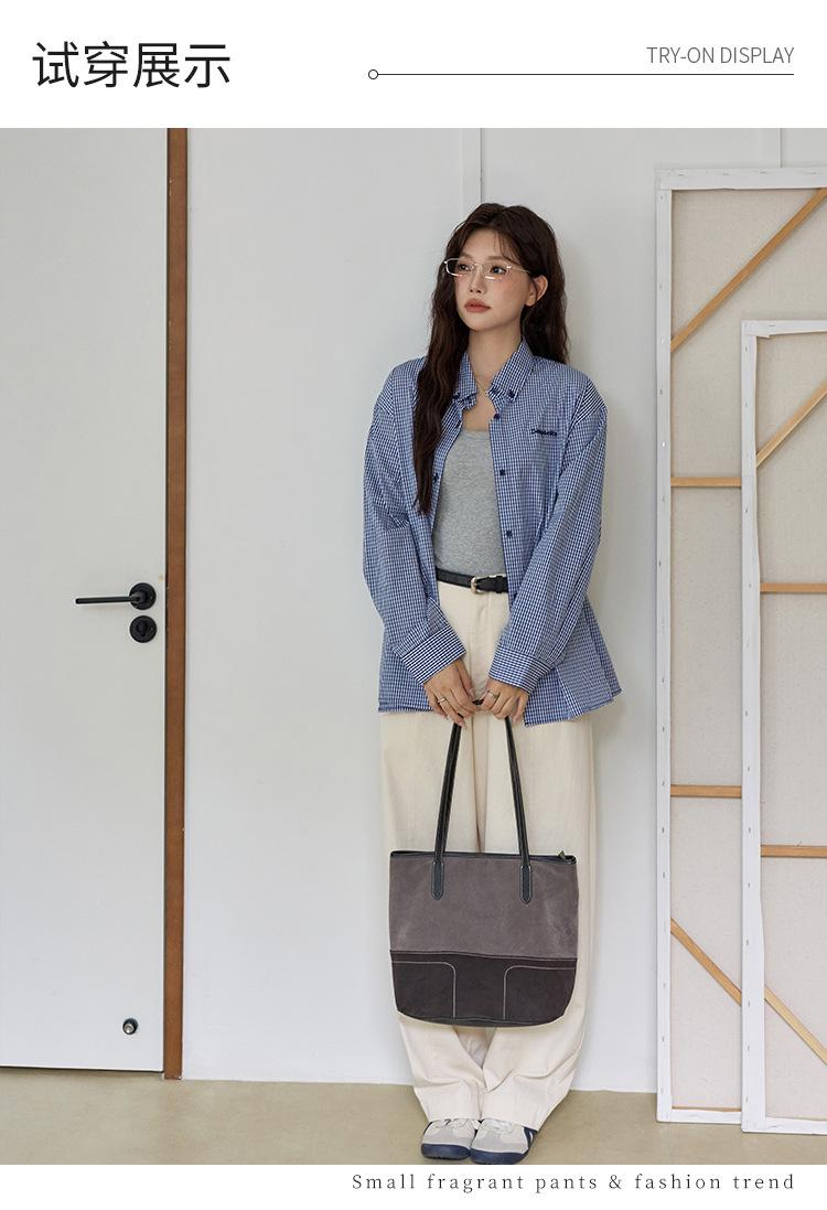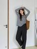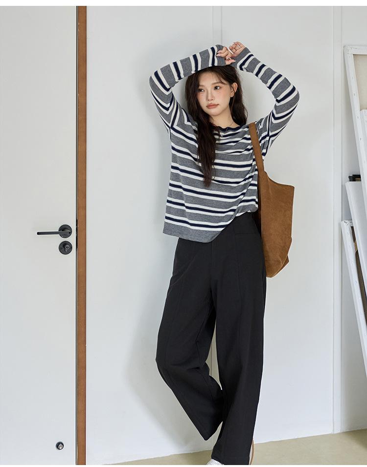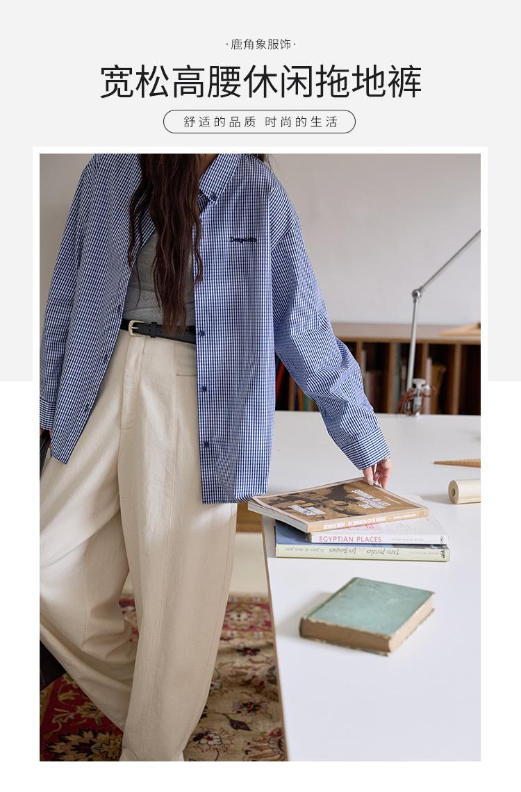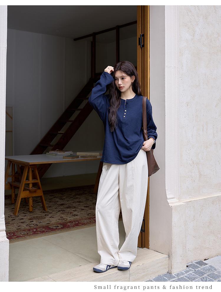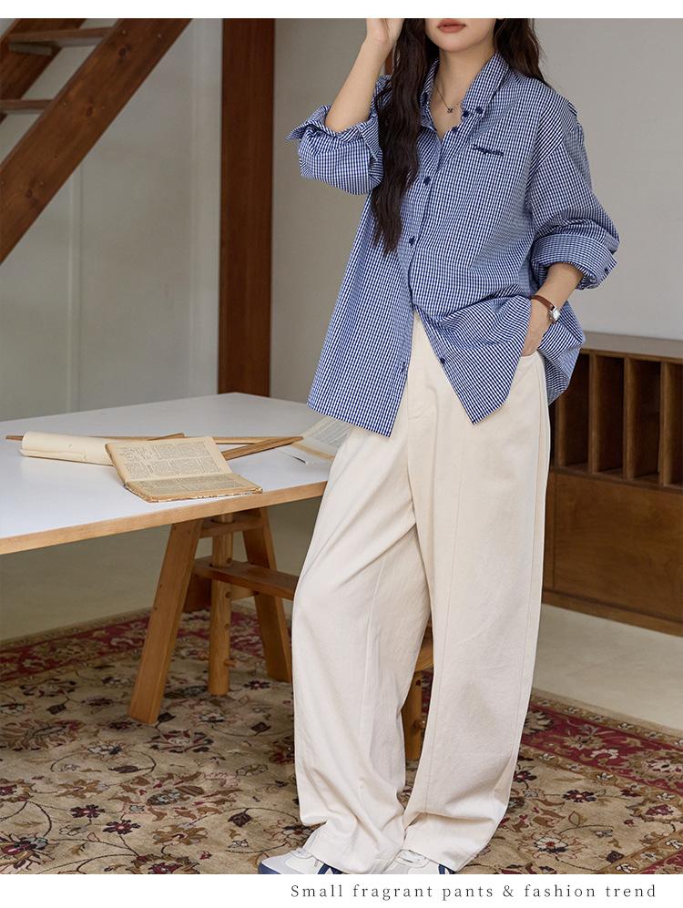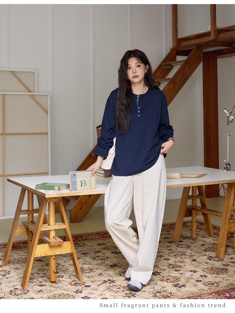 Pantalones de Pierna Ancha de Algodón Puro de Cintura Alta Sueltos para Principios de Otoño para Mujer Talla Grande Mujer Drapeado Perezoso Adelgazante Bicolor Pierna Recta Pantalones Casuales