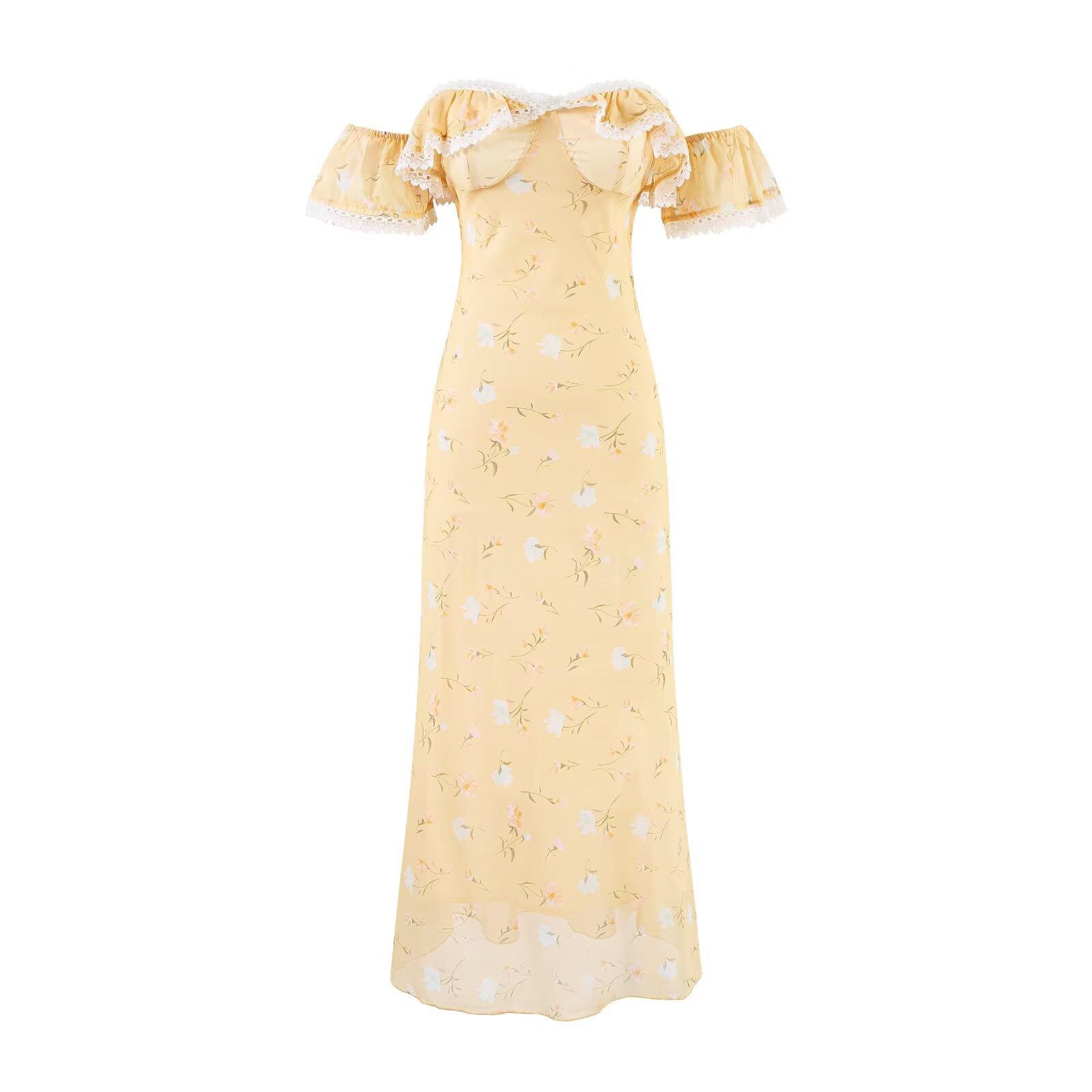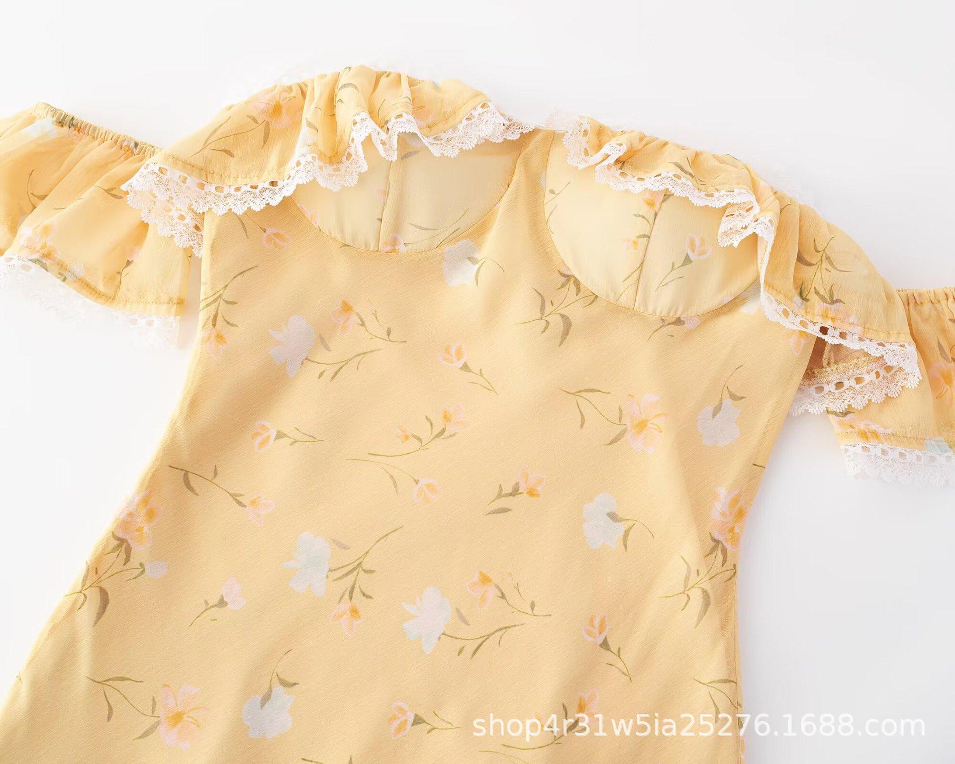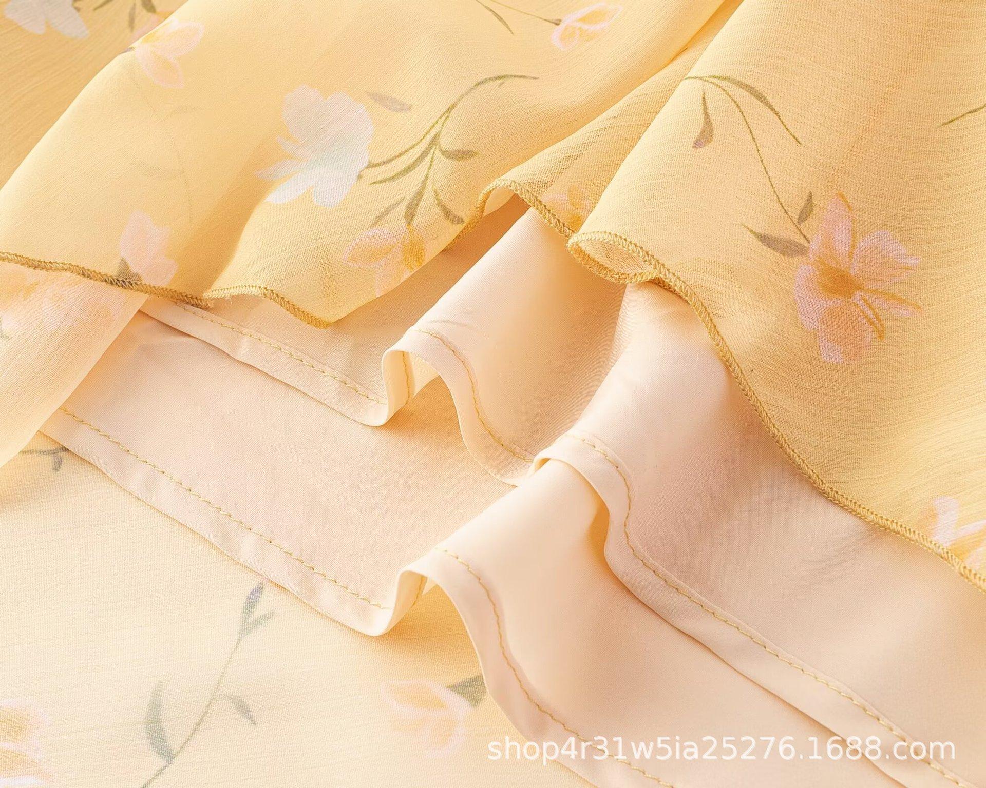 Francés Retro 2025 Nuevo Estilo de Verano Diseño de Aspecto Adelgazante de Cintura Vestido Estampado Estilo Resort de Playa