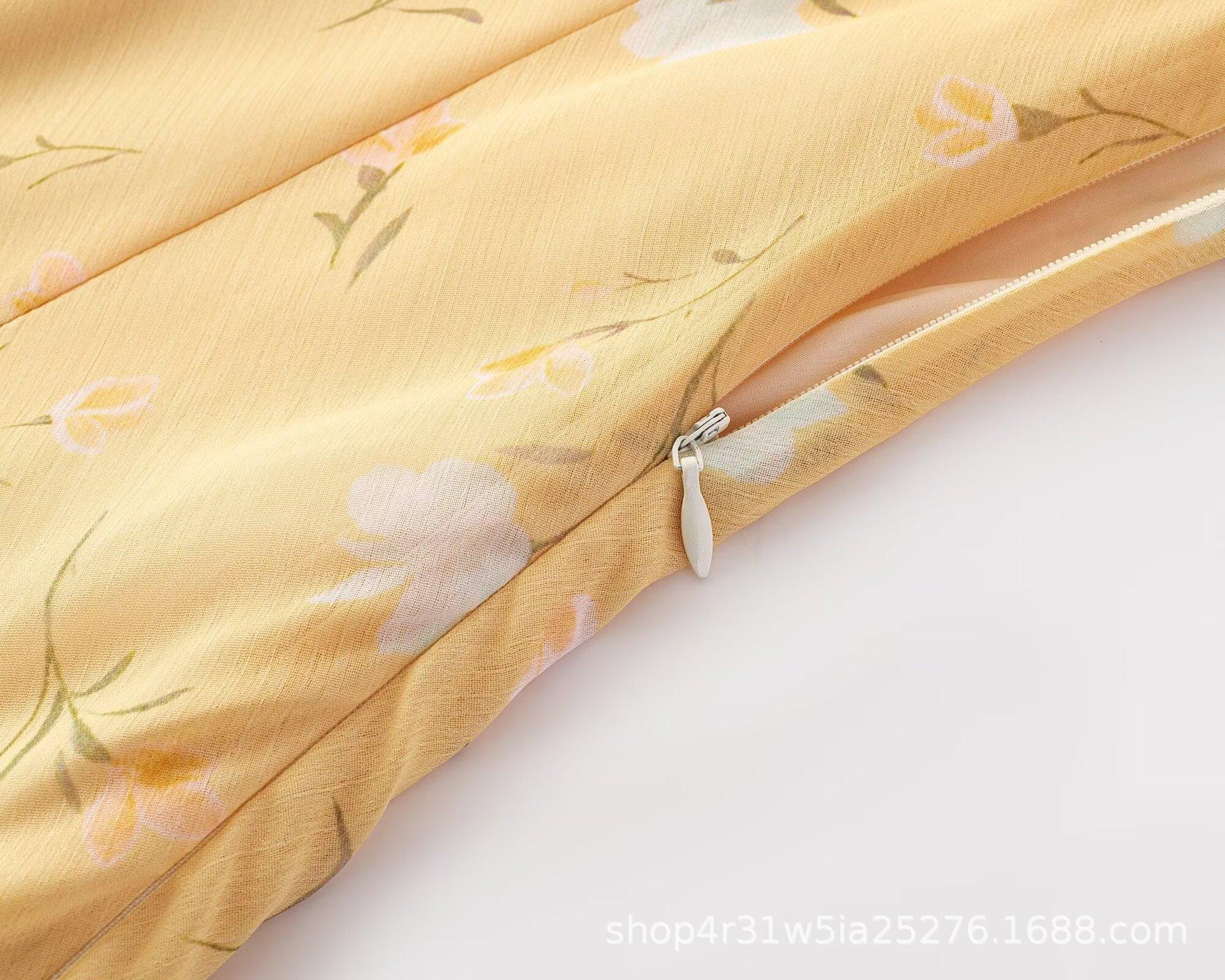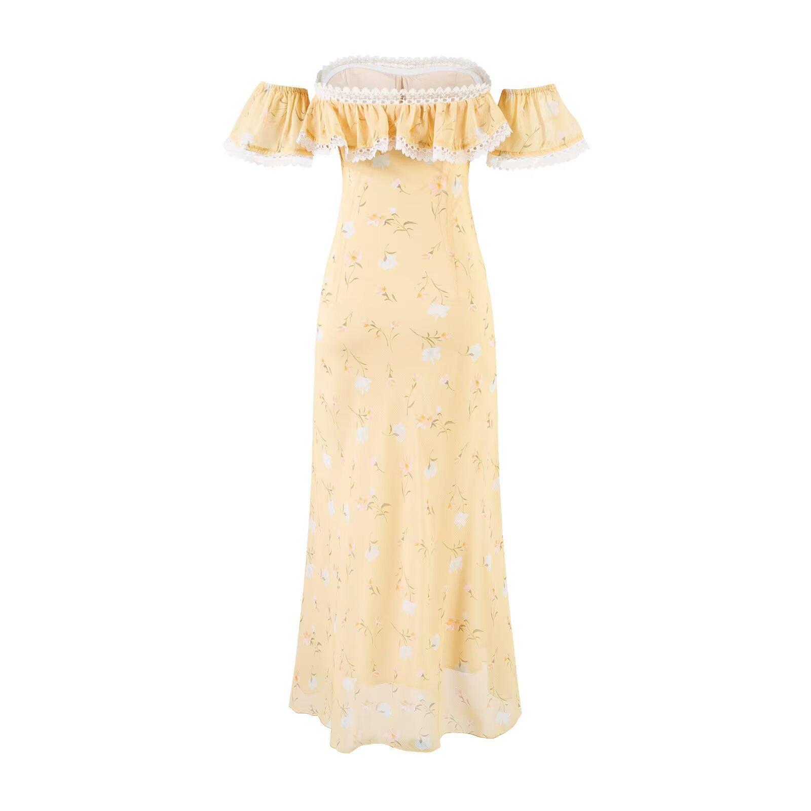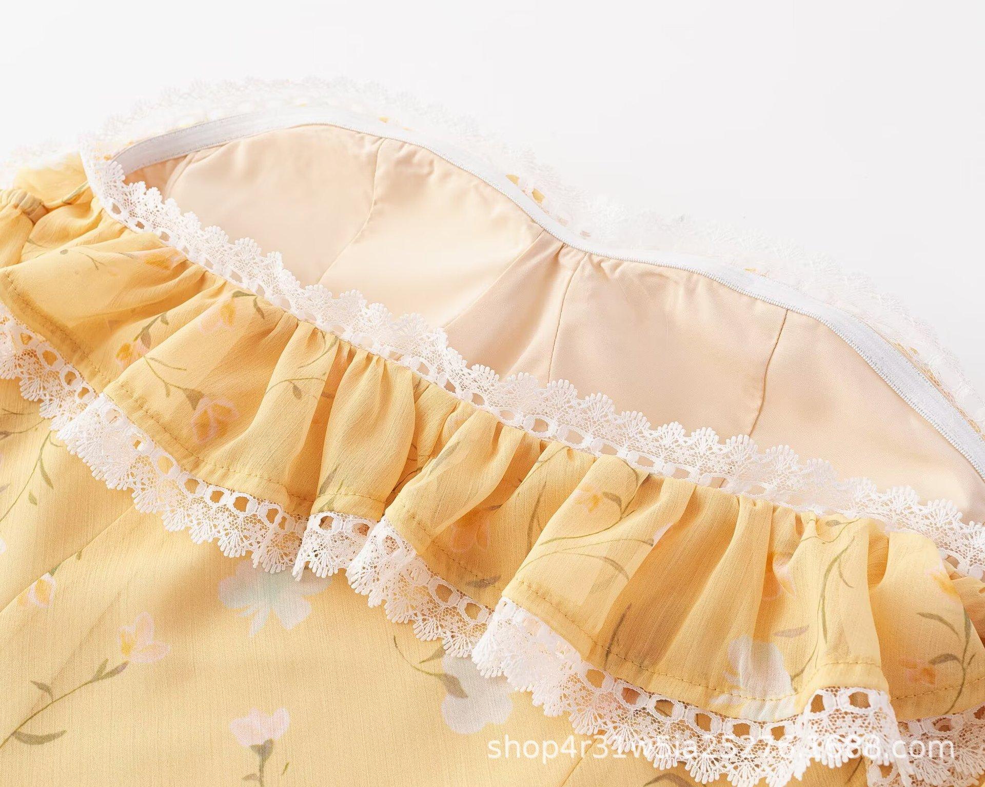 Francés Retro 2025 Nuevo Estilo de Verano Diseño de Aspecto Adelgazante de Cintura Vestido Estampado Estilo Resort de Playa