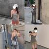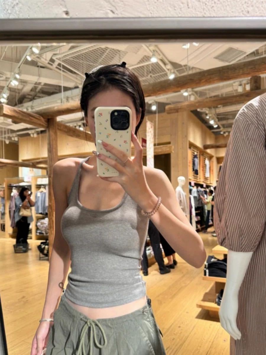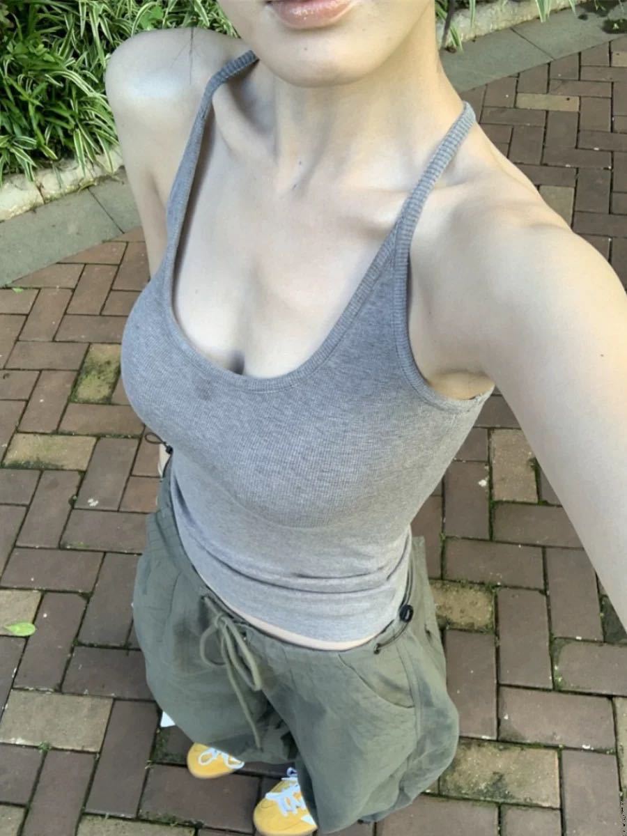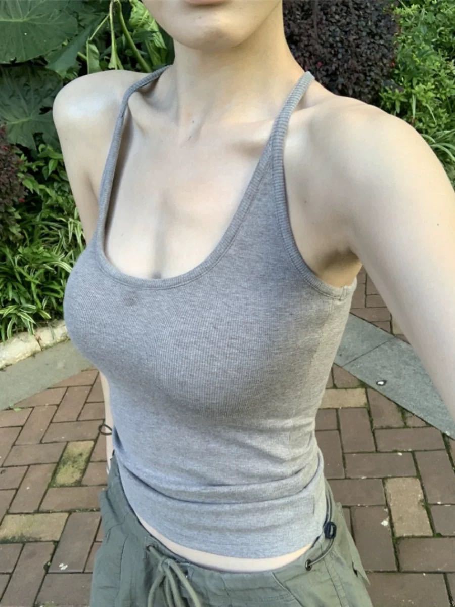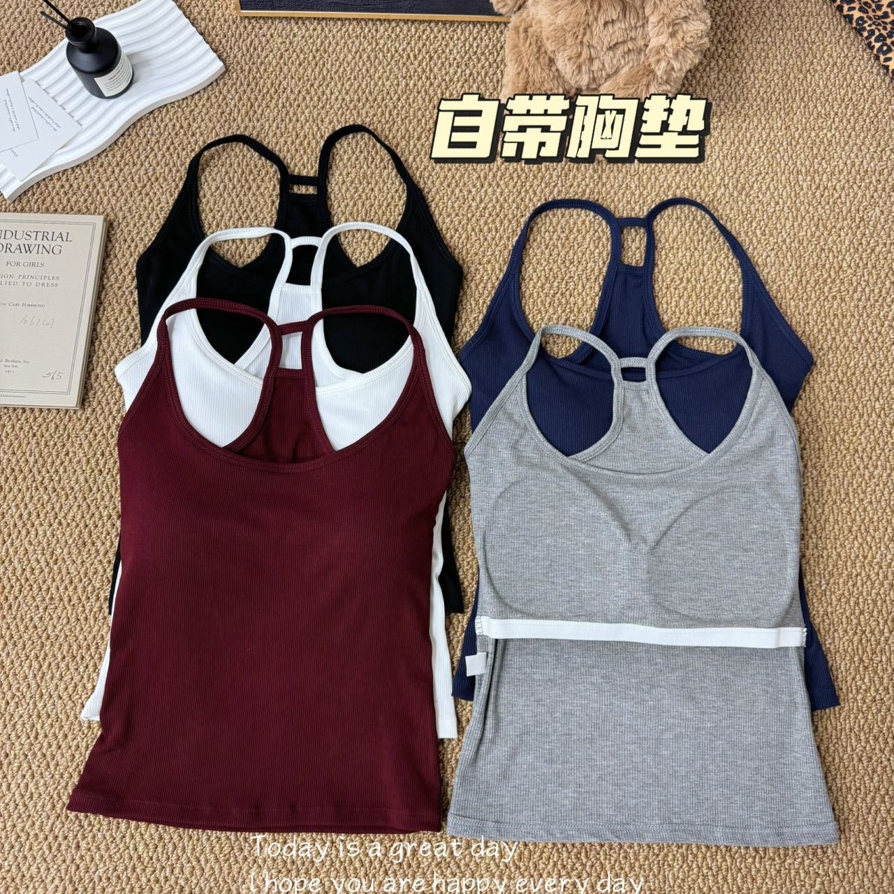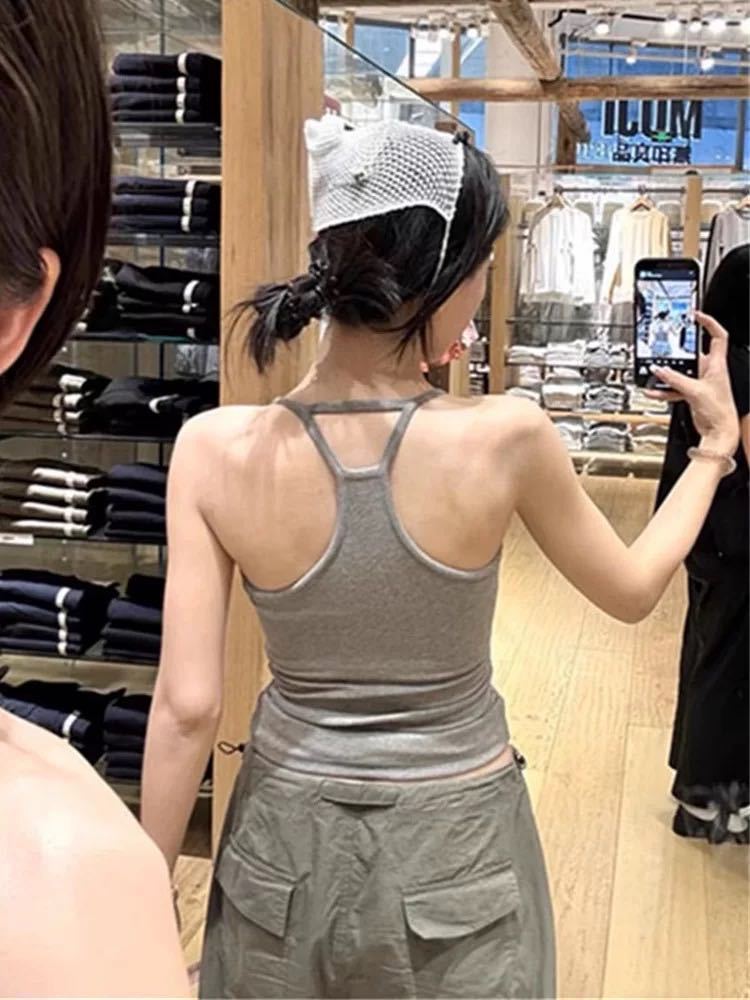 Verano Espalda Hermosa Spice Girl Deseo Puro Tirantes Chaleco Cinturón Almohadilla para el Pecho Espalda con Letra I Chaleco de Color Sólido Deportivo Combinable para Mujer