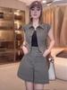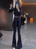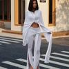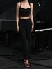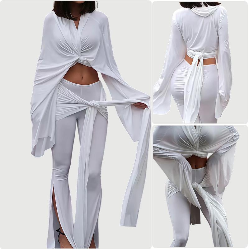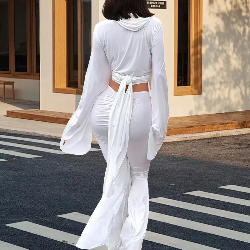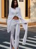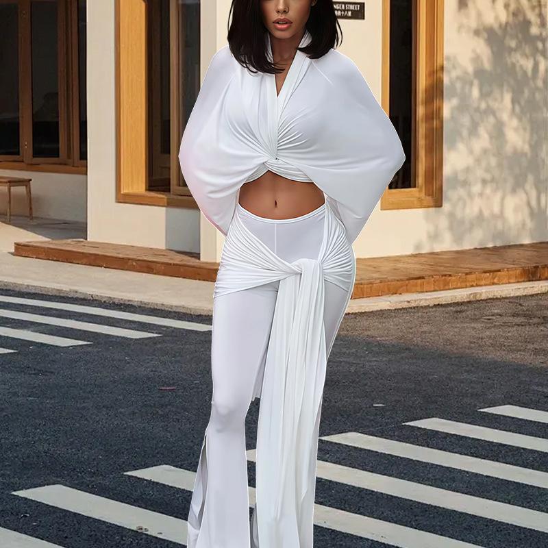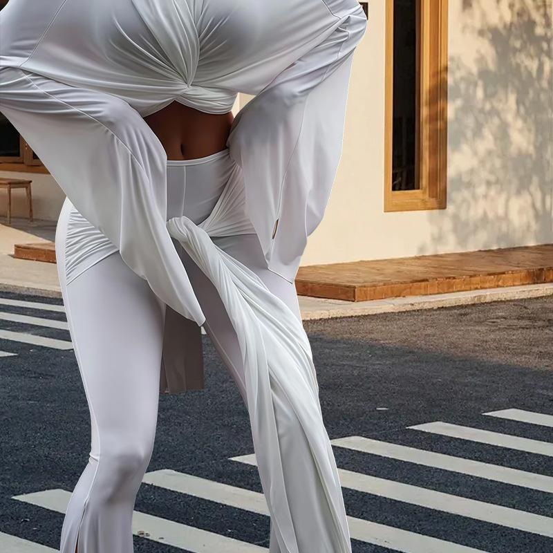 Europeo y Americano 2025 Nuevo Top Irregular para Mujer Sensación Cintura Descubierta Bodycon Cordones Abertura Pantalón Largo Set Seda de Leche