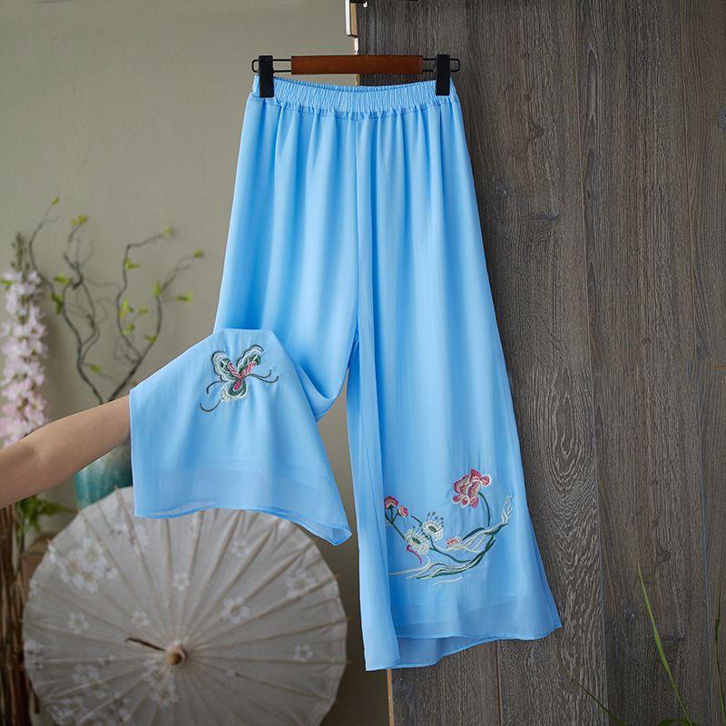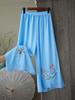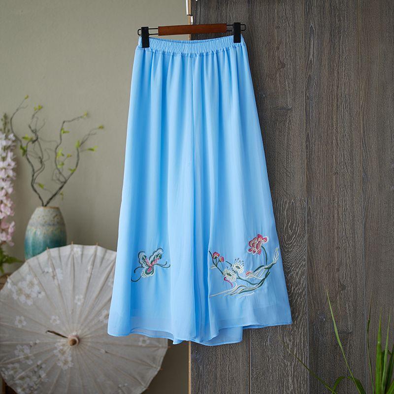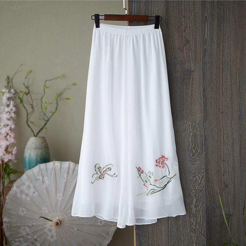 Compra Verano 2025 Nuevo Versátil Pantalón Holgado de Pierna Ancha Diseño de Algodón y Lino Pantalón Falda Bordado con Cintura Elástica Talla Extra Moda Femenina al por mayor en Joom.pro