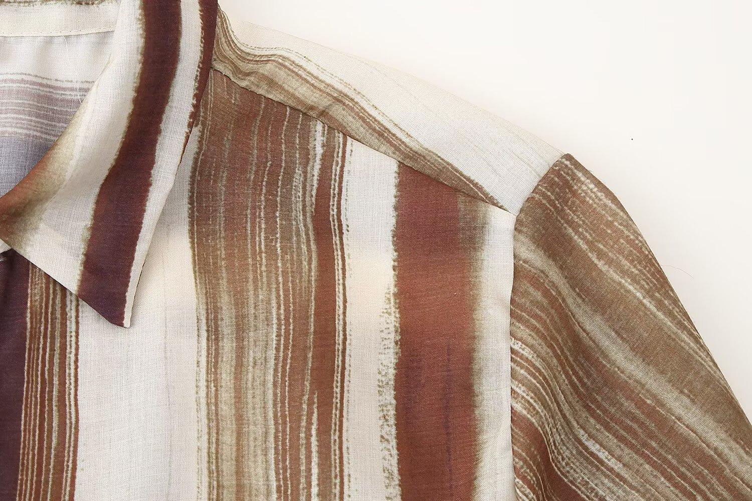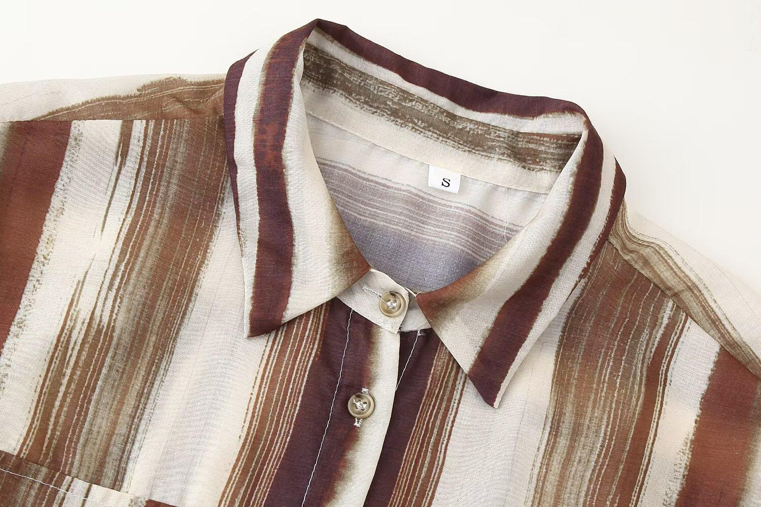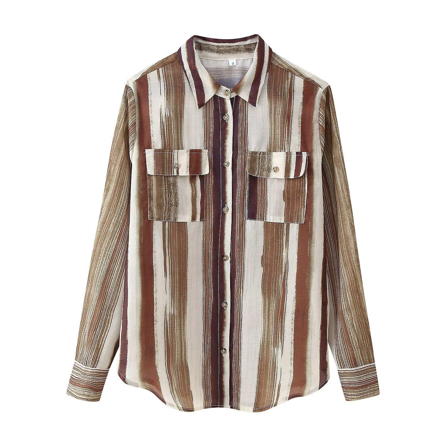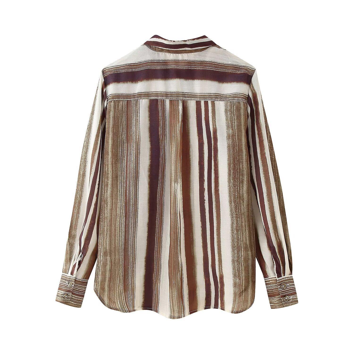 Compra Nuevo Producto Transfronterizo 2025 Ropa de Mujer Estilo Europeo y Americano Comercio Exterior Venta al por Mayor Camisa de Rayas de Solapa Suelta de Manga Larga Zr al por mayor en Joom.pro