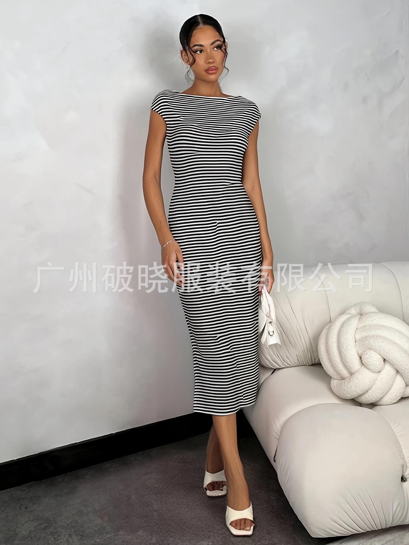 Compra Vestido nuevo de primavera/verano para mujer con rayas y espalda descubierta para comercio exterior transfronterizo europeo y americano 2025 al por mayor en Joom.pro