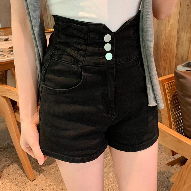Shorts de Mezclilla Negros de Verano para Mujer Delgados 2025 Nuevos Sexy Spice Girls Cintura Alta Elásticos Ajustados Adelgazantes Super Shorts