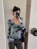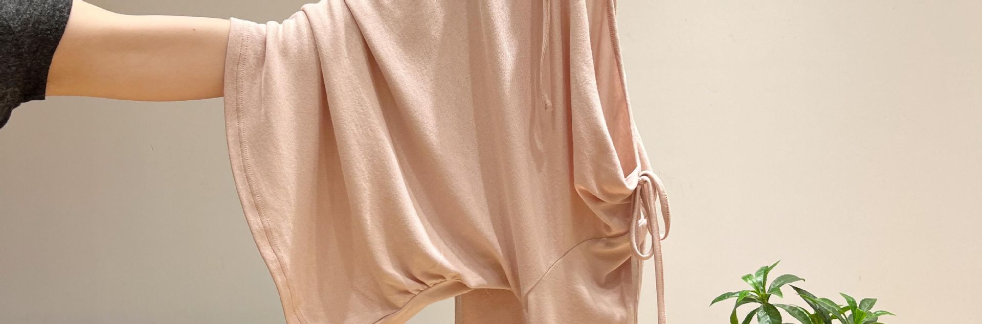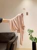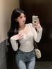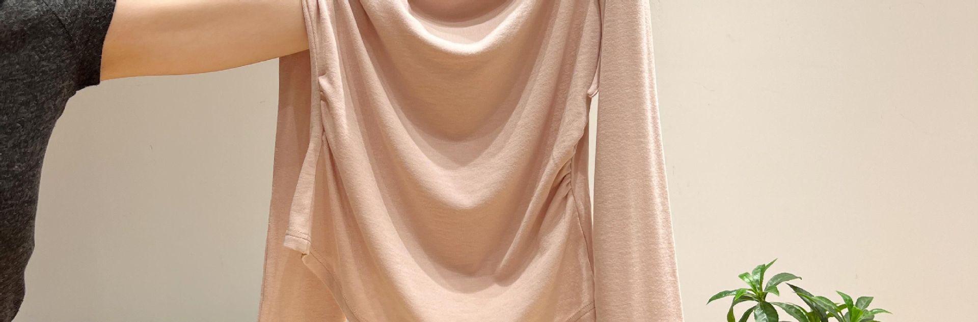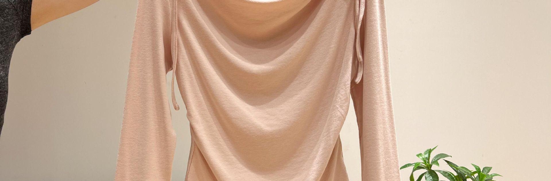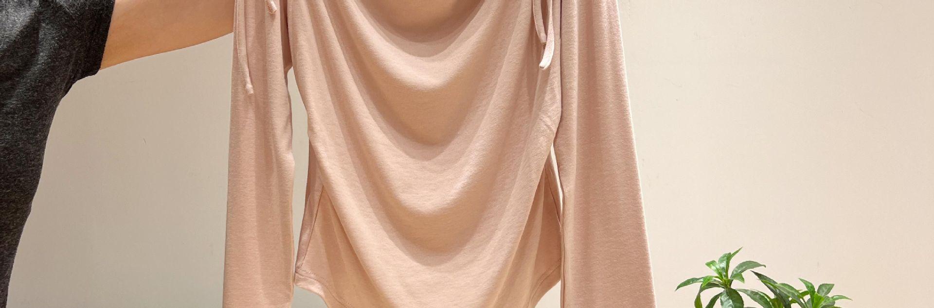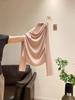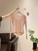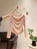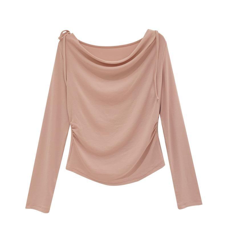 Playera de manga larga con un hombro descubierto y lazo, rosa suave y puro para mujer, otoño, fruncida, adelgazante, top pequeño de alta gama