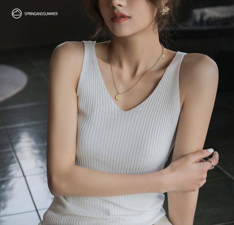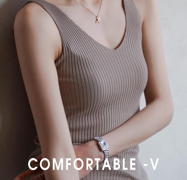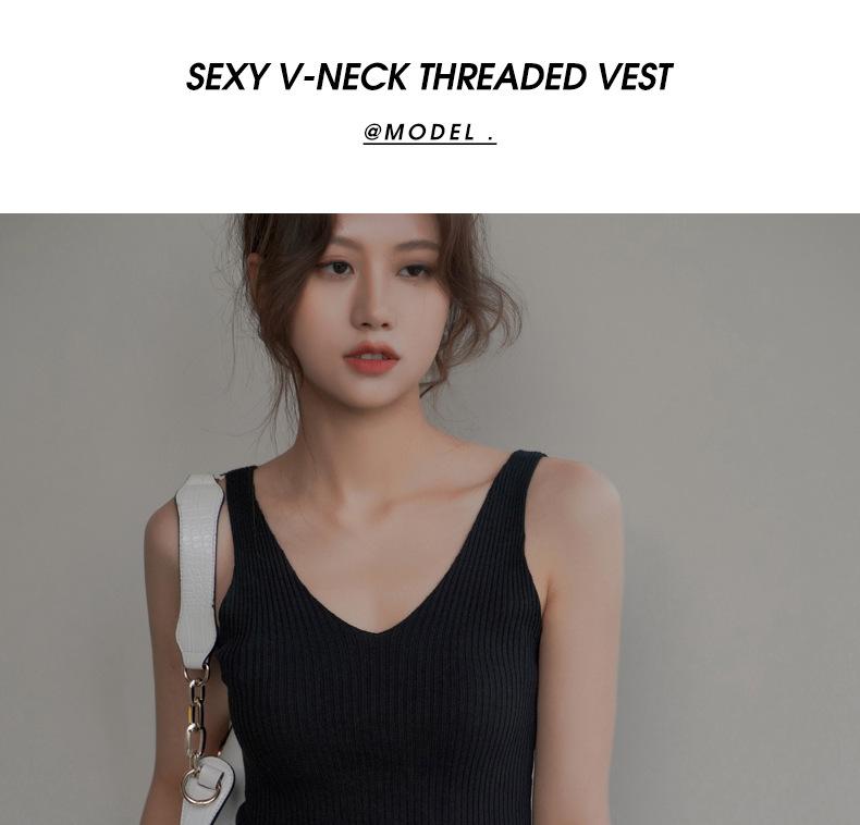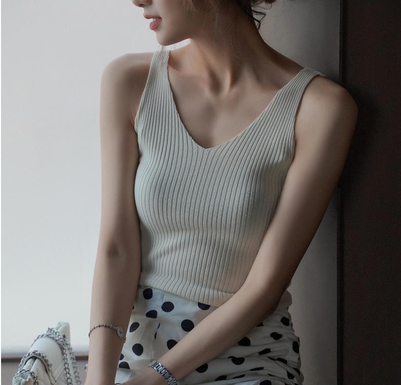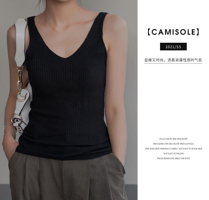 Compra Camisola sin mangas de cuello en V de color sólido nuevo de primavera y verano para mujer, corte ajustado, adecuada como capa interior o top de exterior. al por mayor en Joom.pro