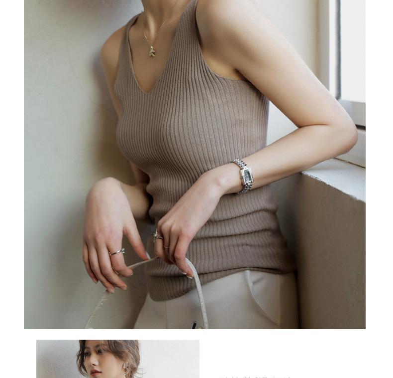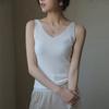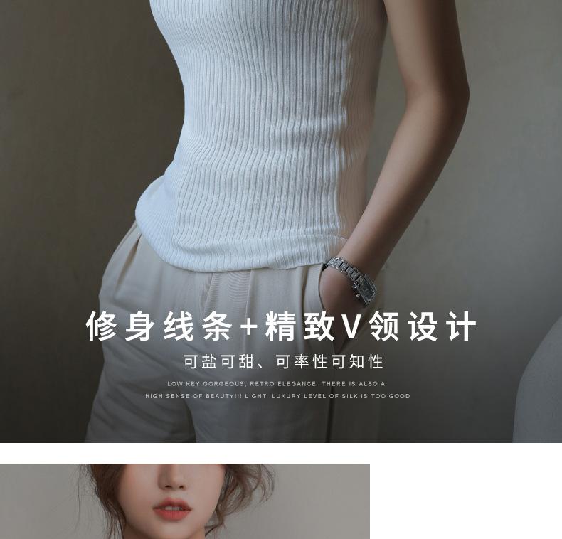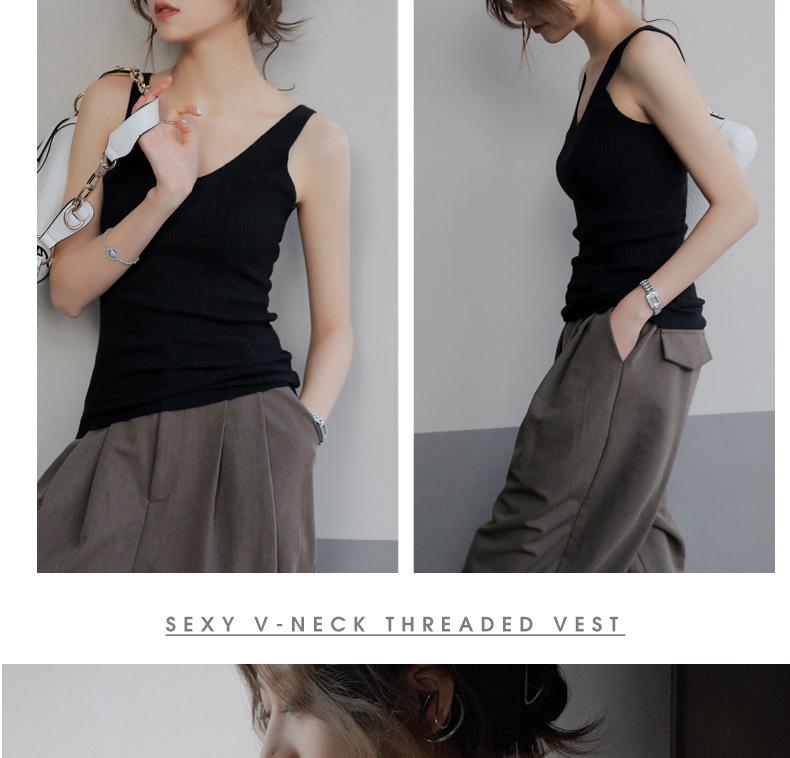 Camisola sin mangas de cuello en V de color sólido nuevo de primavera y verano para mujer, corte ajustado, adecuada como capa interior o top de exterior.