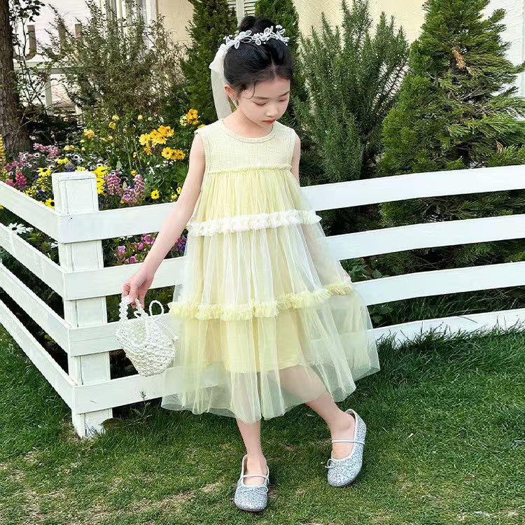 Compra 2025 Verano Nuevo Vestido de Niña Falda de Bebé Costuras de Malla Falda de Vacaciones Estilo Occidental Falda de Princesa Tesoro para Niña al por mayor en Joom.pro