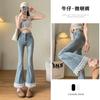 Pantalones de Mezclilla Acampanados para Mujer con Dulce Diseño de Encaje Empalmado, Ins Petite Cintura Baja Ajuste Slim Bootcut