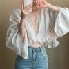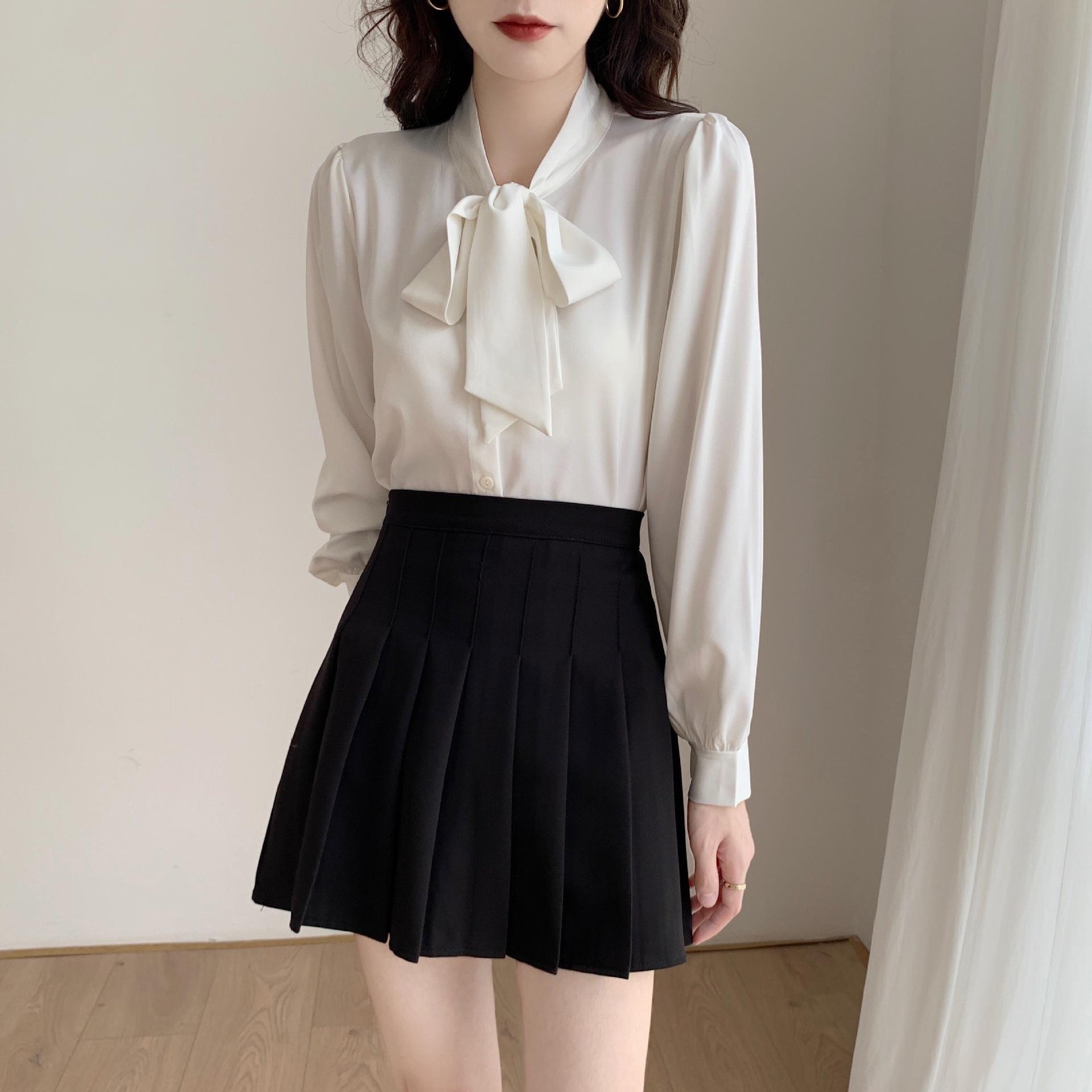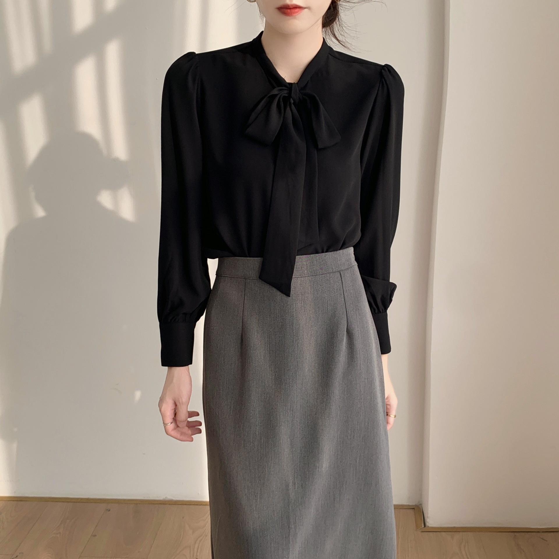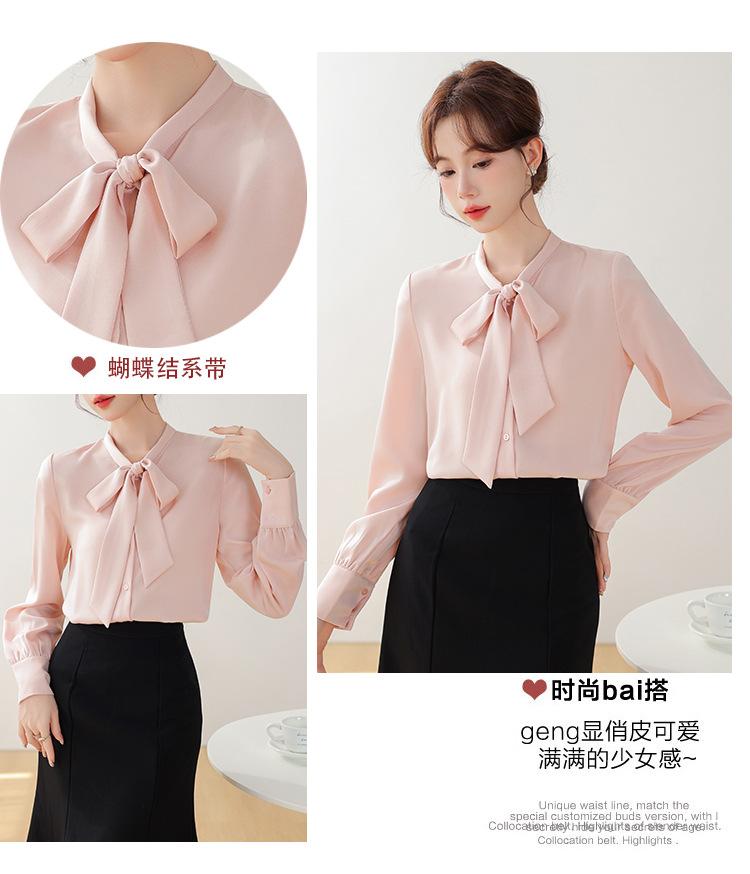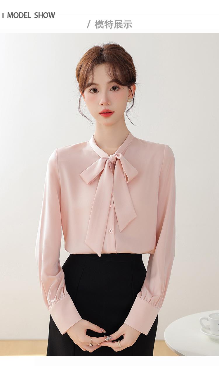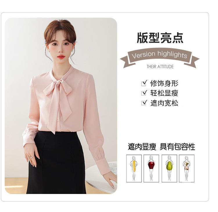 Blusa Super Original Azul con Lazo para Mujer Diseño de Nicho con Sentido Profesional Camisa de Temperamento Top de Satén con Lazo