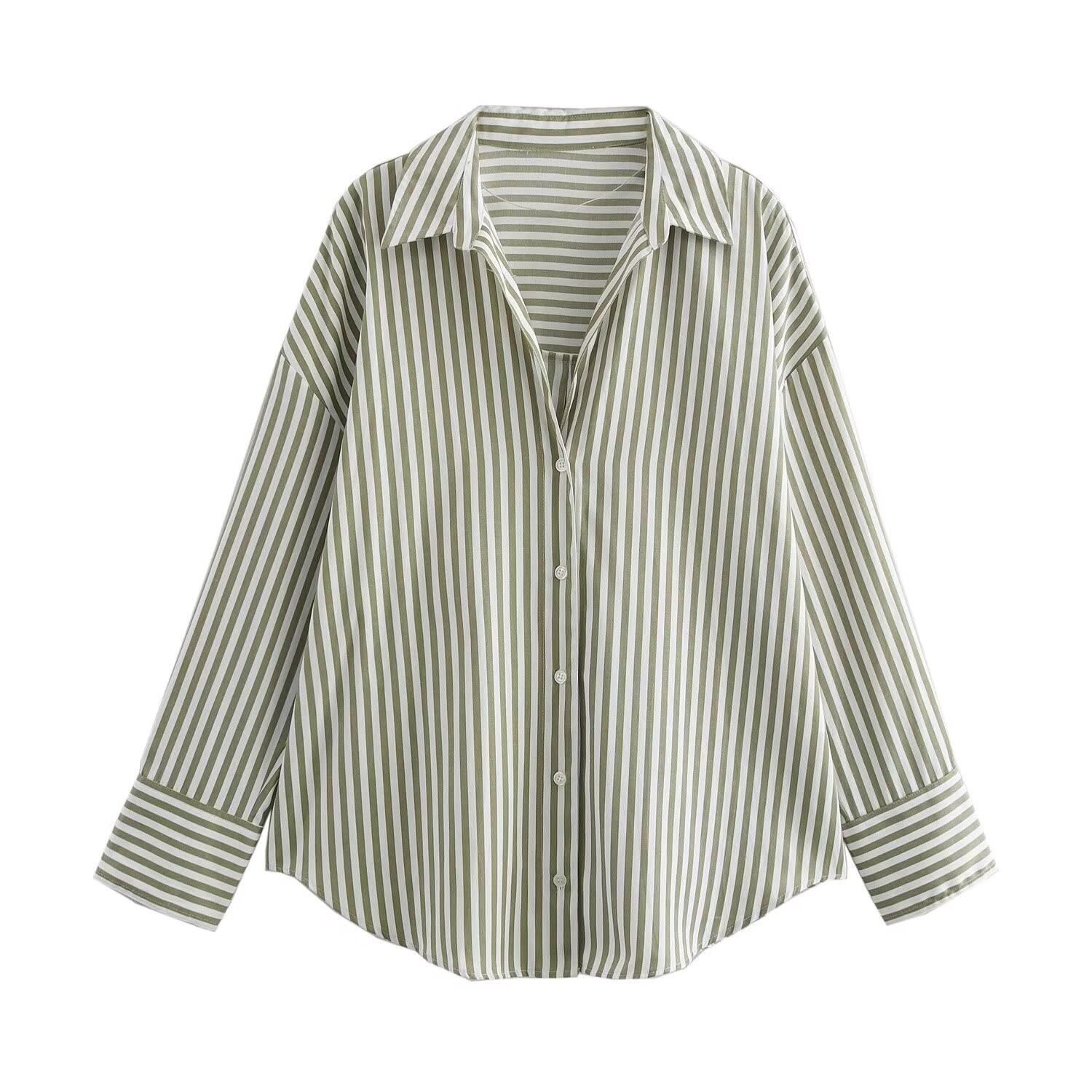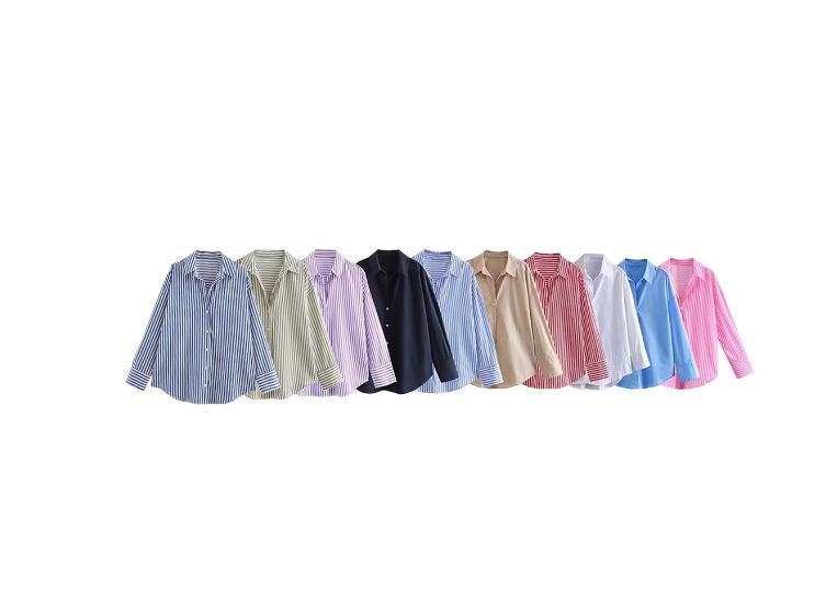 Ropa de mujer transfronteriza al por mayor 2025 nueva estilo europeo y americano camisa holgada de manga larga francesa top versátil adelgazante para mujer