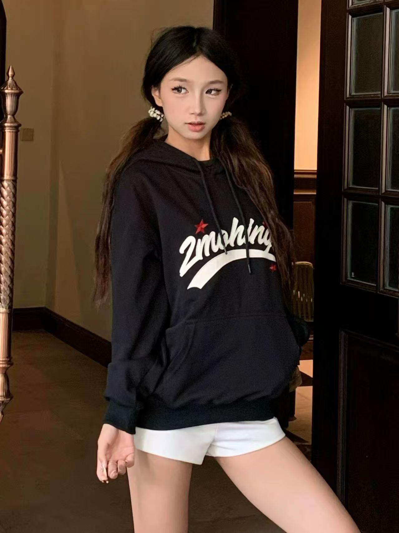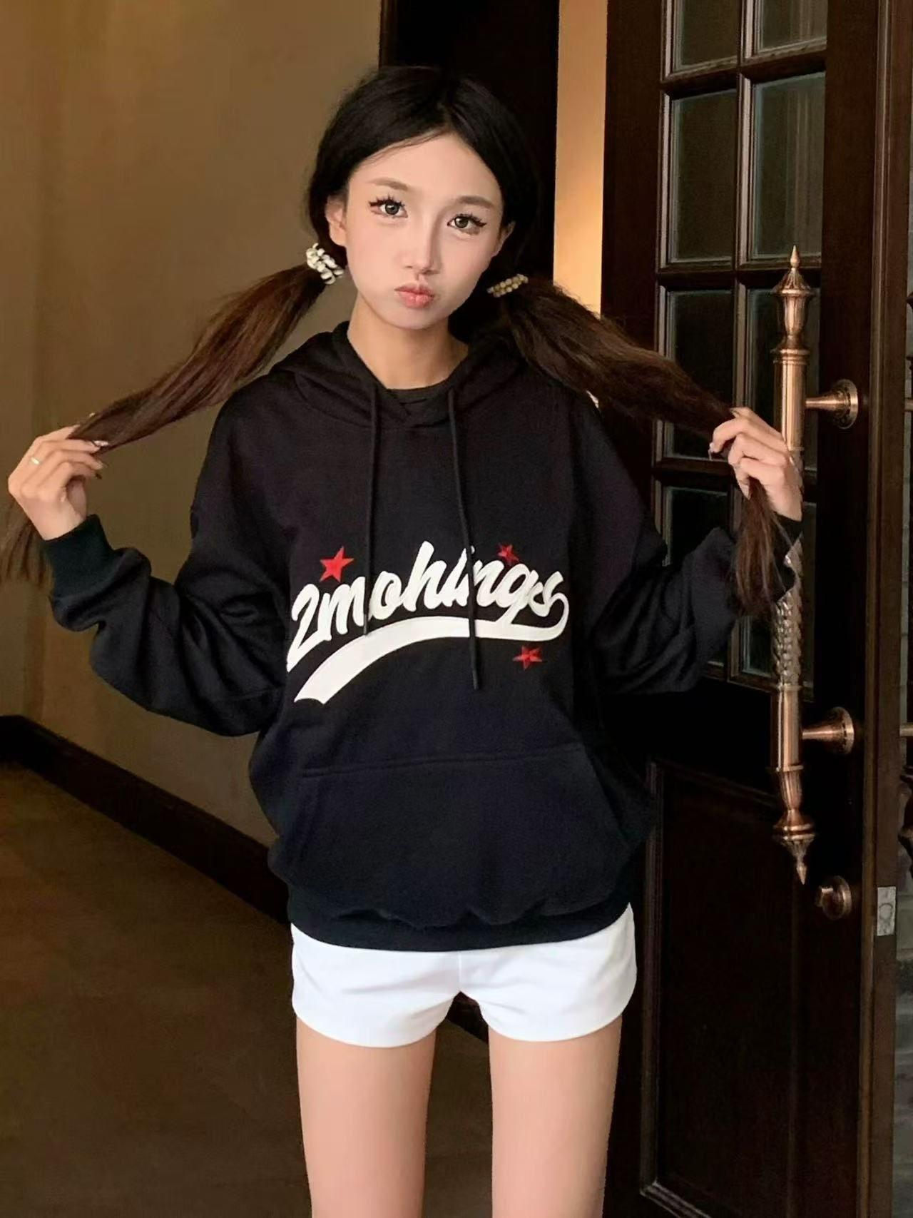 Marea Nacional Alta Calle Forro Polar Moda Estampado de Letras Sudadera con Capucha Hombres y Mujeres Marca de Tendencia de Alta Gama Versátil Sudadera con Capucha Casual Tendencia