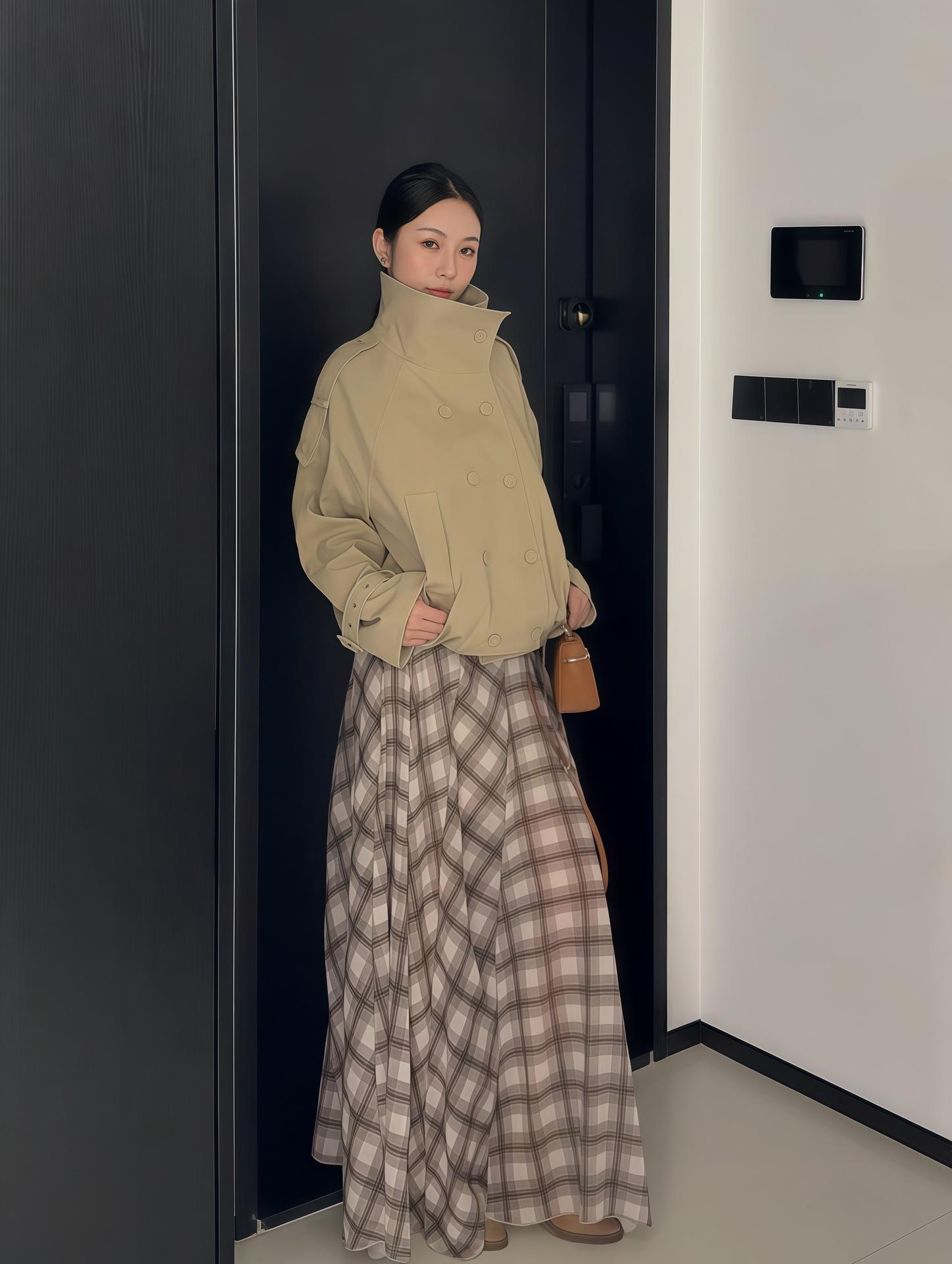 Nuevo abrigo corto tipo gabardina con cuello alto de diseño estilo británico para mujer, temporada de principios de primavera, estilo coreano, top único de doble botonadura