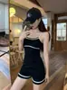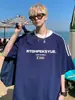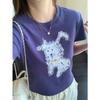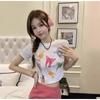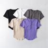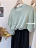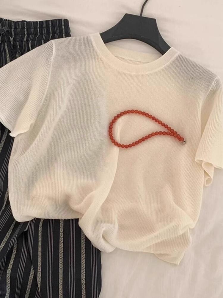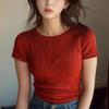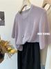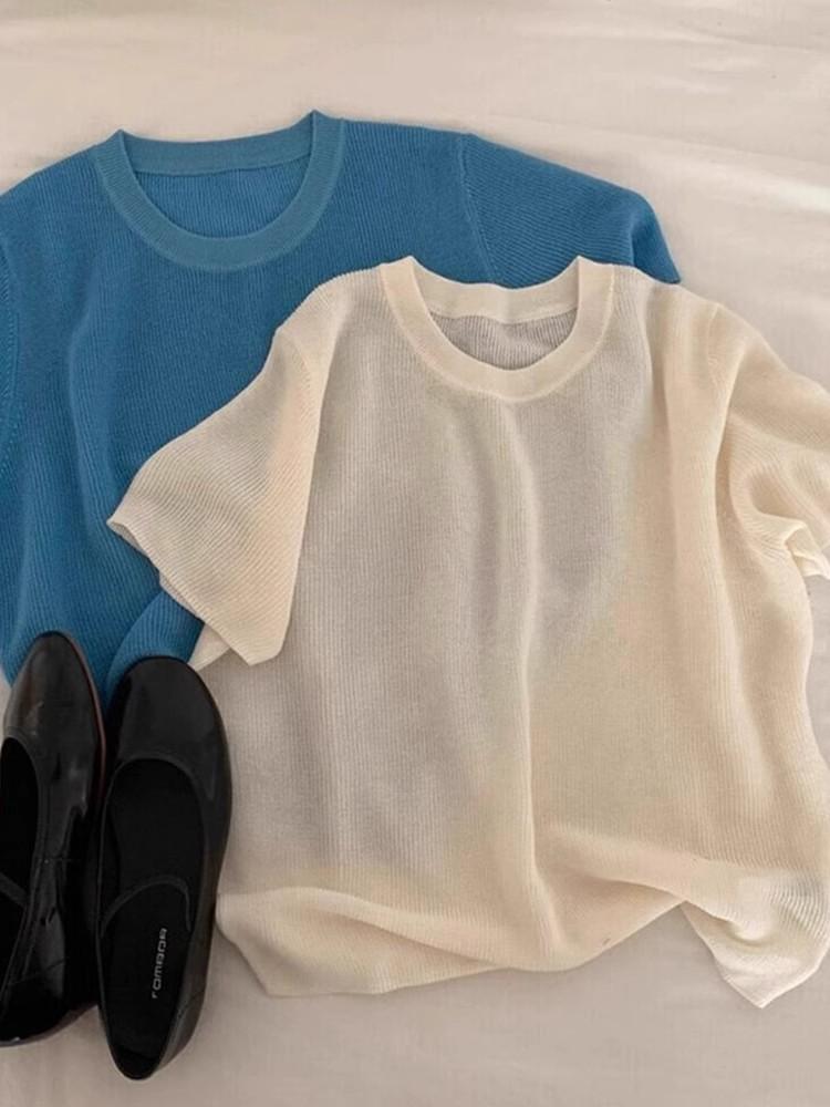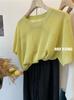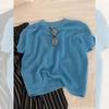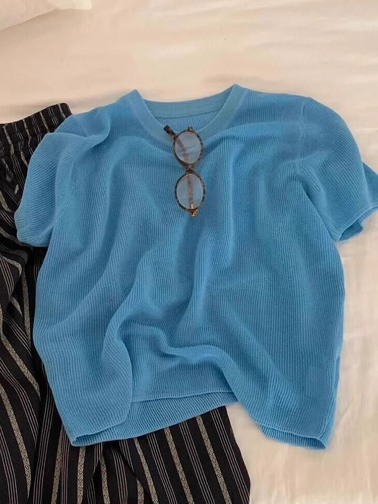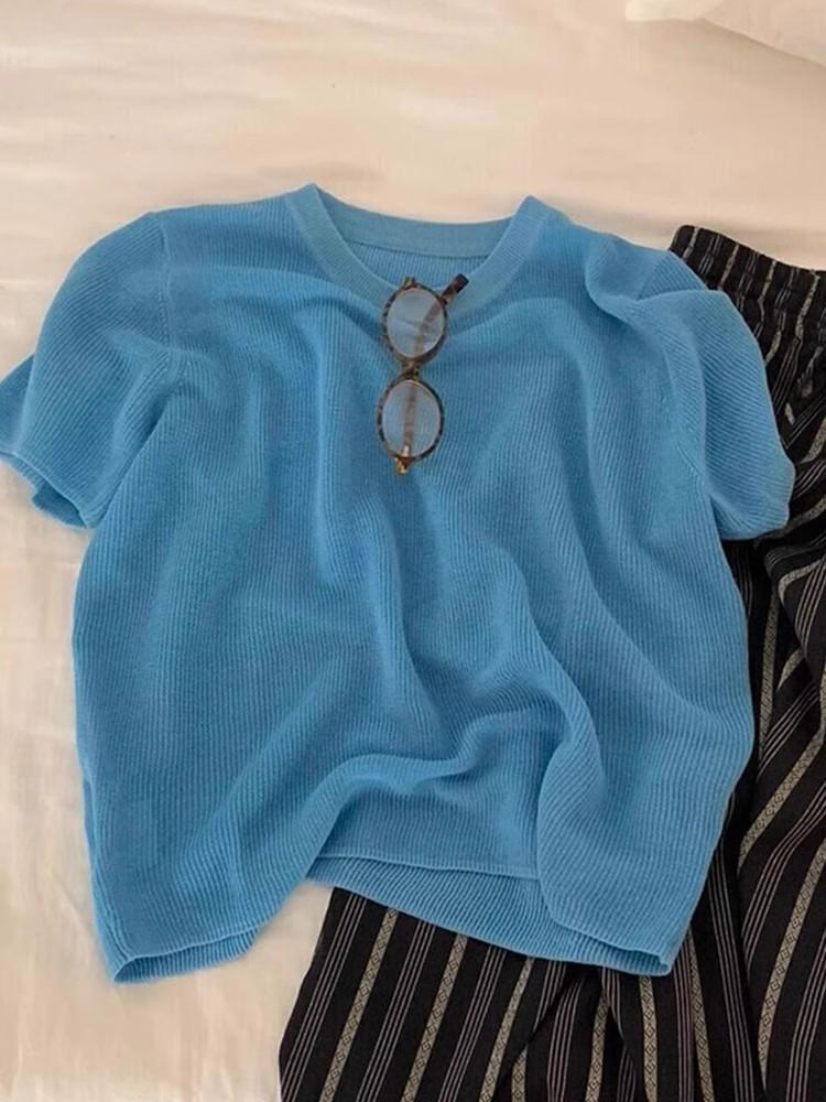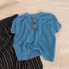 Ootd de verano Ropa Azul Klein Seda de Hielo Hermoso Top Pequeño 2025 Súper Fuego Reductor de Edad Manga Corta Hombro Camiseta de Mujer