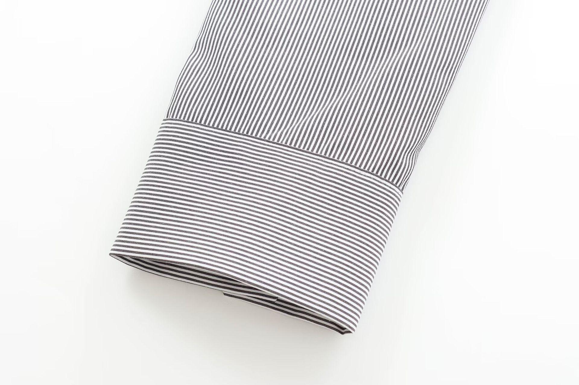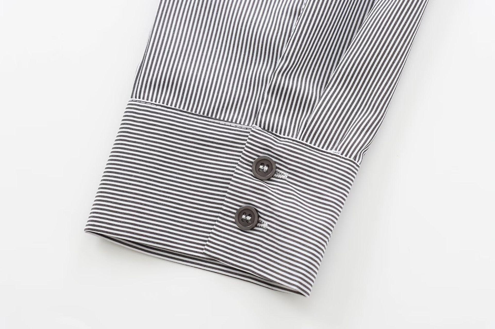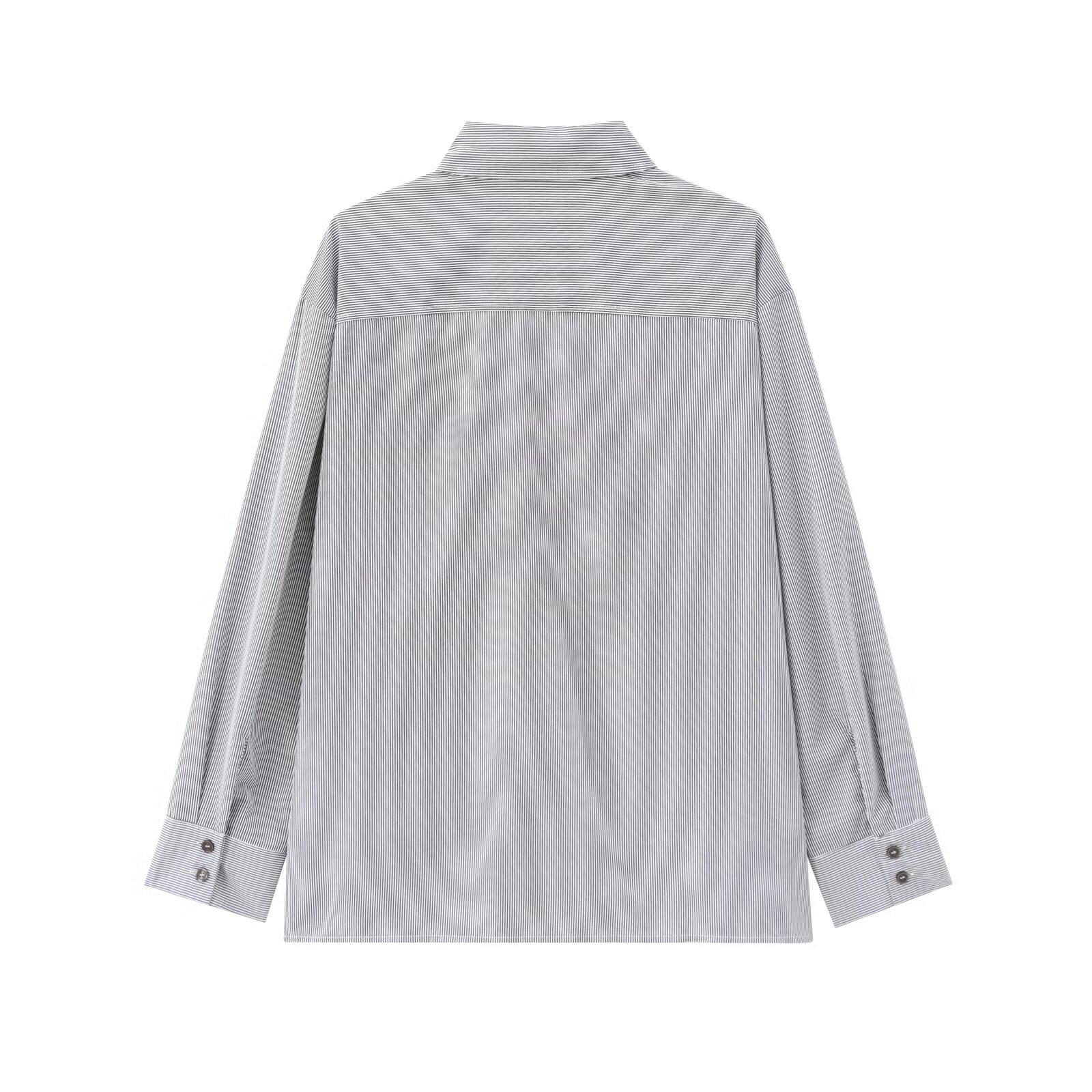Ropa de Mujer de Comercio Exterior Transfronterizo Amazon 2025 Primavera Nueva Moda Decoración Patchwork Cuello Vuelto Rayas Versátil Camisa de Manga Larga
