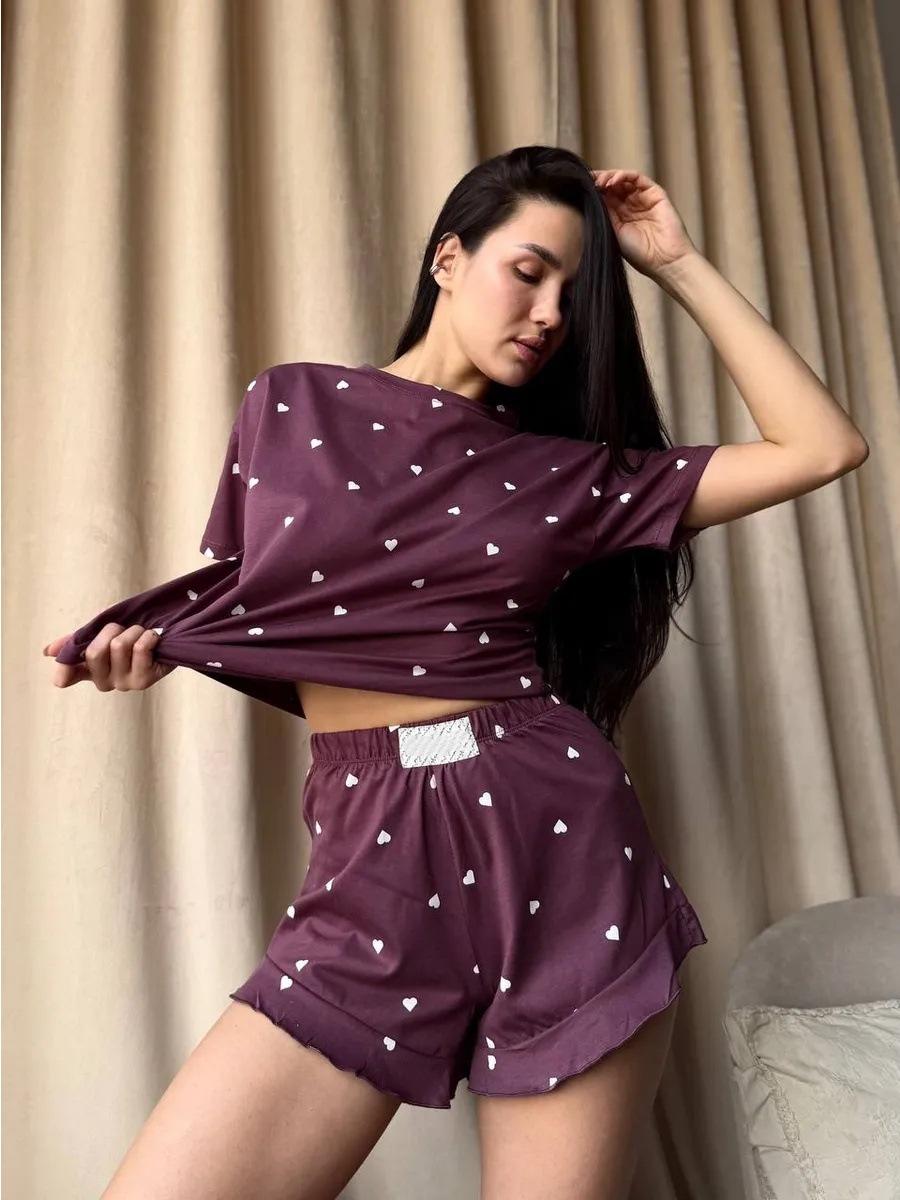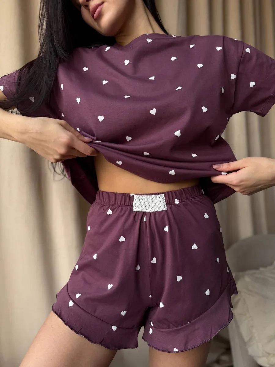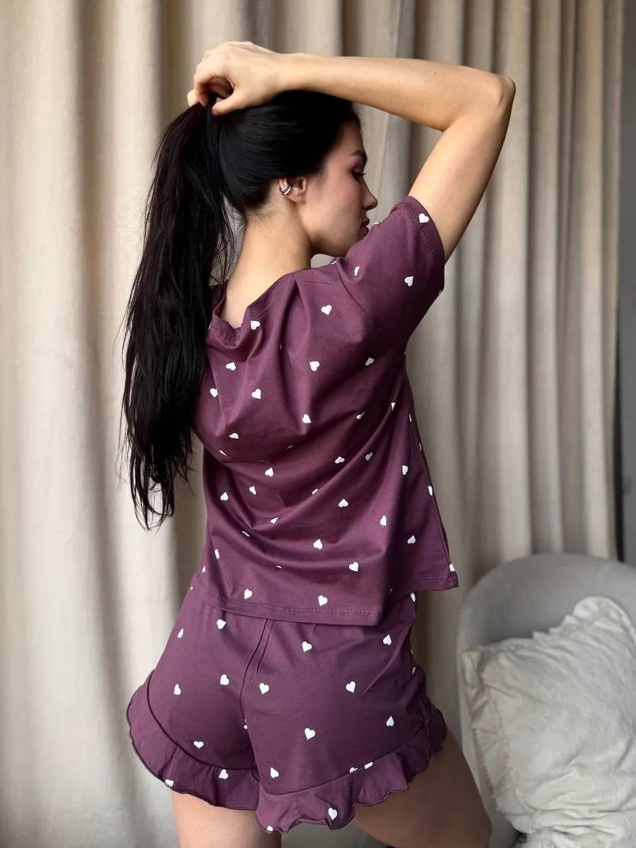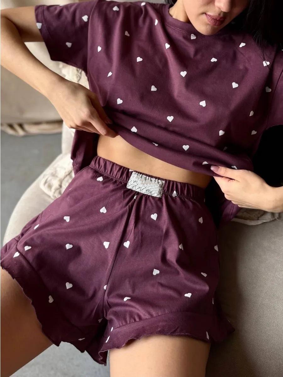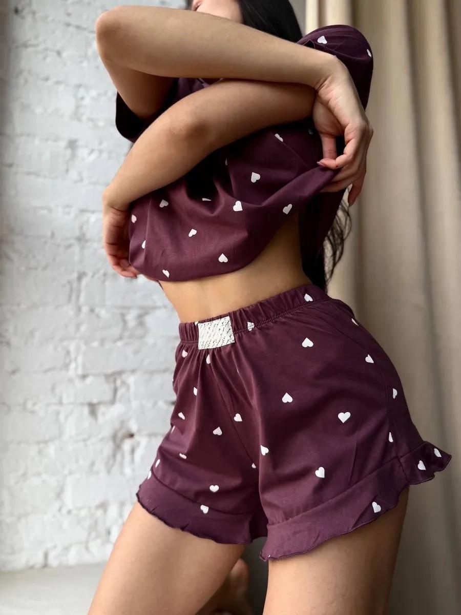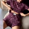 Moda de Verano Europea y Americana Transfronteriza Cómodo Casual Estampado Love Manga Corta Dobladillo con Volantes Shorts Ropa para el Hogar Conjunto de Dos Piezas Mujer