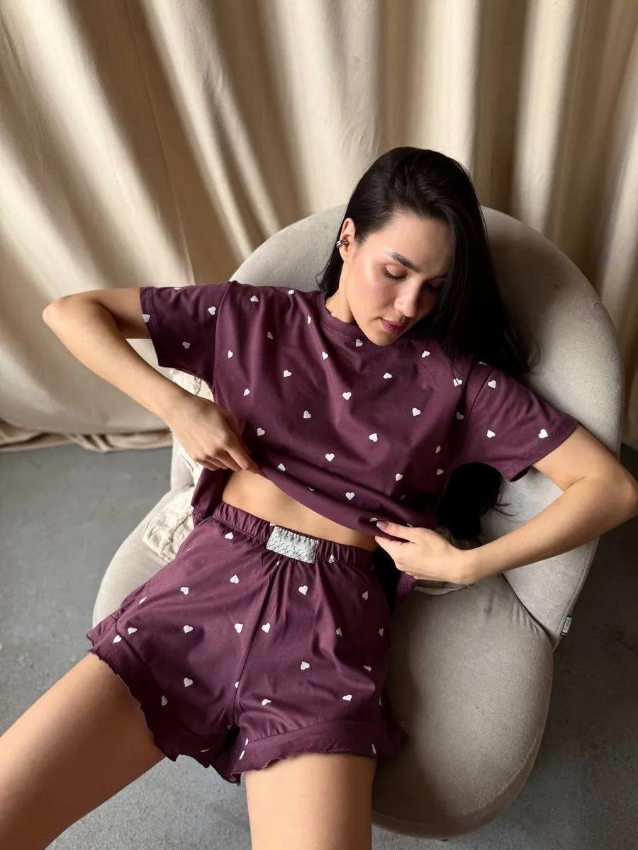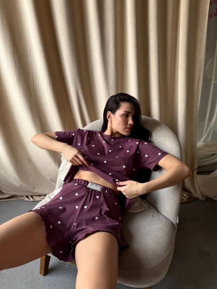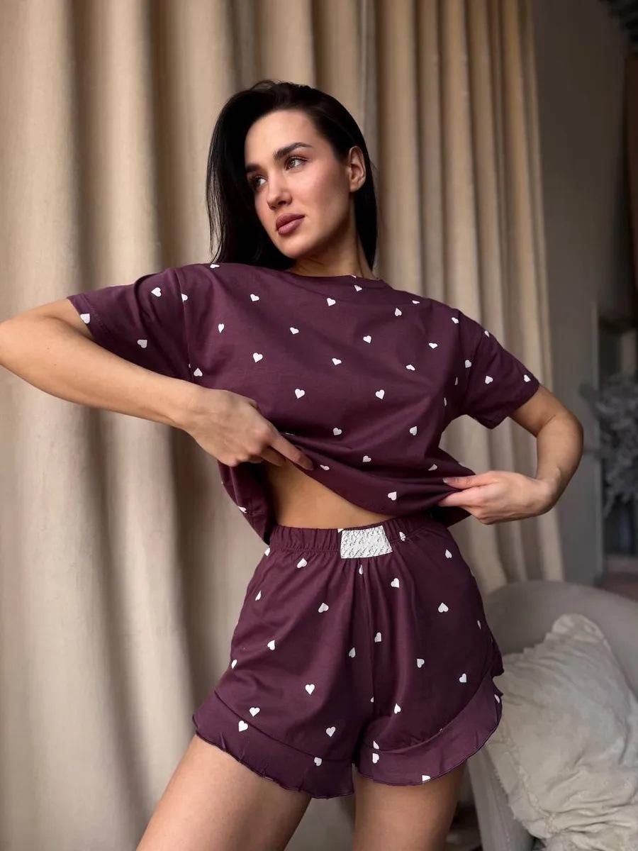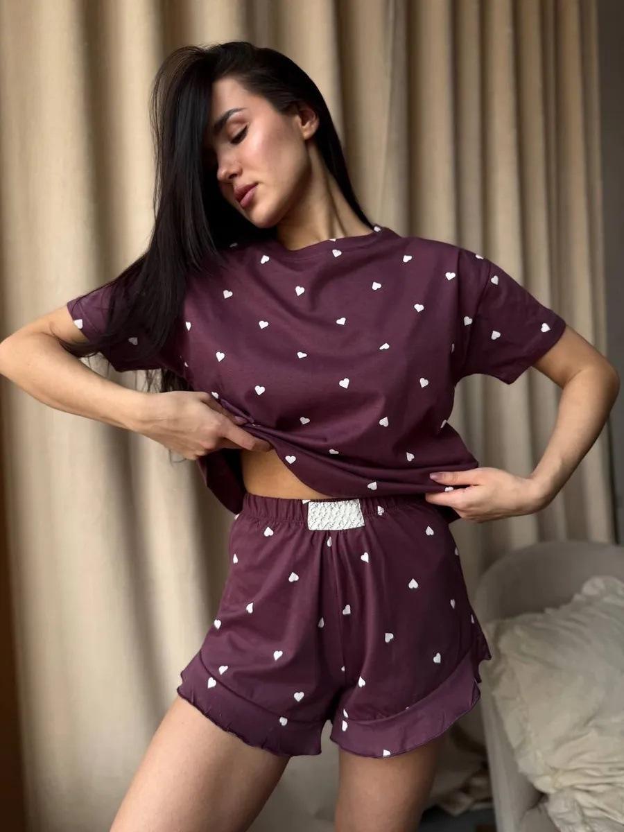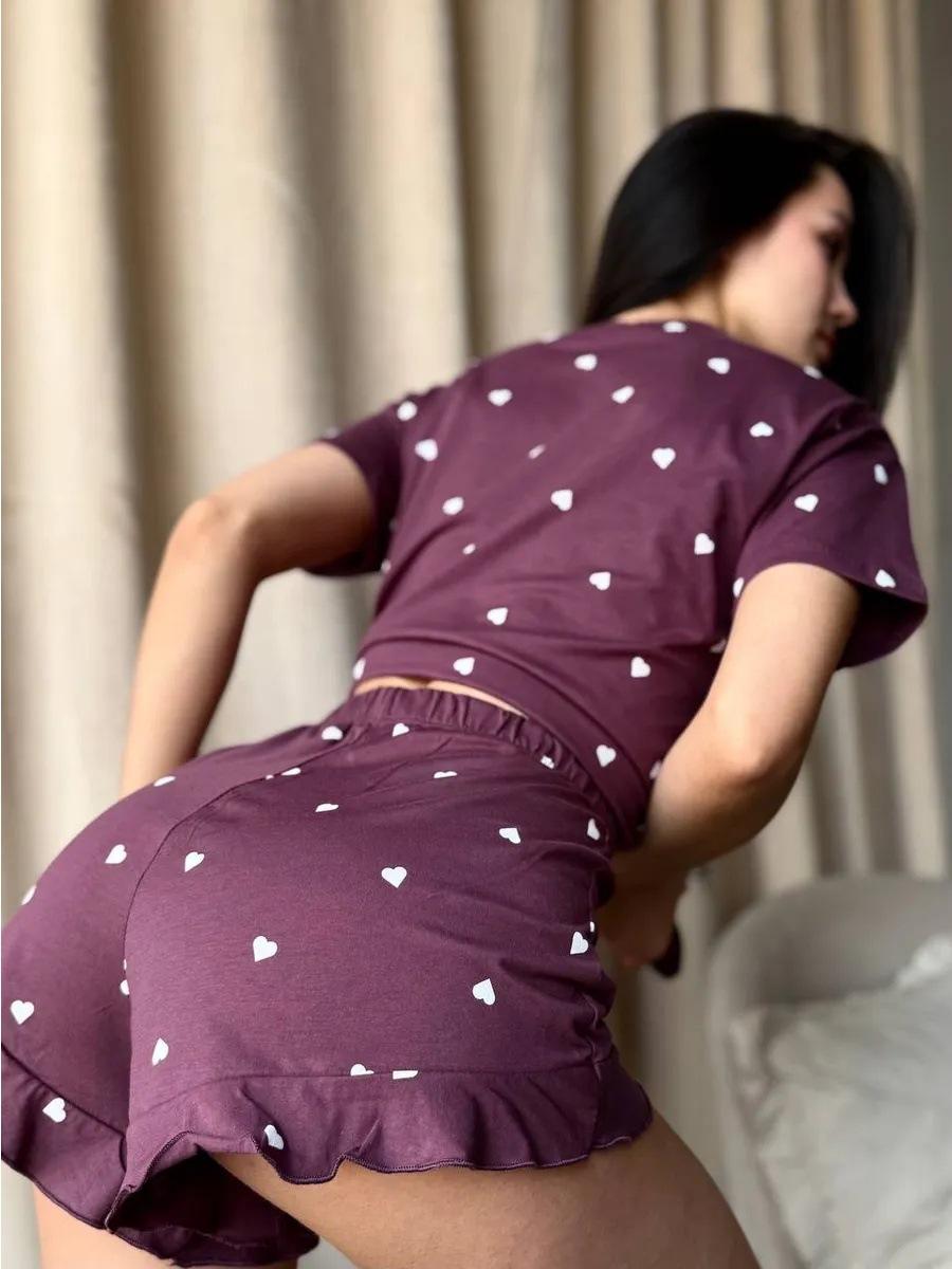 Moda de Verano Europea y Americana Transfronteriza Cómodo Casual Estampado Love Manga Corta Dobladillo con Volantes Shorts Ropa para el Hogar Conjunto de Dos Piezas Mujer