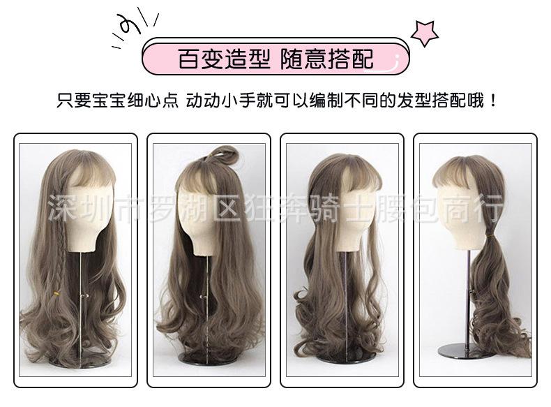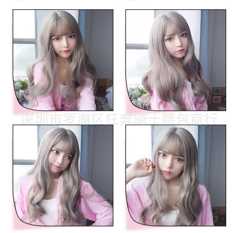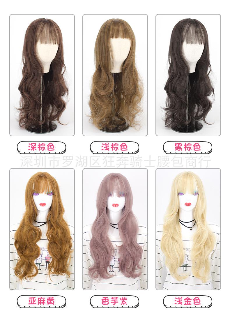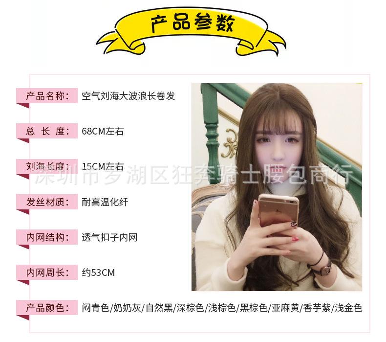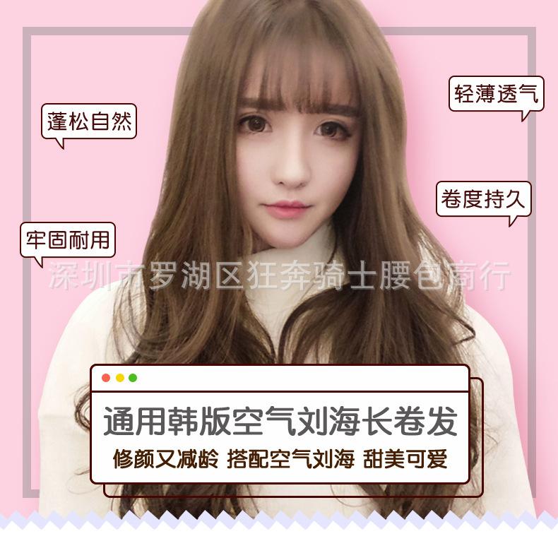 Peluca de celebridad de internet femenina cabello largo rizado onda grande flequillo de aire fino peinado peluca realista cobertura completa de cabeza pelucas al por mayor