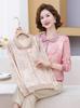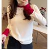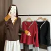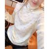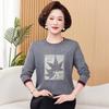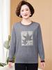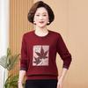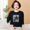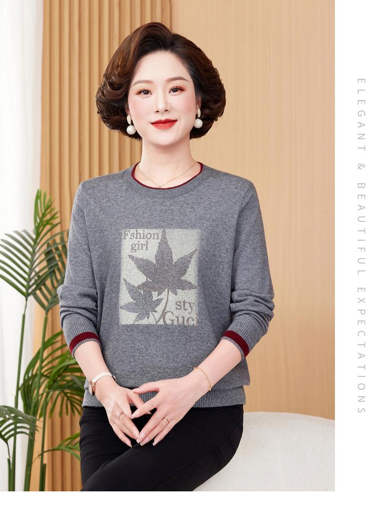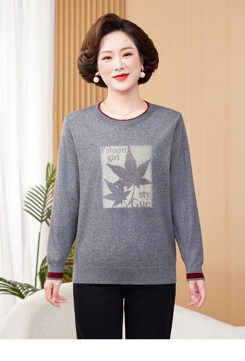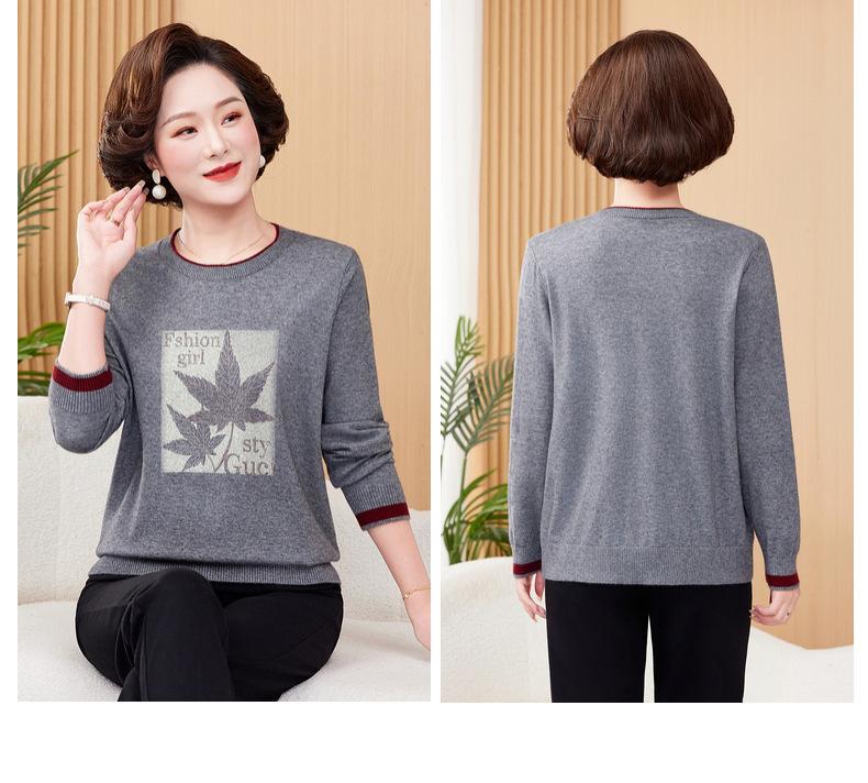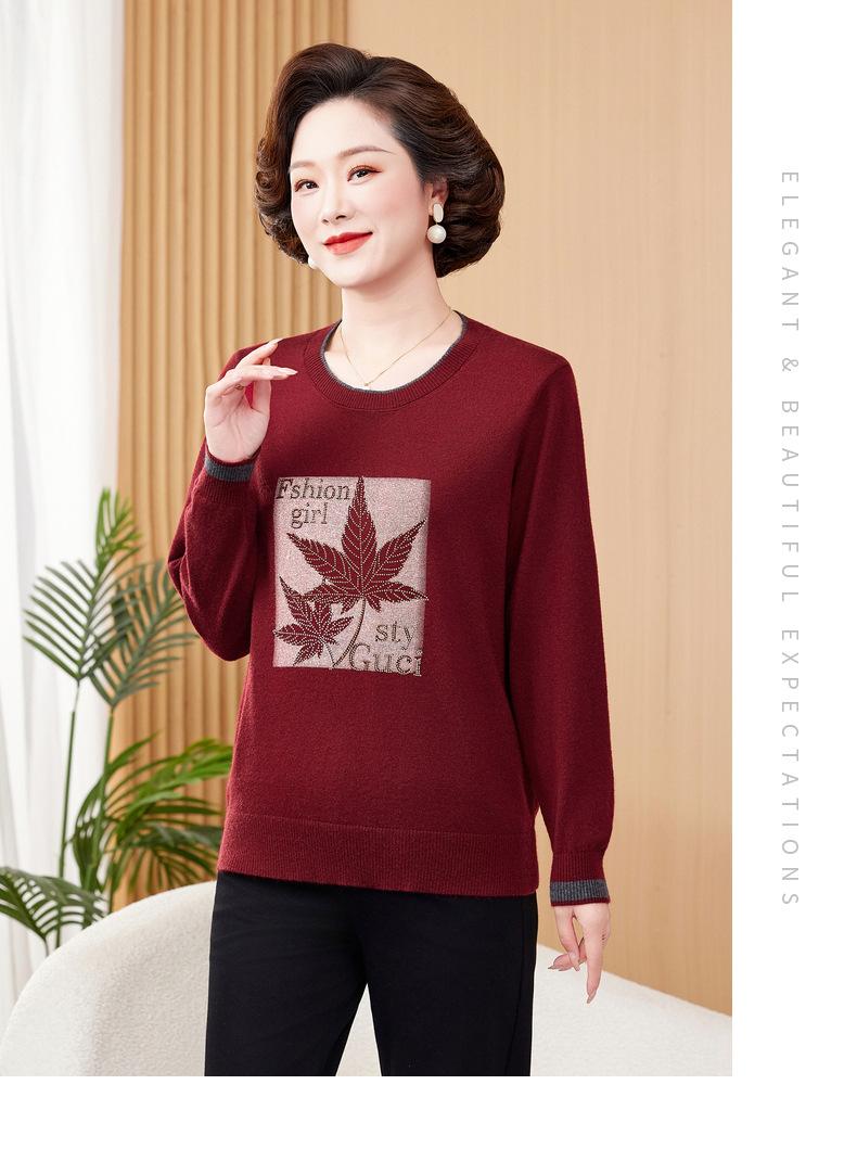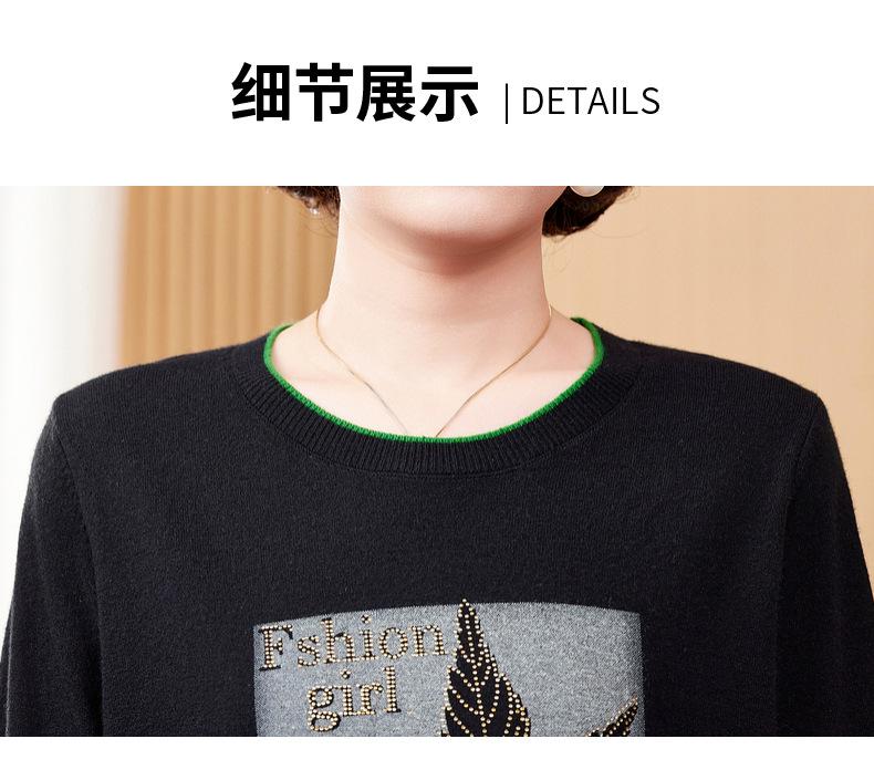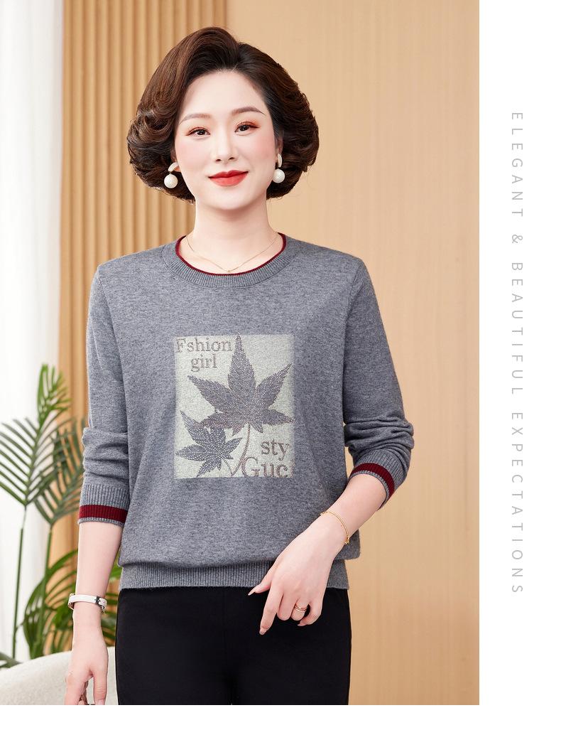 Otoño Nueva Moda para Madres Estampado de Hojas Camiseta de Trabajo Pesado con Hot Drilling Suelta Versátil Cuello Redondo Suéter de Bloque de Color para Mujer