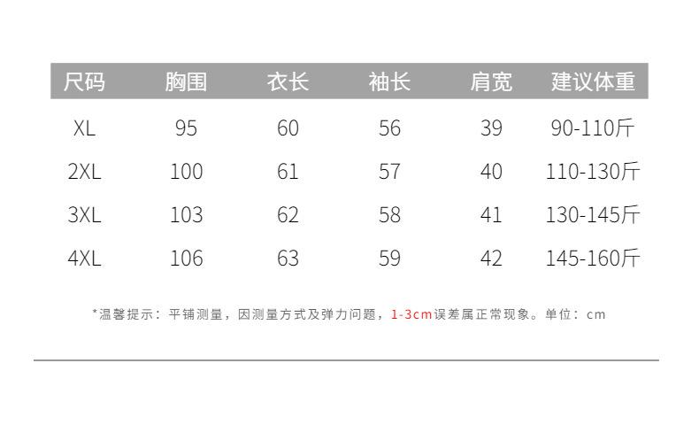 XL [recommended 90-110 pounds], 2XL [recommended 110-125 catties], 3XL [recommended 125-145 catties], 4XL【suggested 145-165 jin】