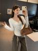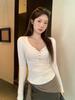 Camiseta blanca de manga larga con cuello en V y diseño de botones rectos en los hombros para mujer, nueva para otoño 2025, top sencillo, casual y ajustado