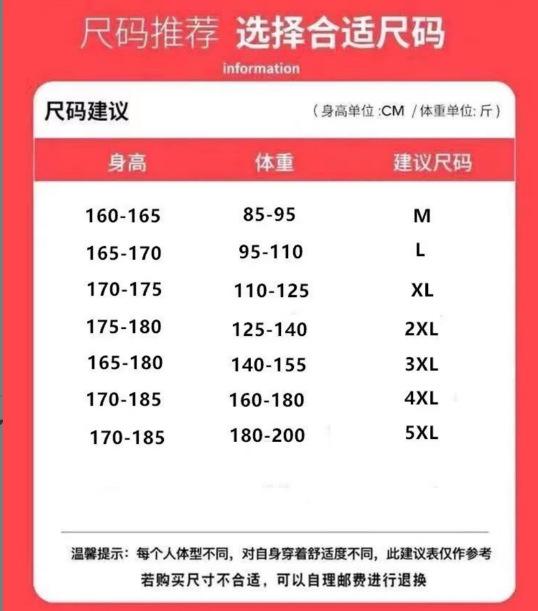 M, L, XL, 2XL, 3XL, 4XL, 5XL