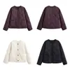 Comercio exterior transfronterizo mayoreo 2024 otoño e invierno nuevo abrigo corto acolchado de algodón para mujer con estampado retro americano cuello alto