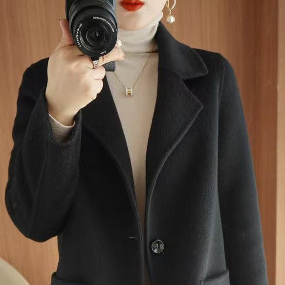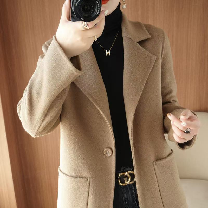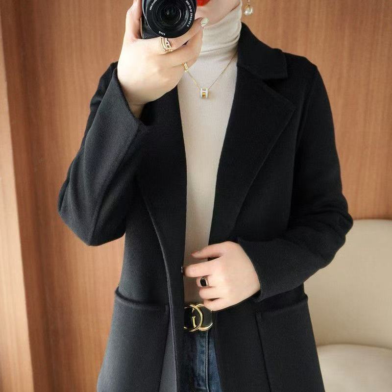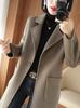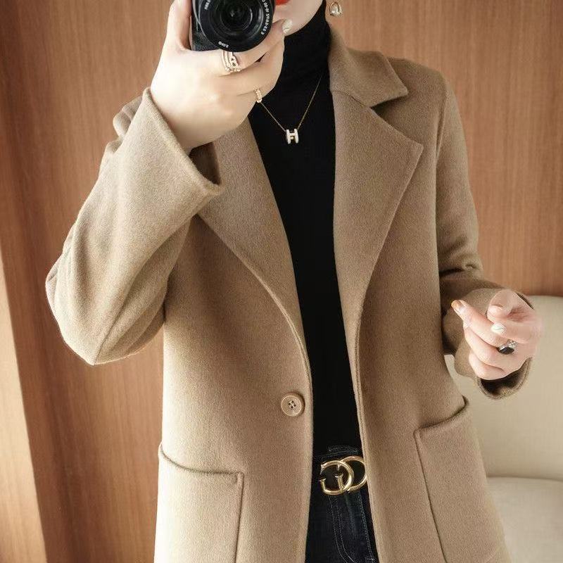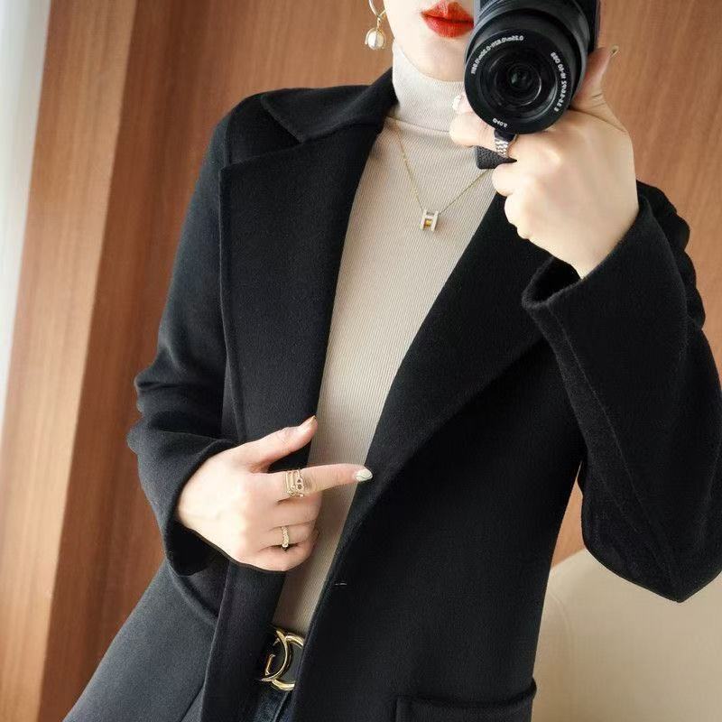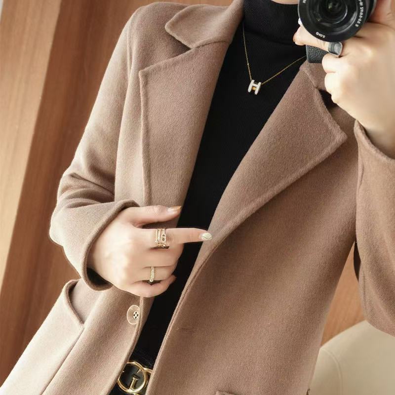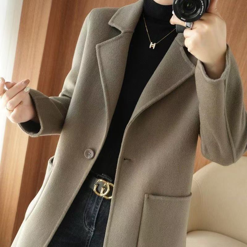 Abrigo de lana de largo medio y color sólido para mujer primavera 2025 nuevo pequeño entallado temperamento de alta gama versátil