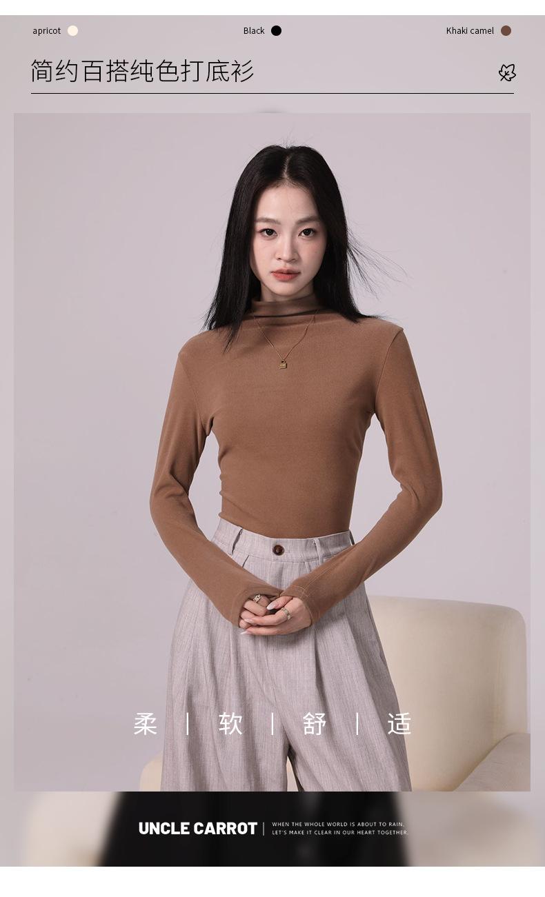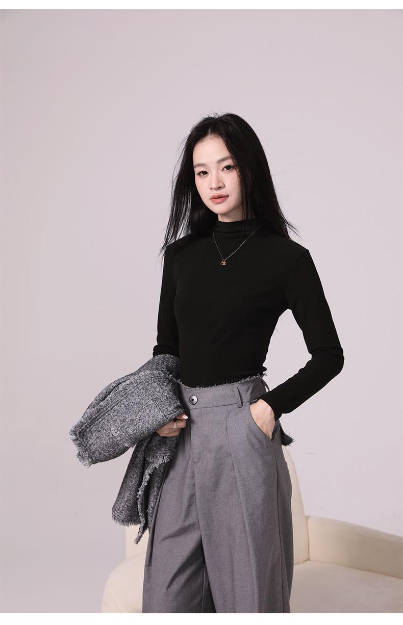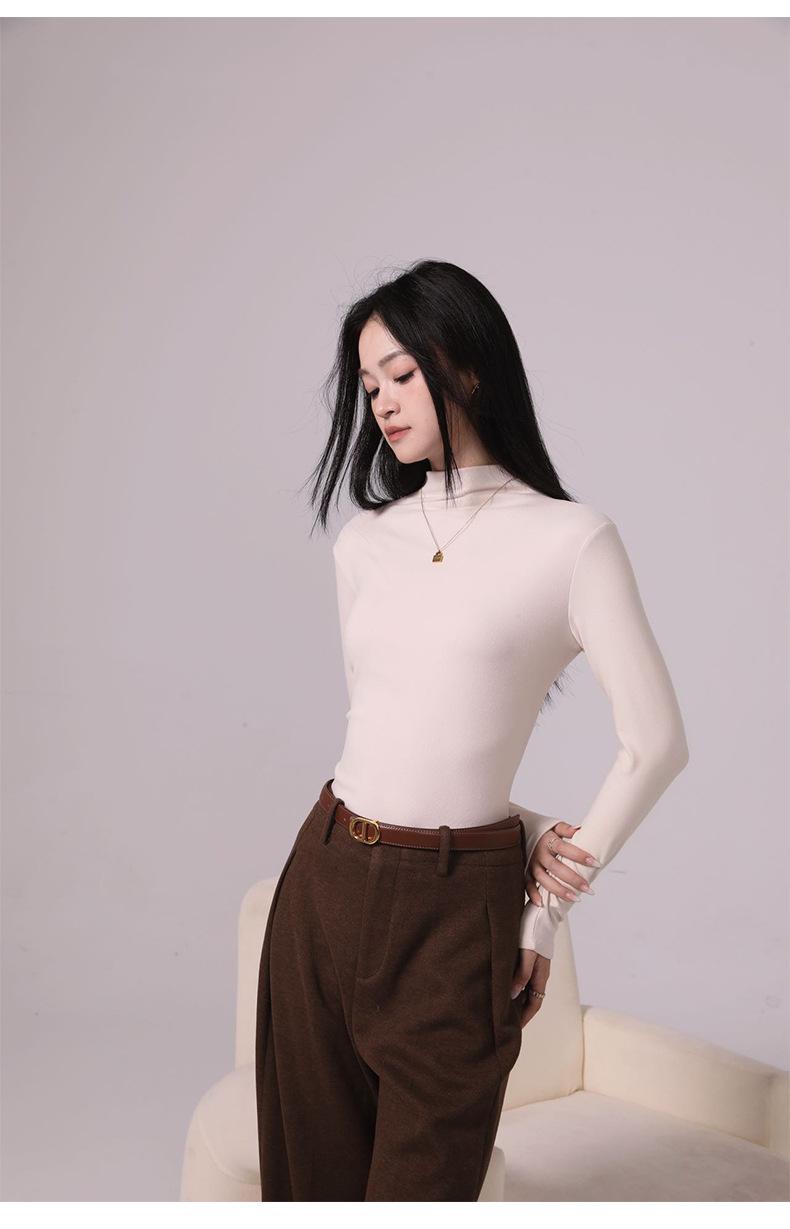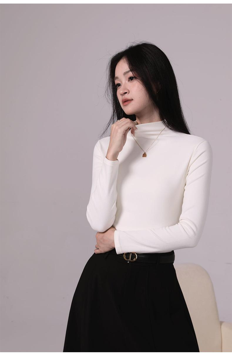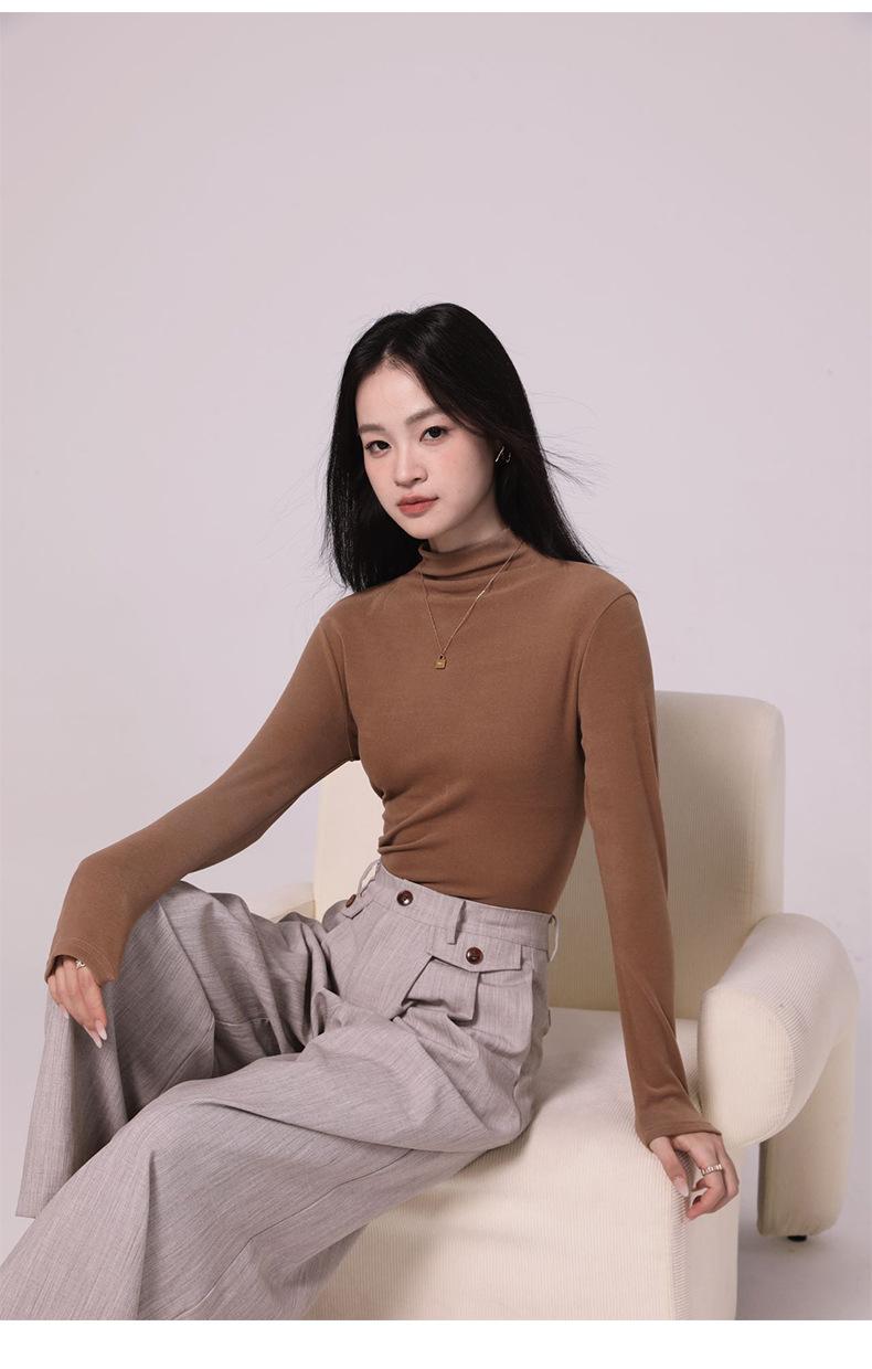 Camiseta básica de cuello medio alto para mujer Ropa interior Primavera Otoño Invierno 2025 Nueva Moda de Alta Gama Manga Larga Ajustada Top de Punto