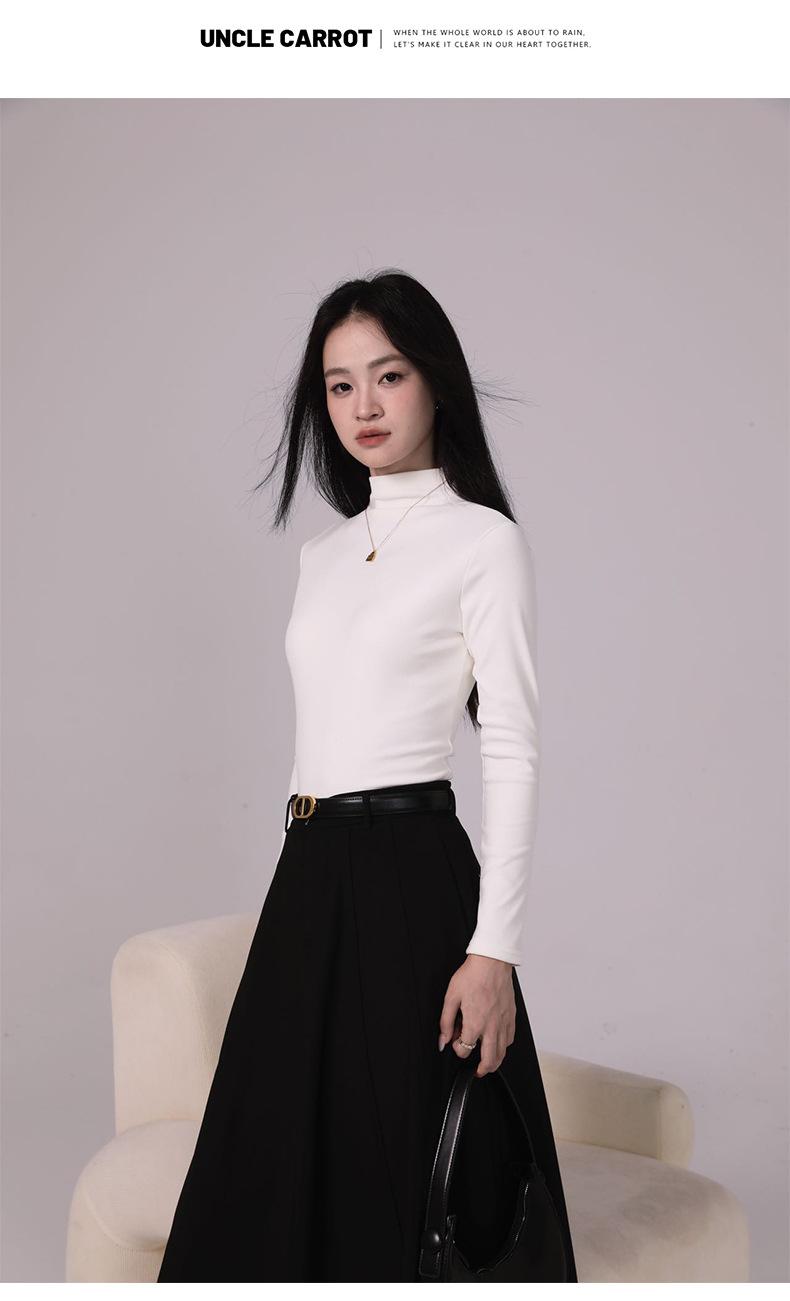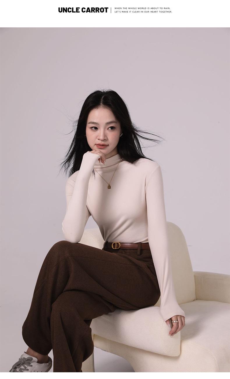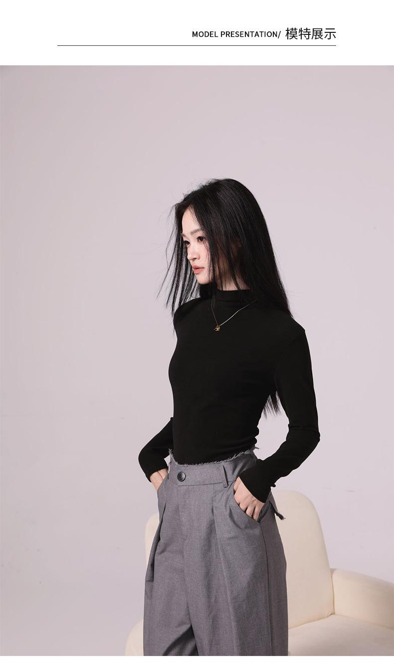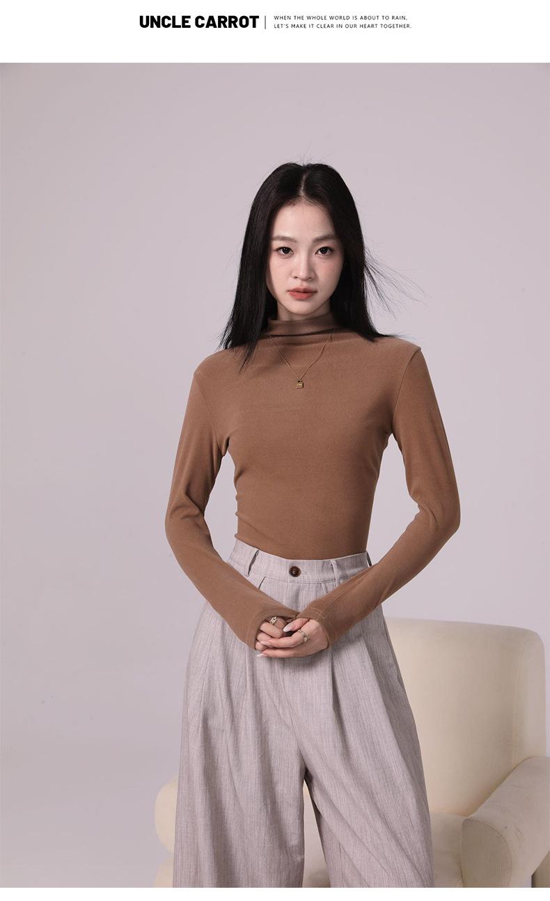 Camiseta básica de cuello medio alto para mujer Ropa interior Primavera Otoño Invierno 2025 Nueva Moda de Alta Gama Manga Larga Ajustada Top de Punto