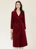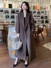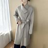 Abrigo de Lana Doble Faz para Mujer con Solapa Abrigo de Lana Otoño e Invierno Nueva Moda Temperamento Cárdigan de Largo Medio con Cinturón