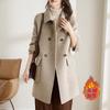 Abrigo de tweed de algodón plus para mujer 2025 otoño e invierno nuevo grueso estilo coreano corte ajustado adelgazante largo medio abrigo de lana