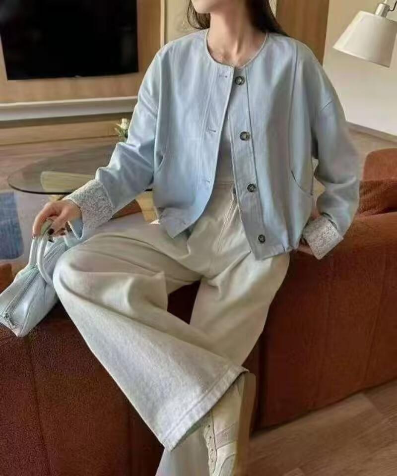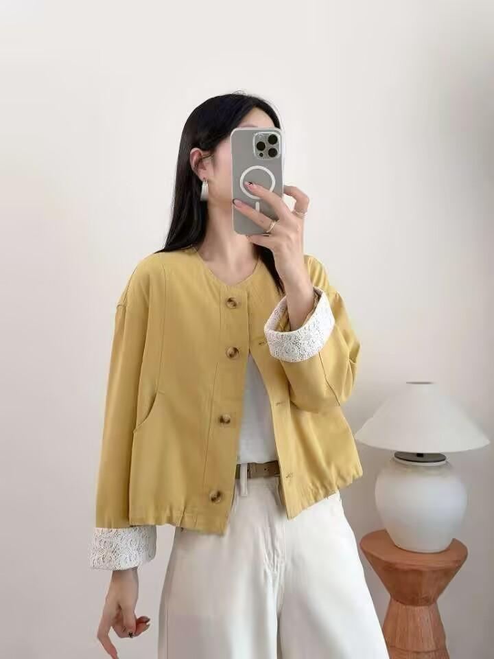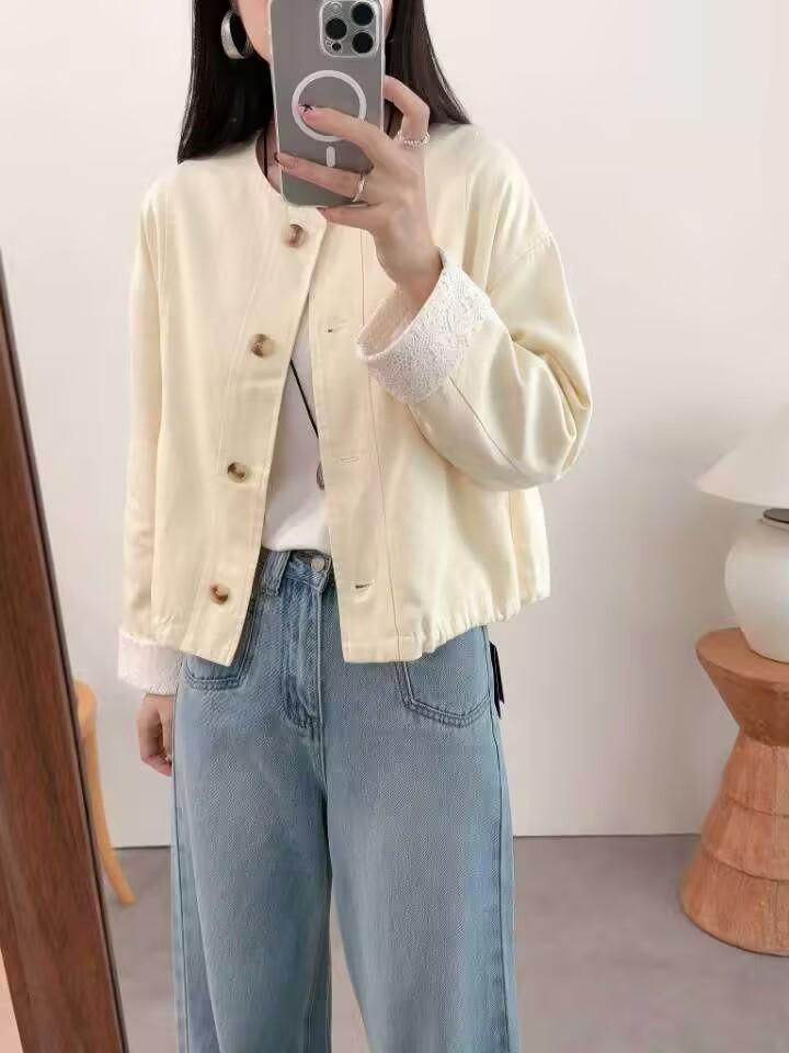 Sentido de Diseño de Estación Europea Puño Encaje Empalmado Uniforme de Béisbol Chaqueta Corta Mujer 2025 Primavera y Otoño Nuevo Top Casual Tendencia