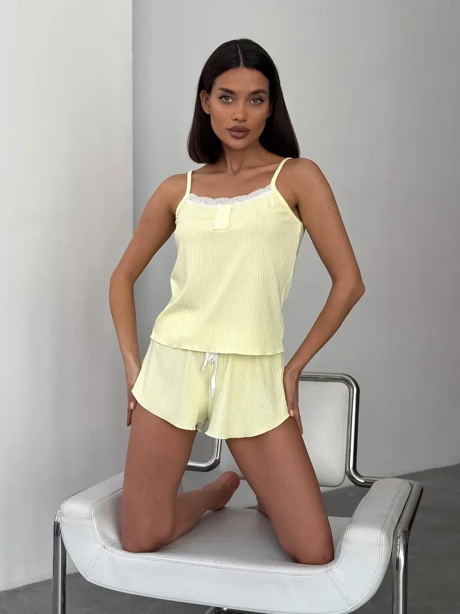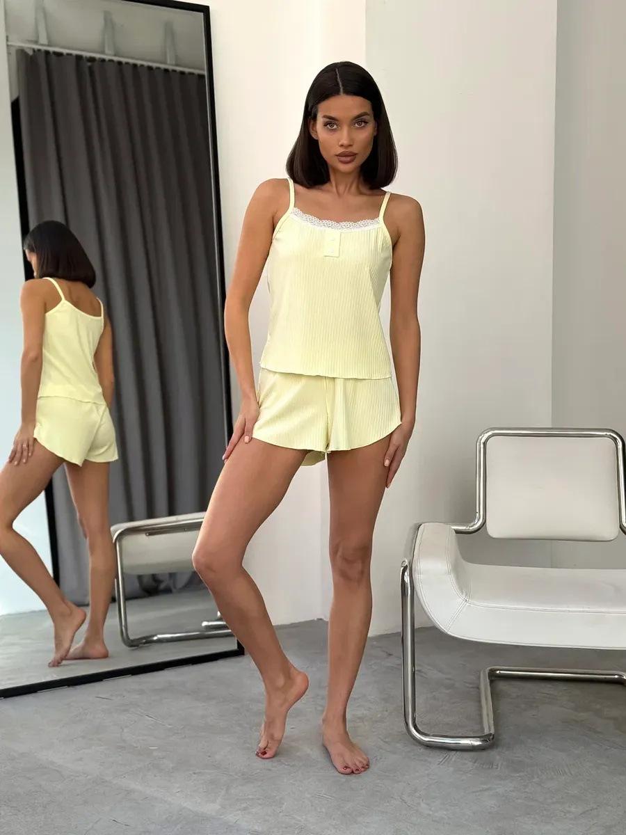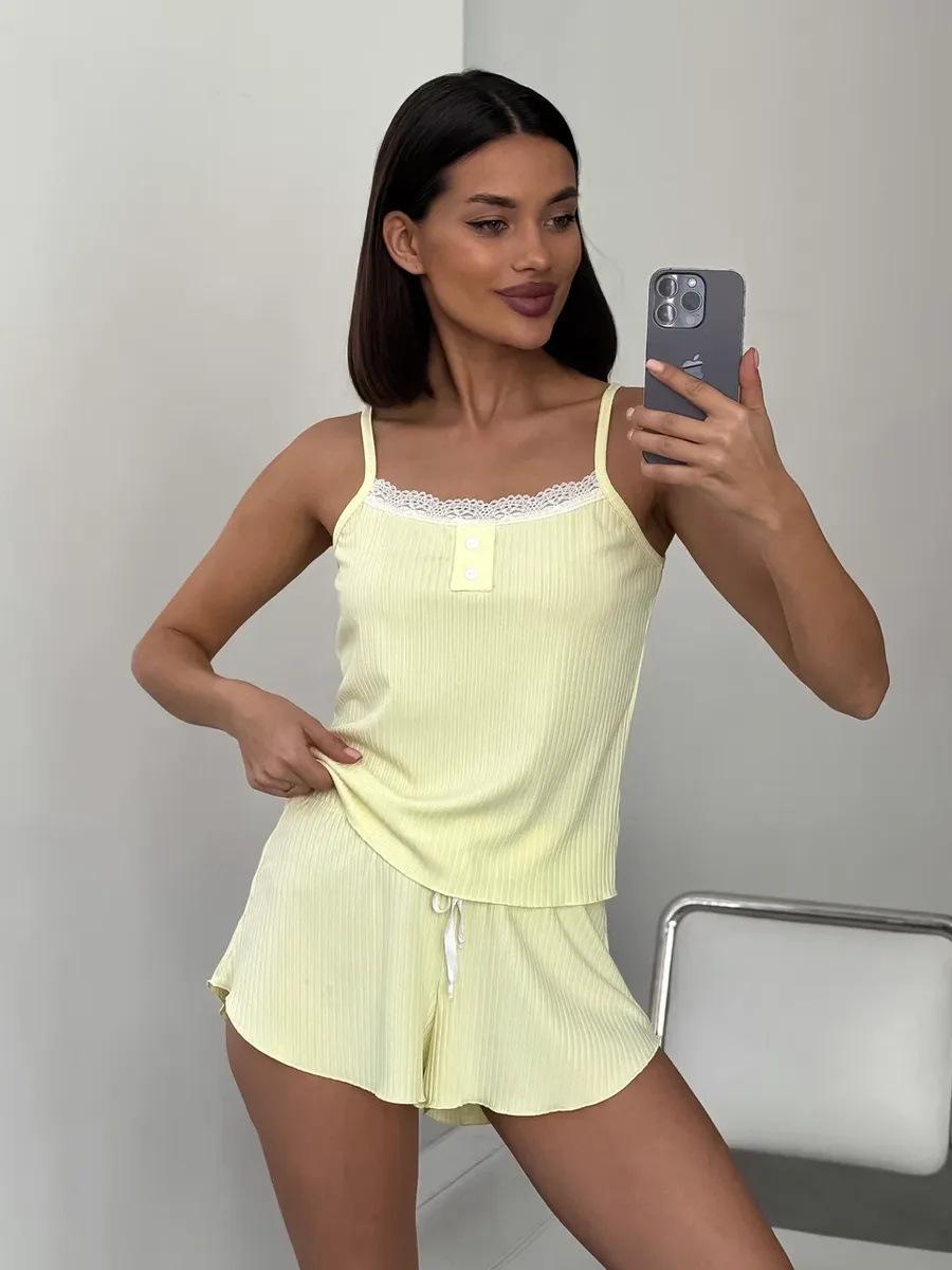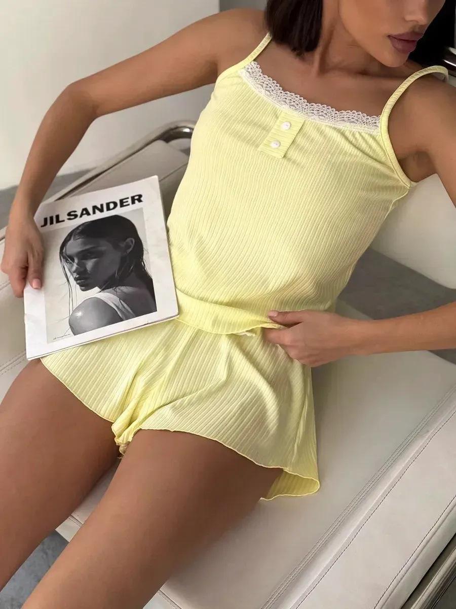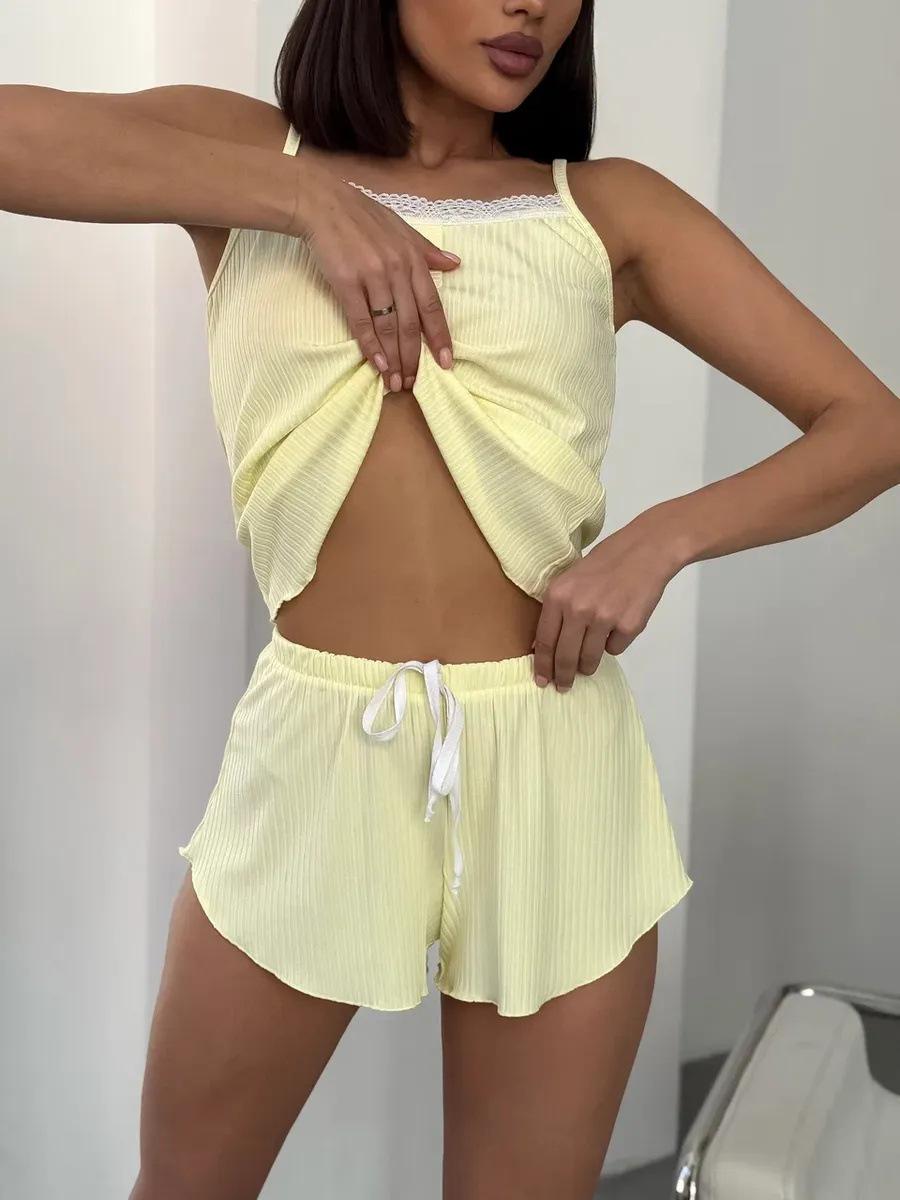 Pijama Sexy de Encaje con Tirantes Finos para Mujer Nuevo de Amazon, Estilo Europeo y Americano, Short de Dos Piezas, Ropa de Casa para Mujer