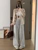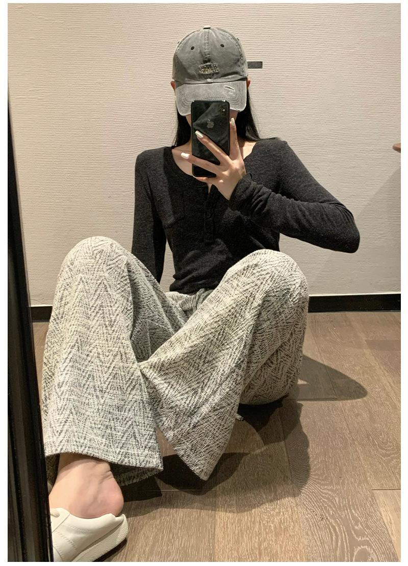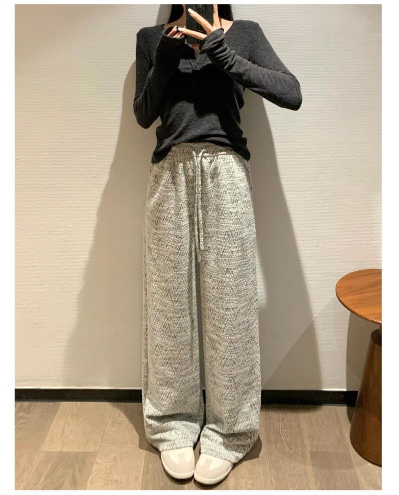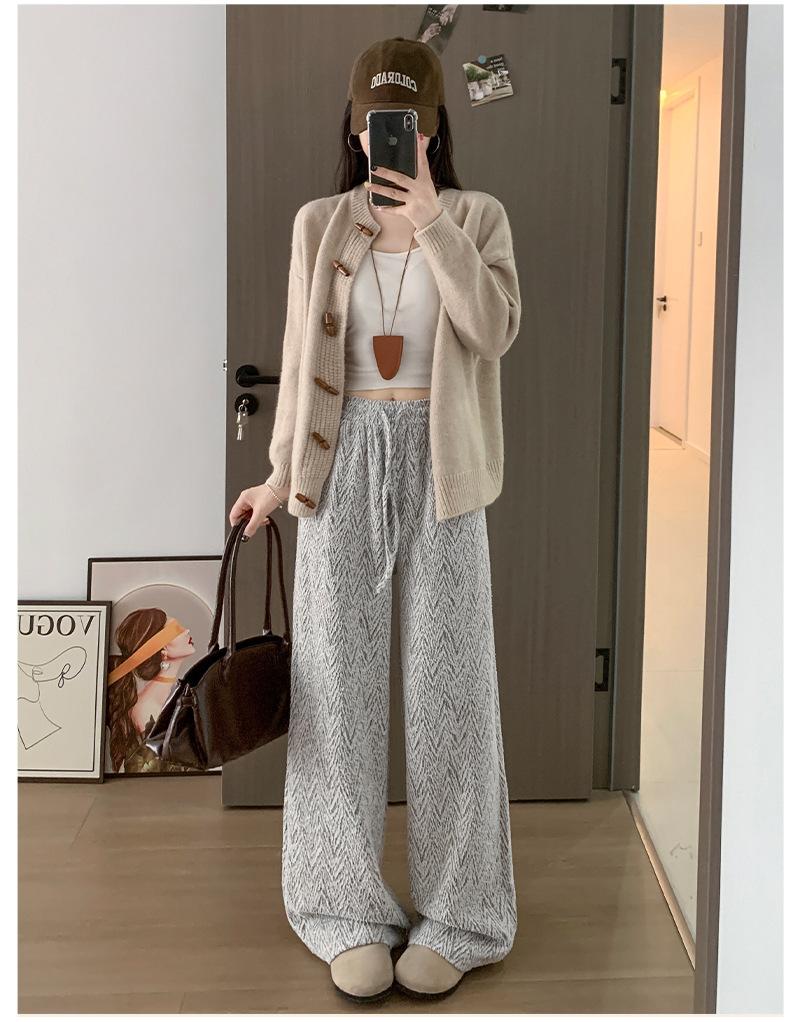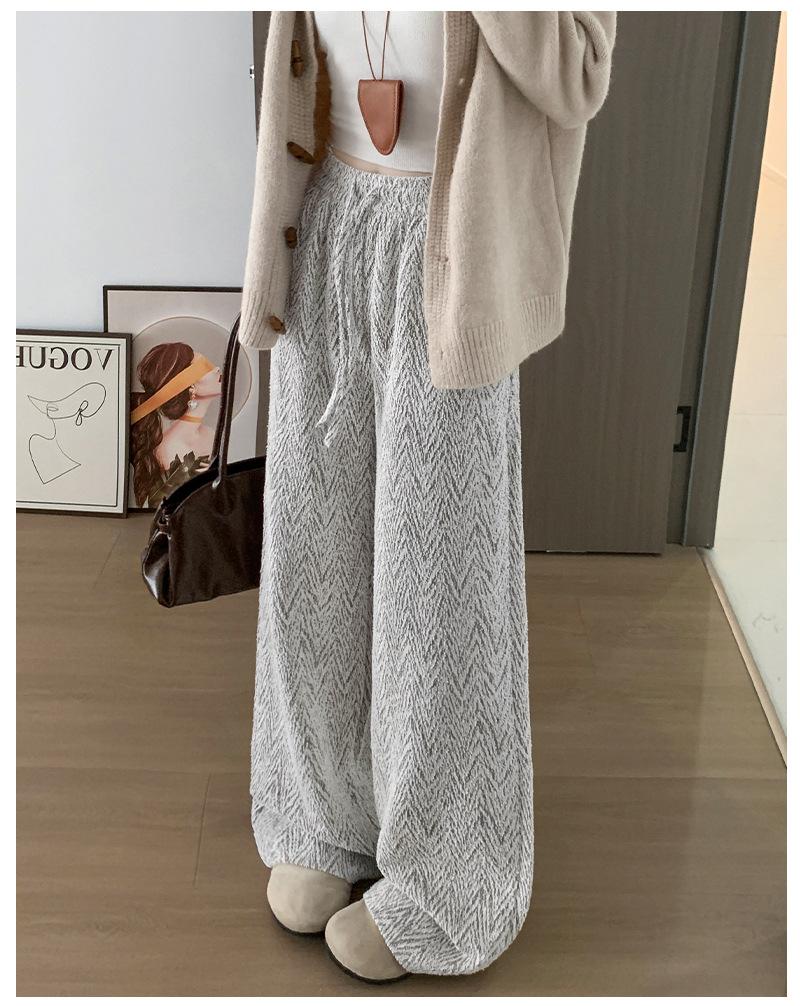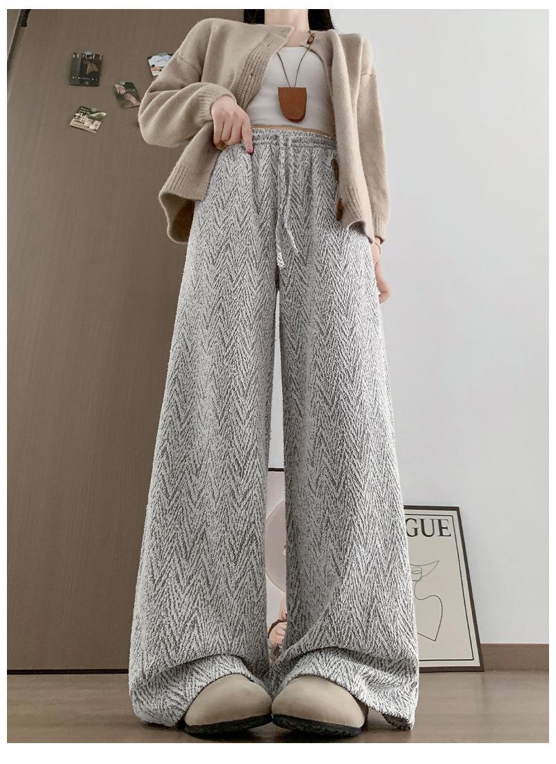 Pantalones de pata ancha de espiga para mujer estilo primavera y otoño de cintura alta adelgazantes de pierna recta hasta el suelo estilo holgazán estilo pequeña fragancia pantalones casuales