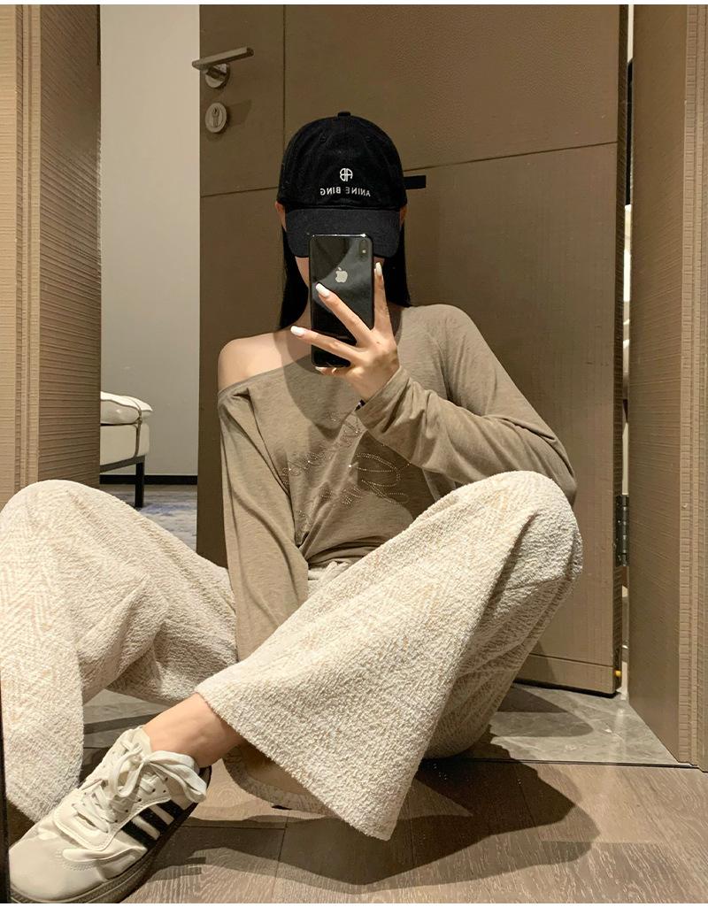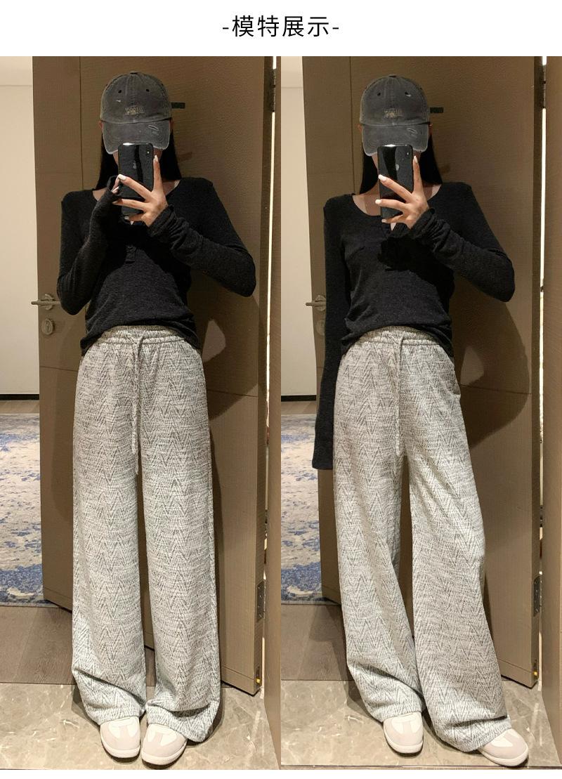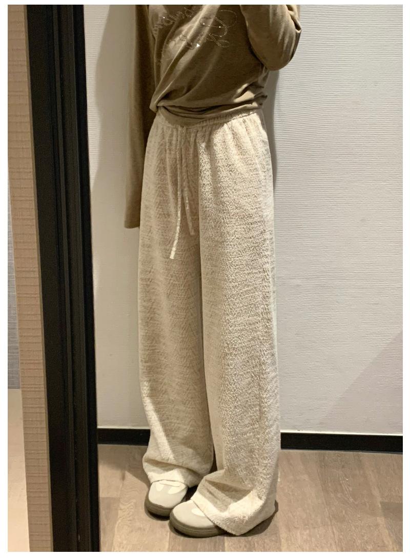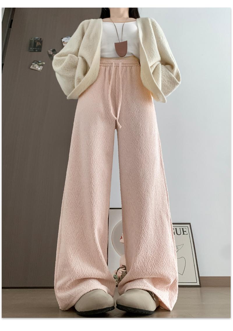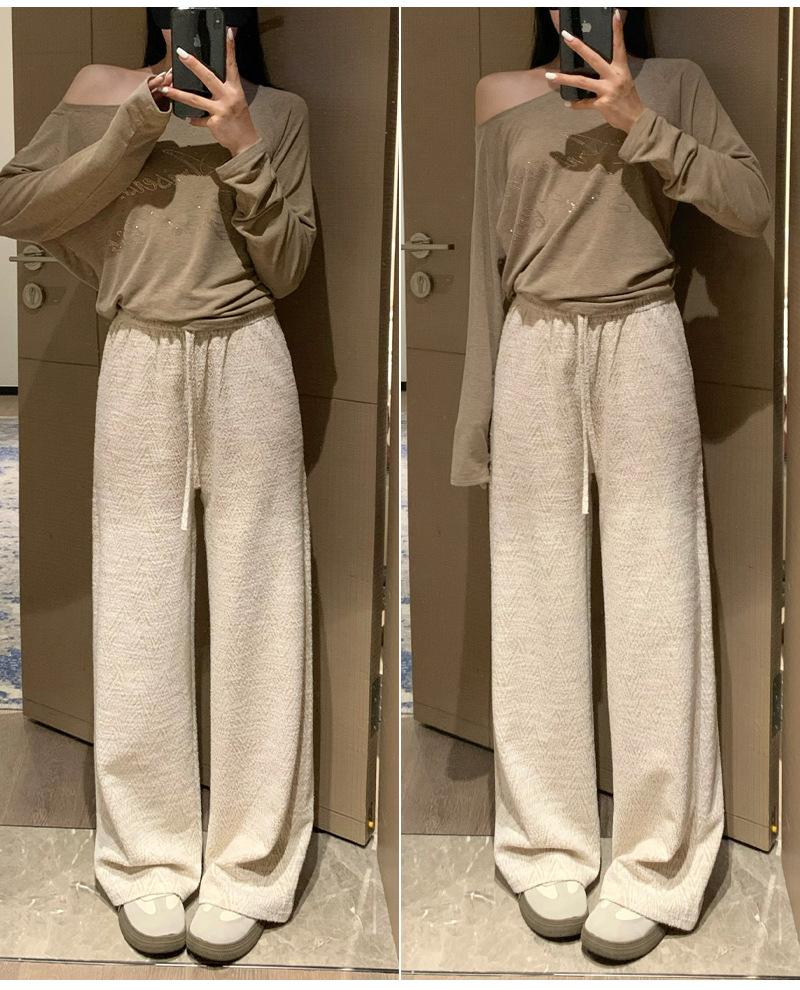Pantalones de pata ancha de espiga para mujer estilo primavera y otoño de cintura alta adelgazantes de pierna recta hasta el suelo estilo holgazán estilo pequeña fragancia pantalones casuales