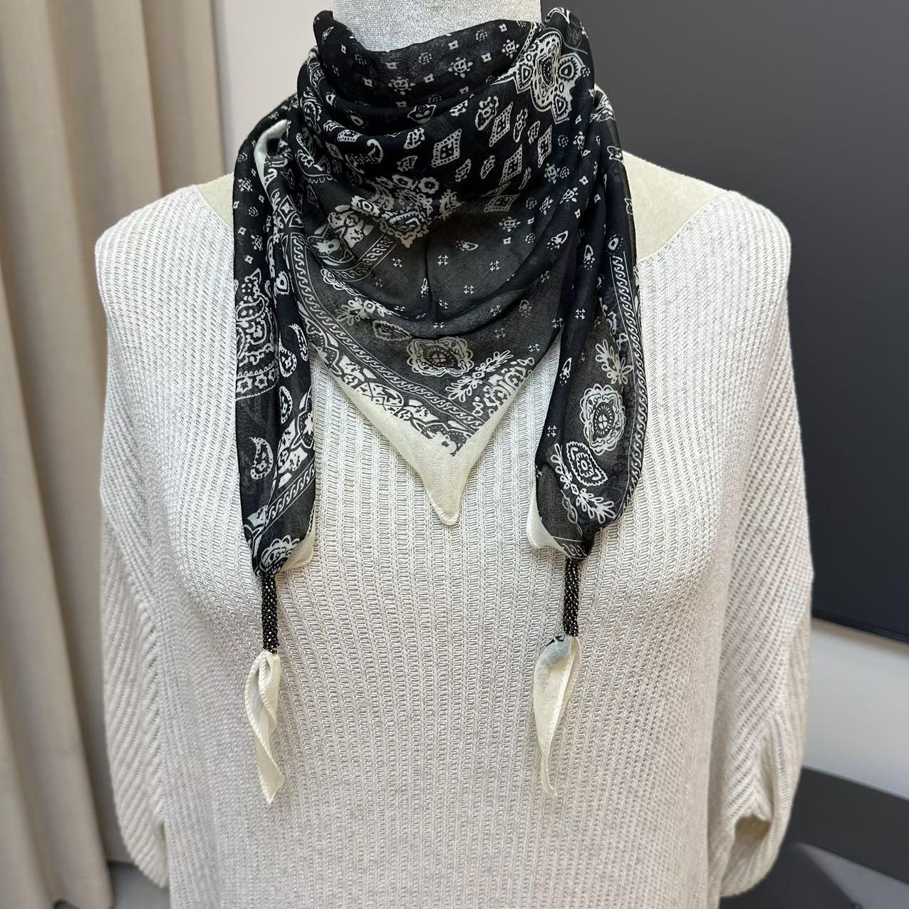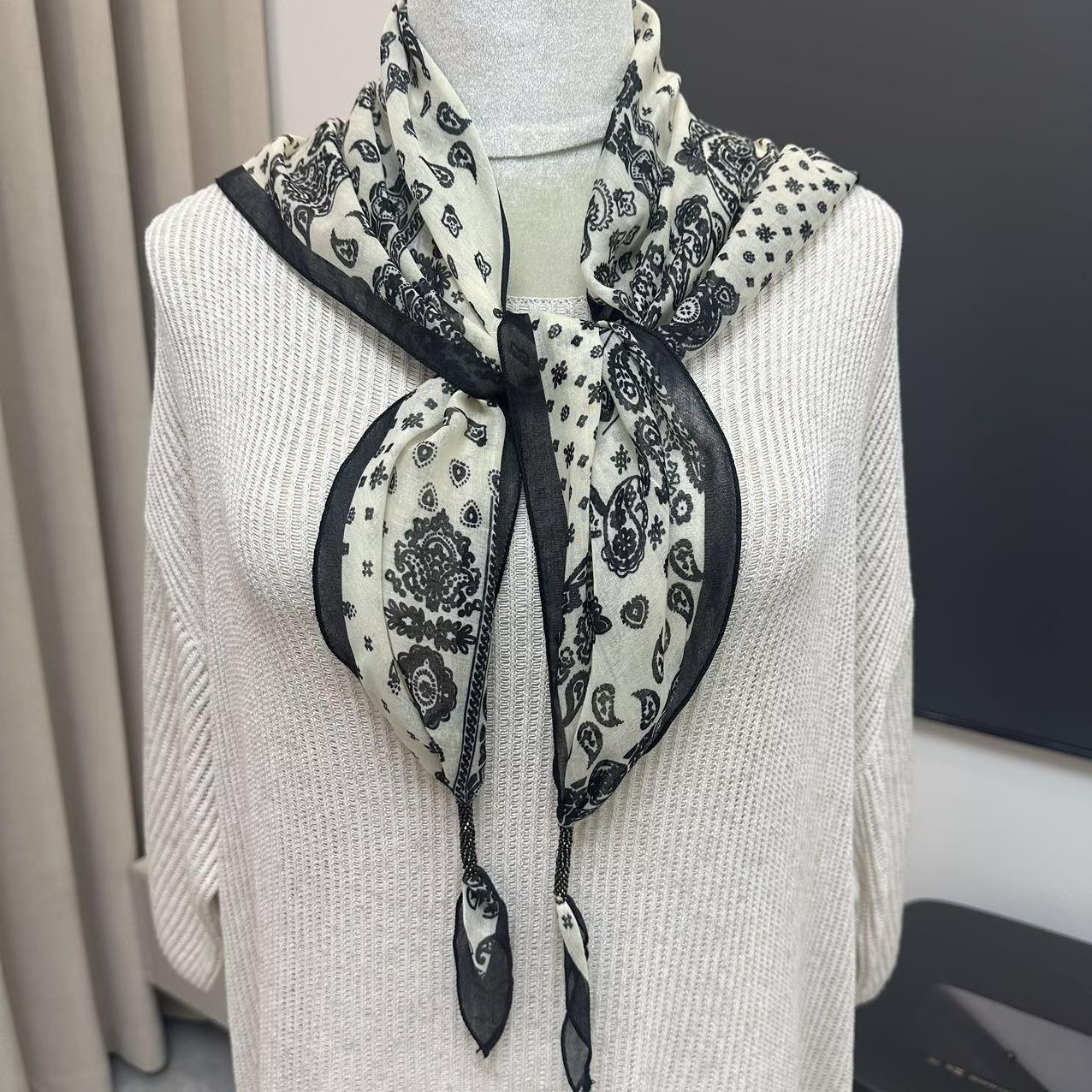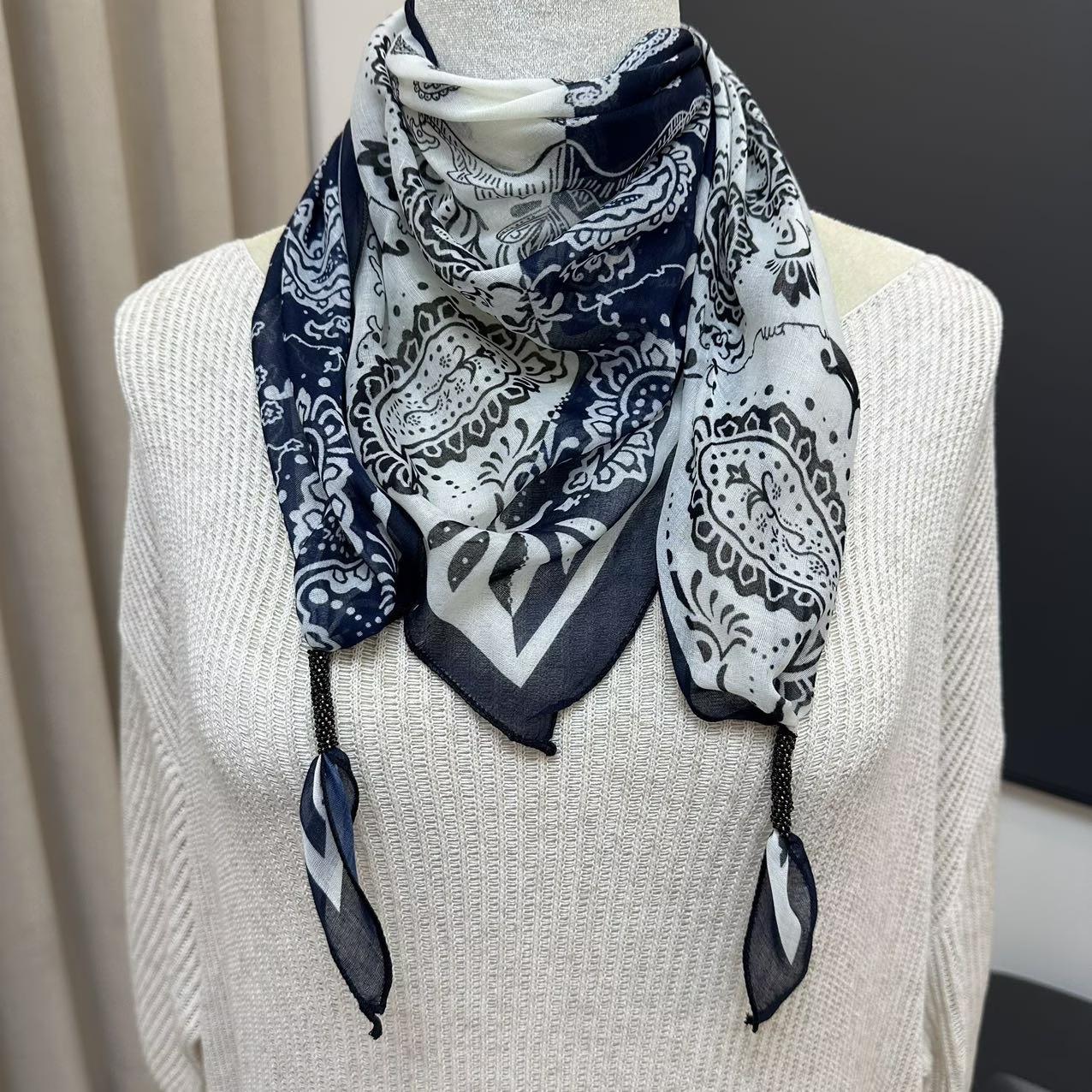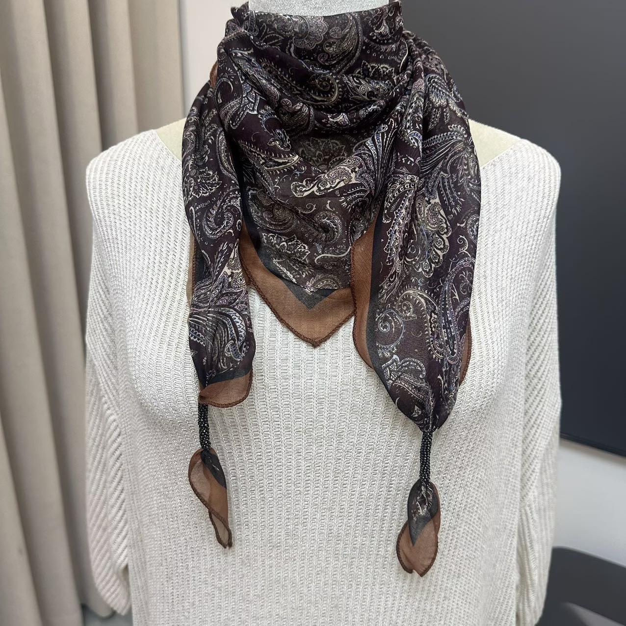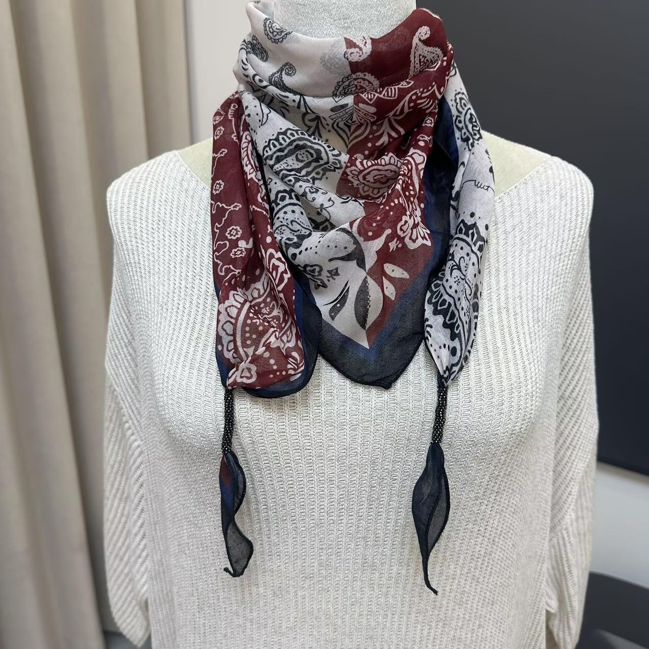 Bufanda Bandana de Verano con Estampado Literario Retro Cadena de Cobre para Mujer Nueva Bufanda Triangular Grande